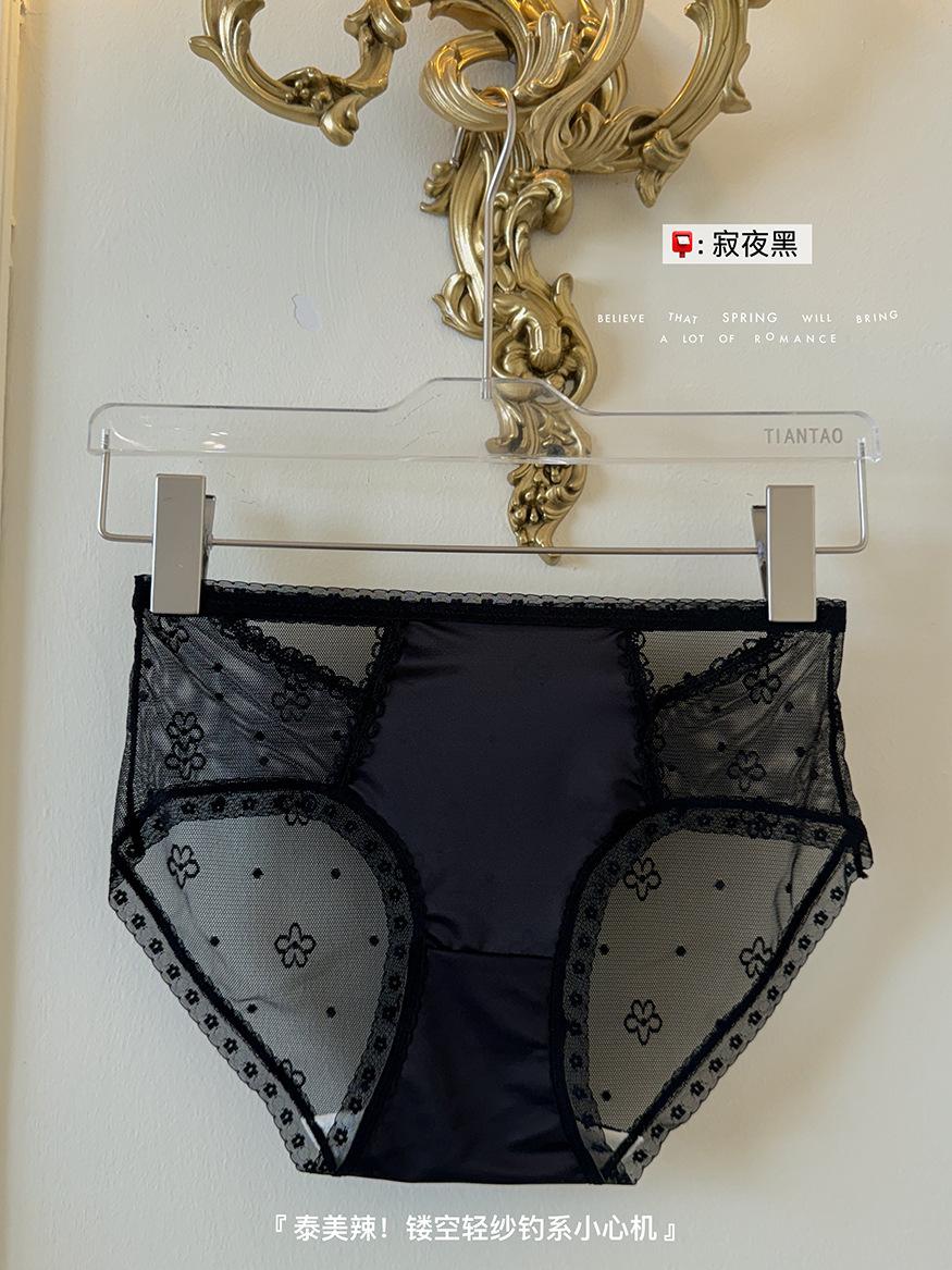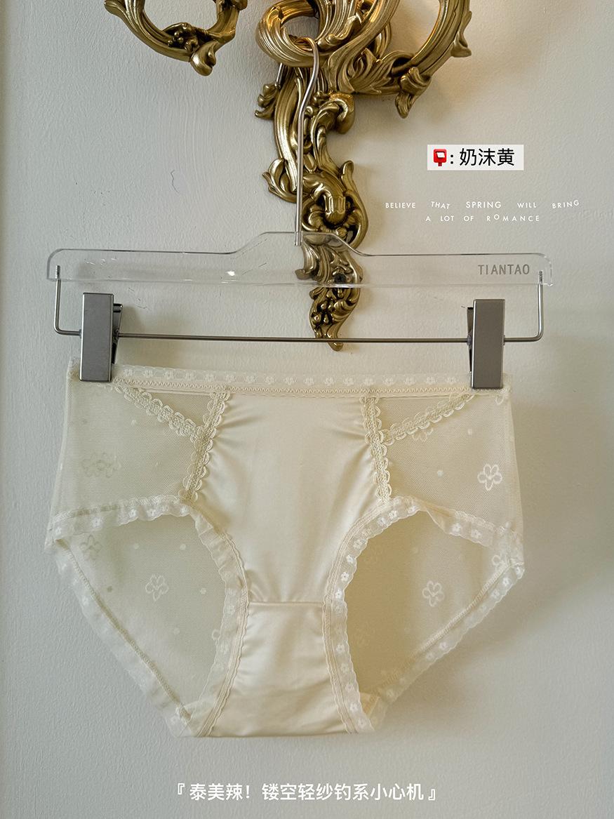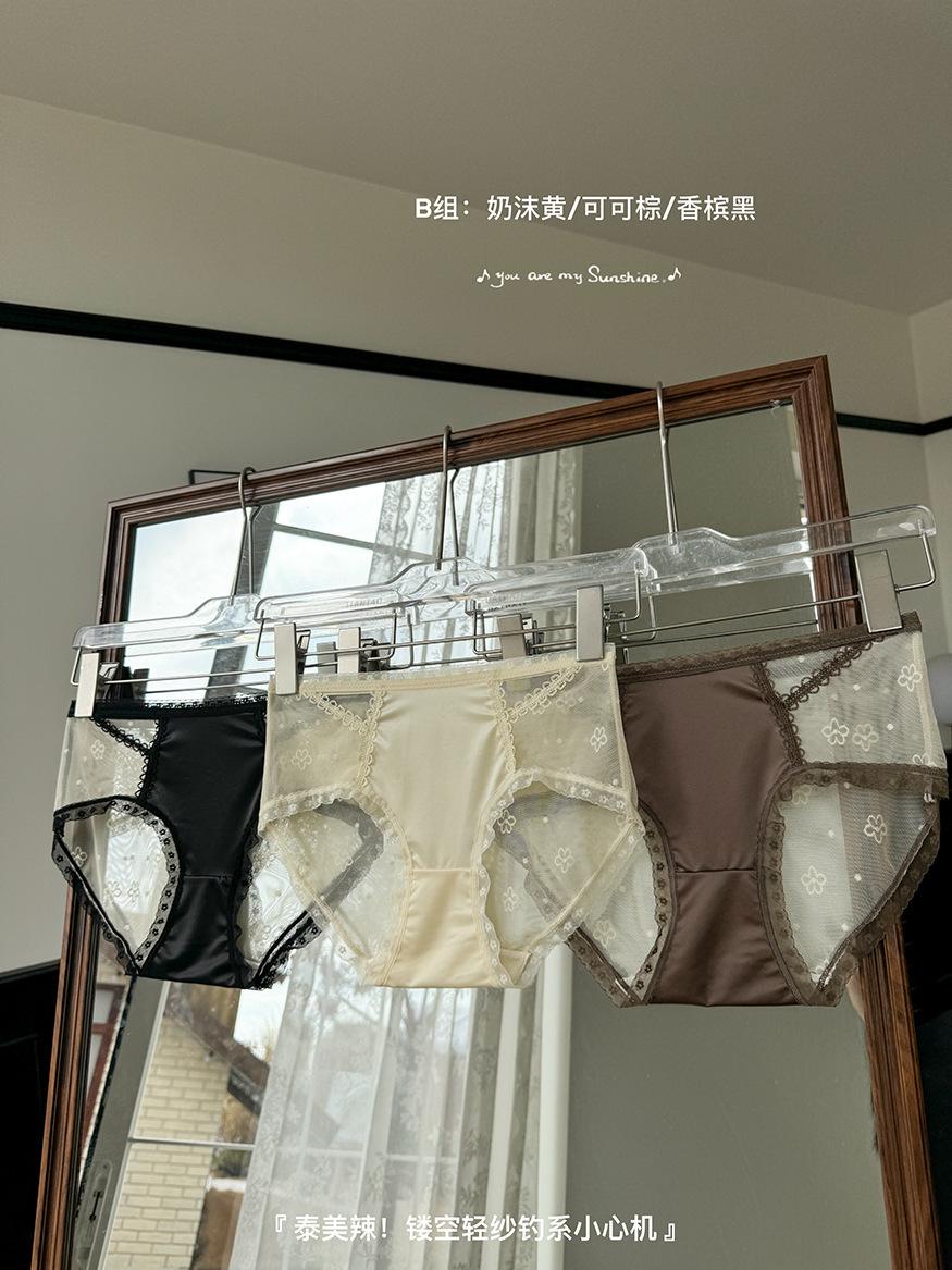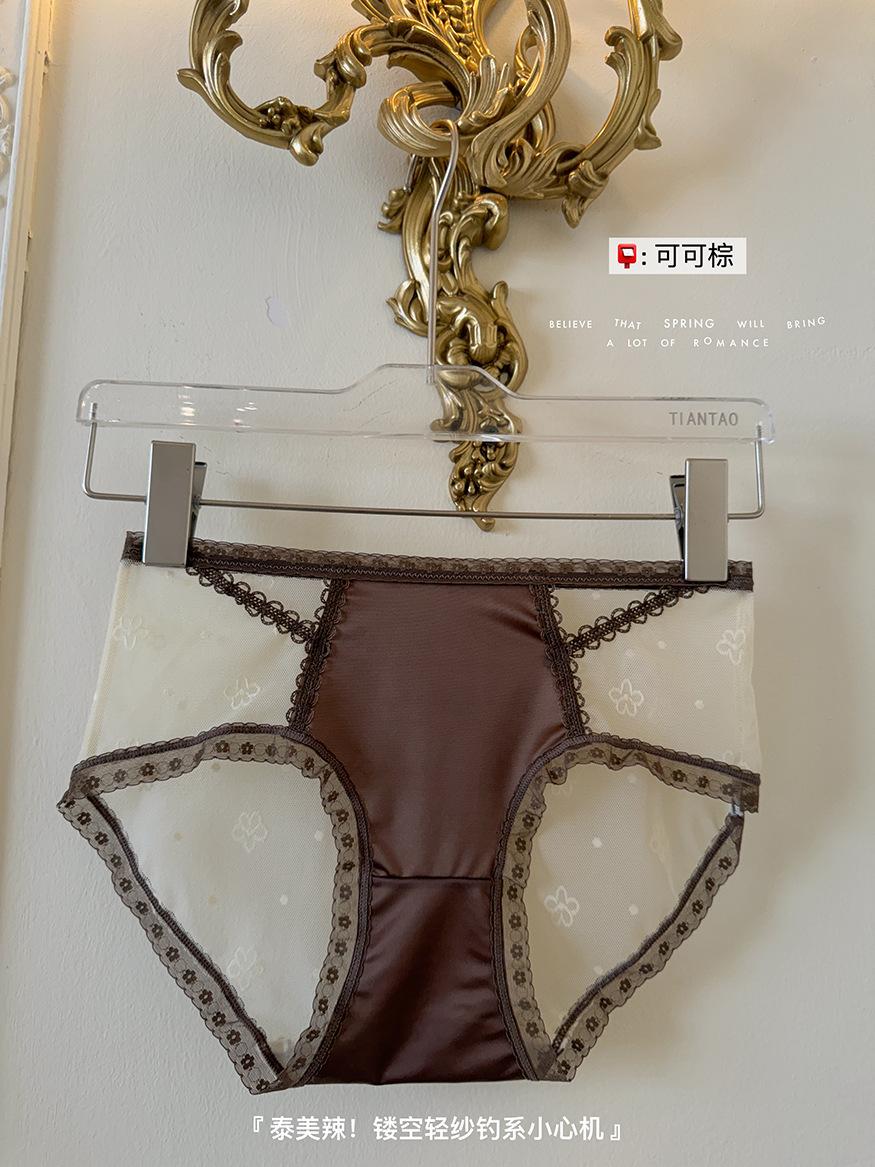 Estilo Deseo Puro Encaje Calado Francés Malla Transpirable Calzones de Niña Sin Archivo de Tarjetas Ropa Interior Sexy de Seda de Hielo para Primavera y Verano para Mujer
