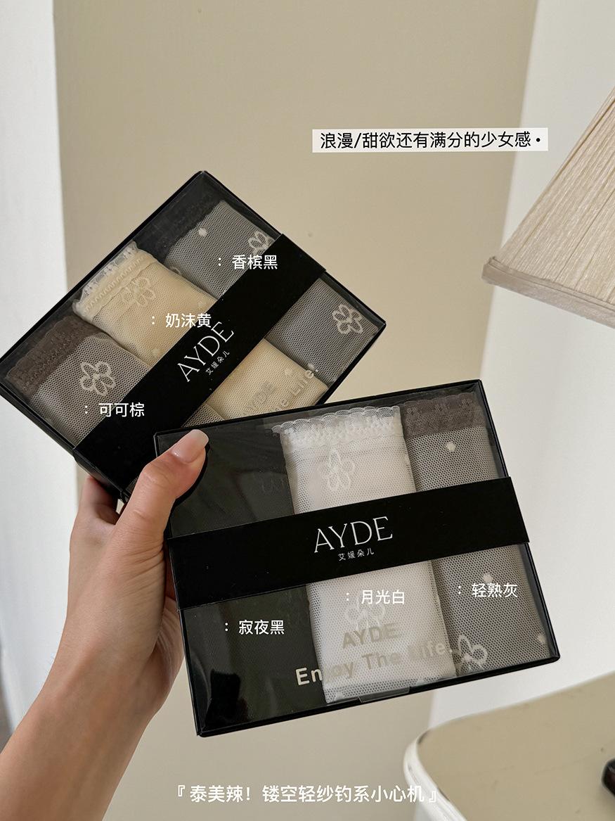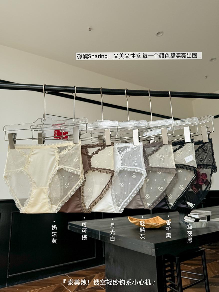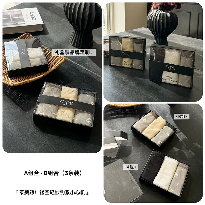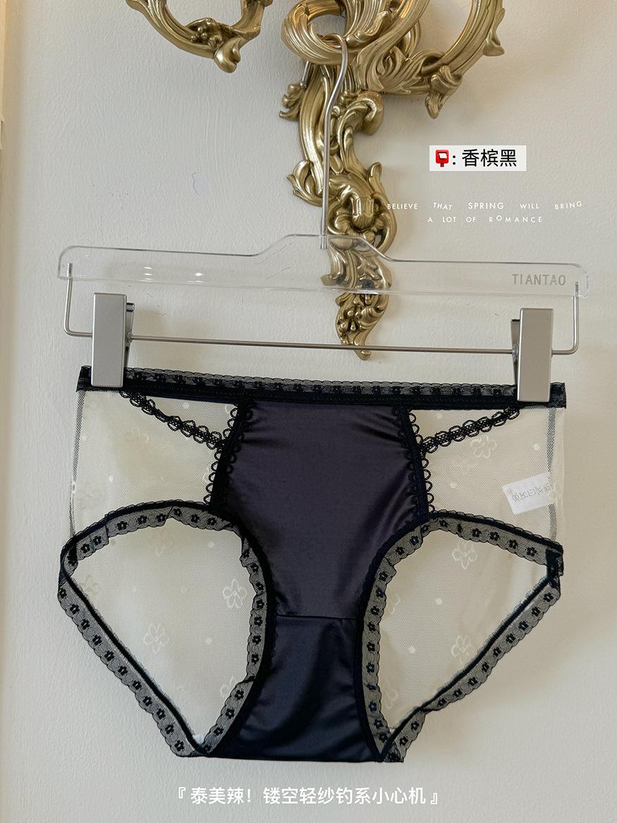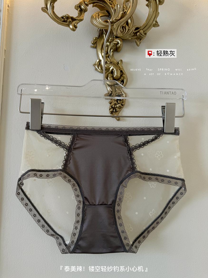 Estilo Deseo Puro Encaje Calado Francés Malla Transpirable Calzones de Niña Sin Archivo de Tarjetas Ropa Interior Sexy de Seda de Hielo para Primavera y Verano para Mujer
