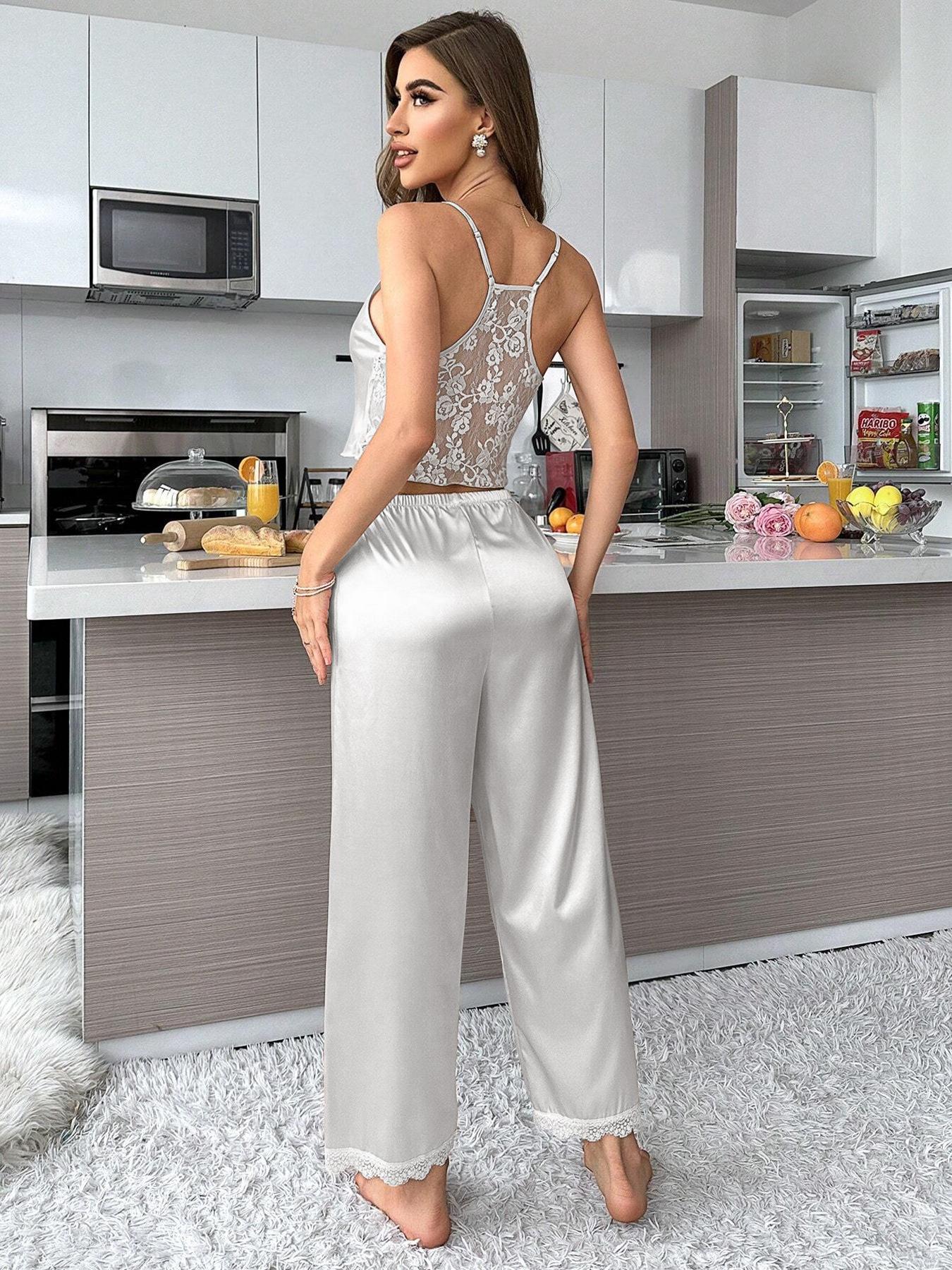 Amazon Europa y Estados Unidos transfronterizo verano nuevo pijama casual para mujer tirantes pantalones encaje sexy ropa para el hogar se puede usar afuera