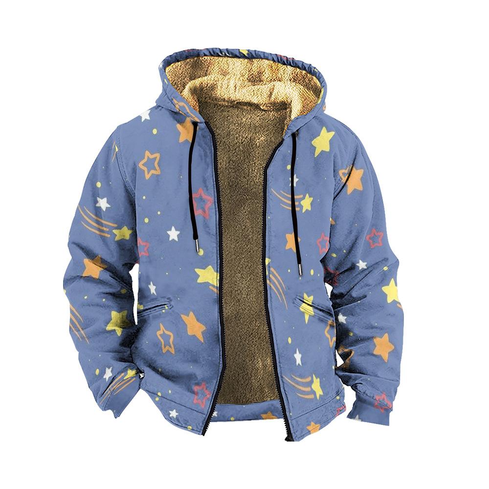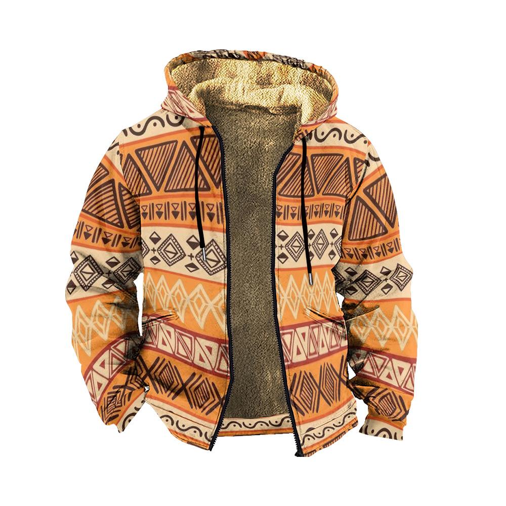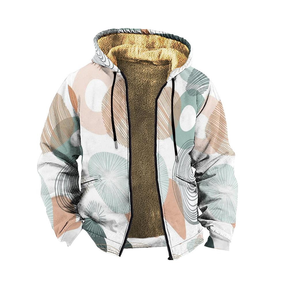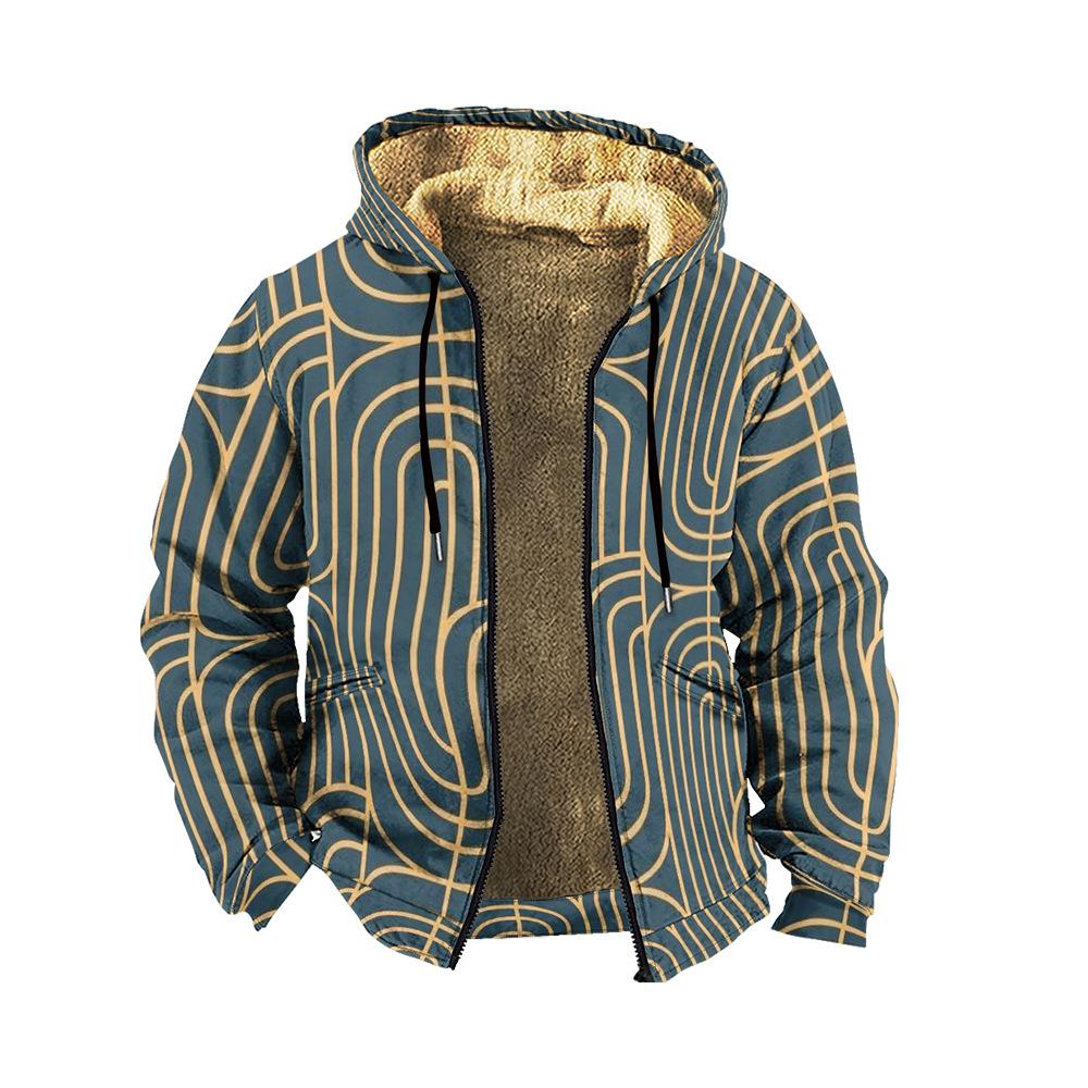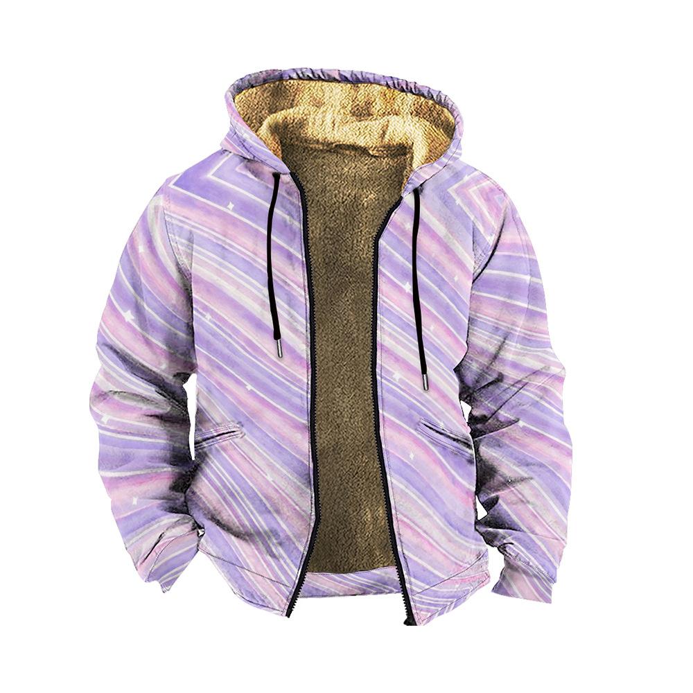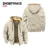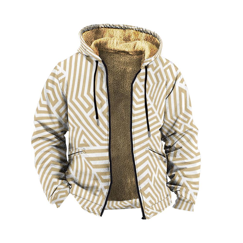 Suéter con capucha y cremallera de invierno 2024, chaqueta acolchada de algodón, suéter cálido de lana ártica marrón a rayas con estampado 3D, chaqueta acolchada de algodón