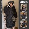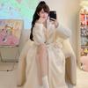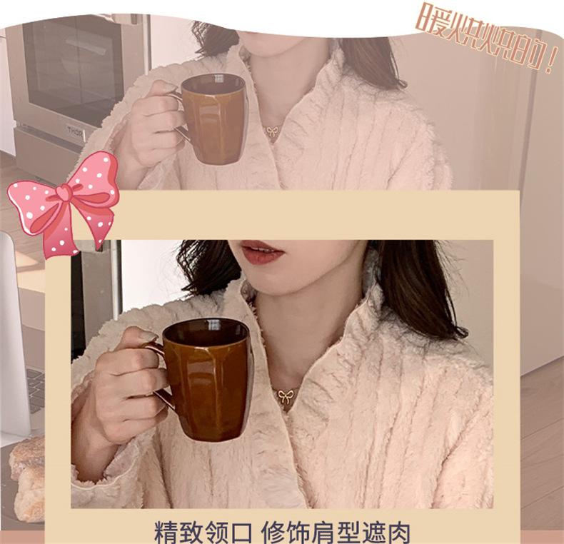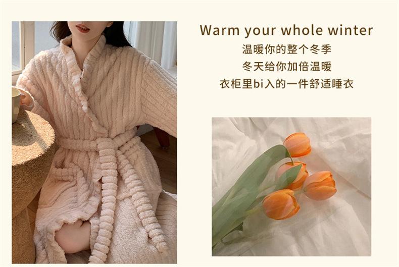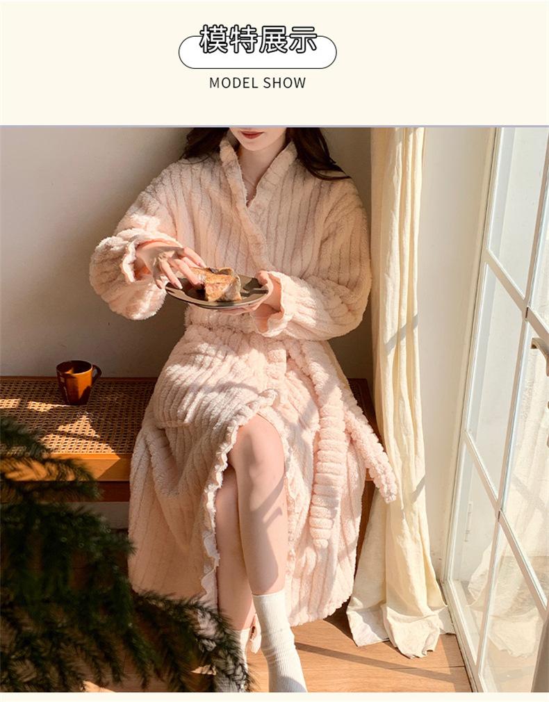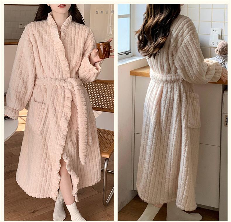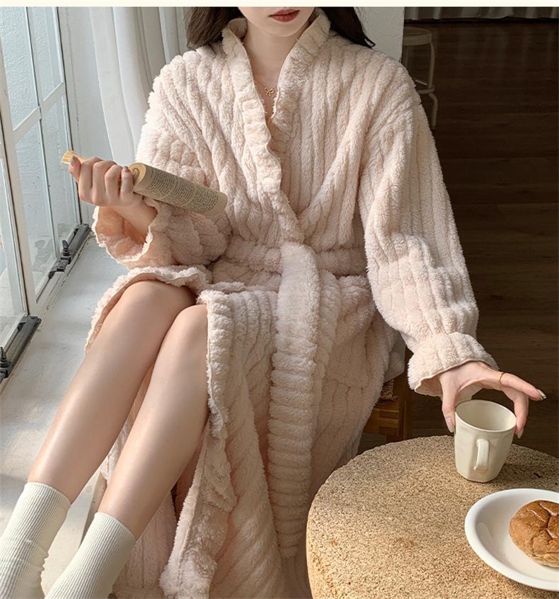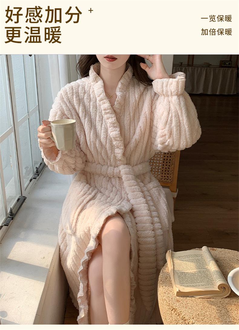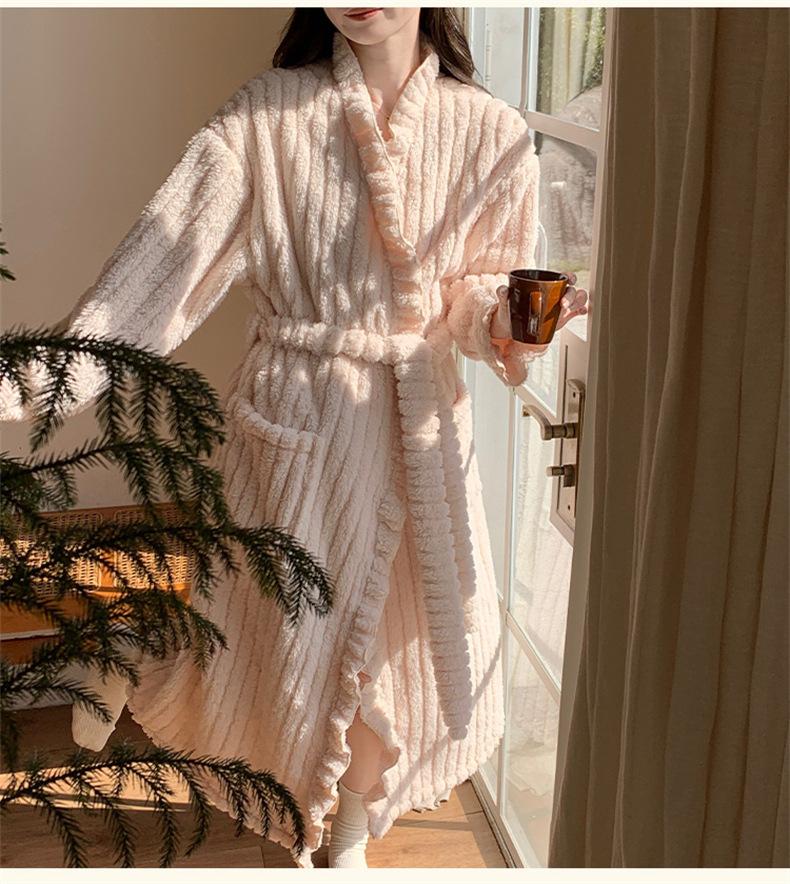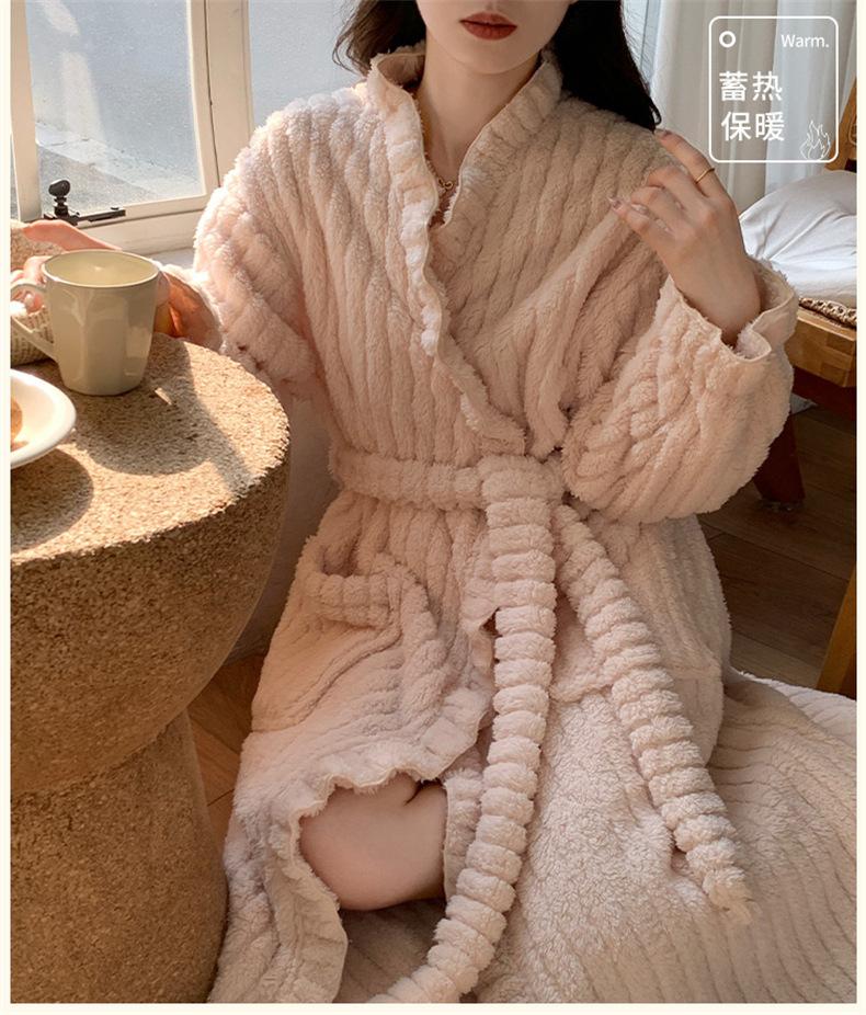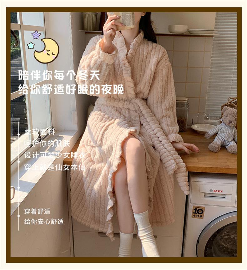 Pijamas Cálidos para Mujer Otoño e Invierno Forro Polar de Coral Engrosado Cálido Largo Sexy Estilo Rojo de Internet Camisón Bata Cinta