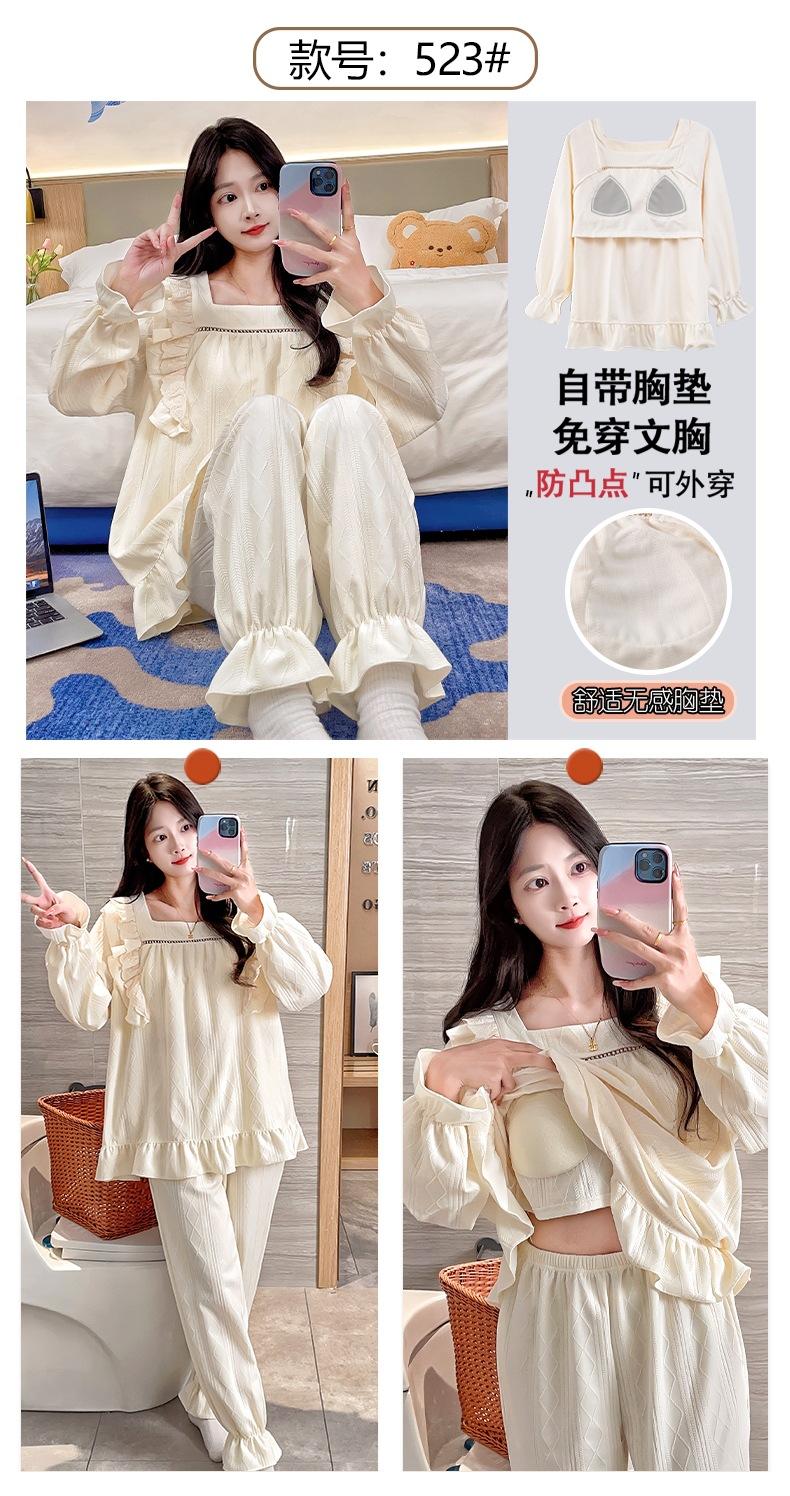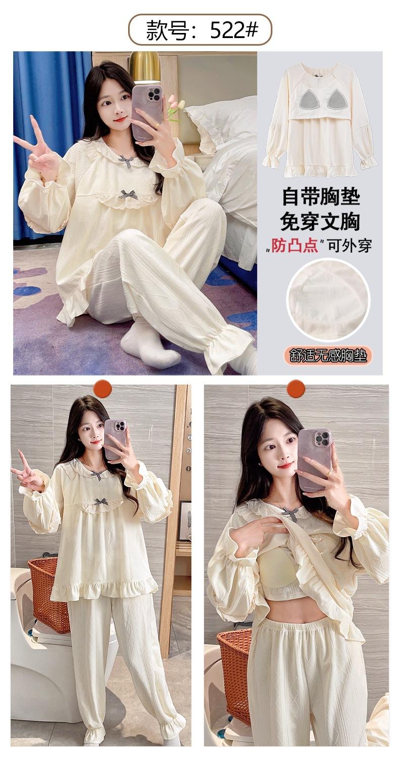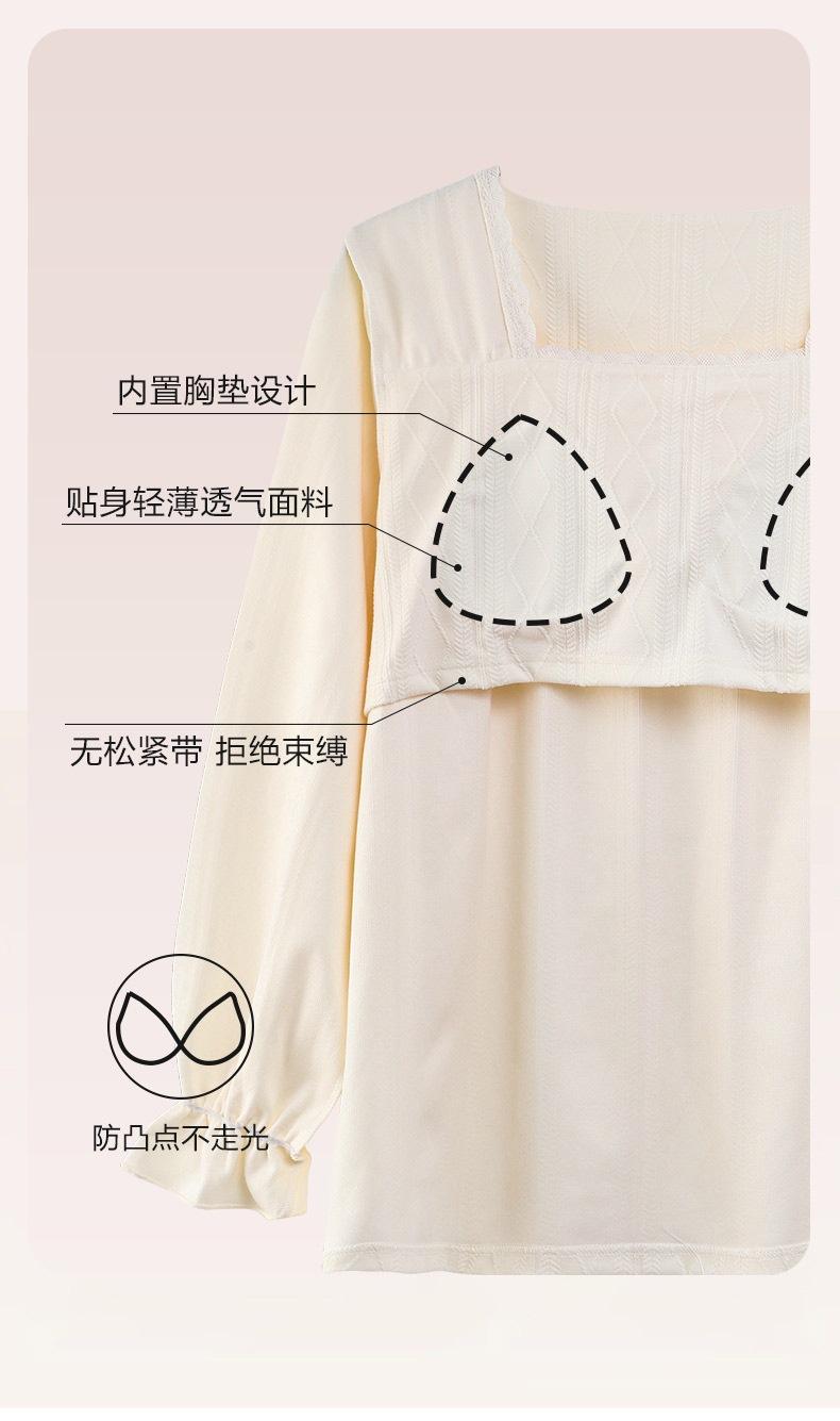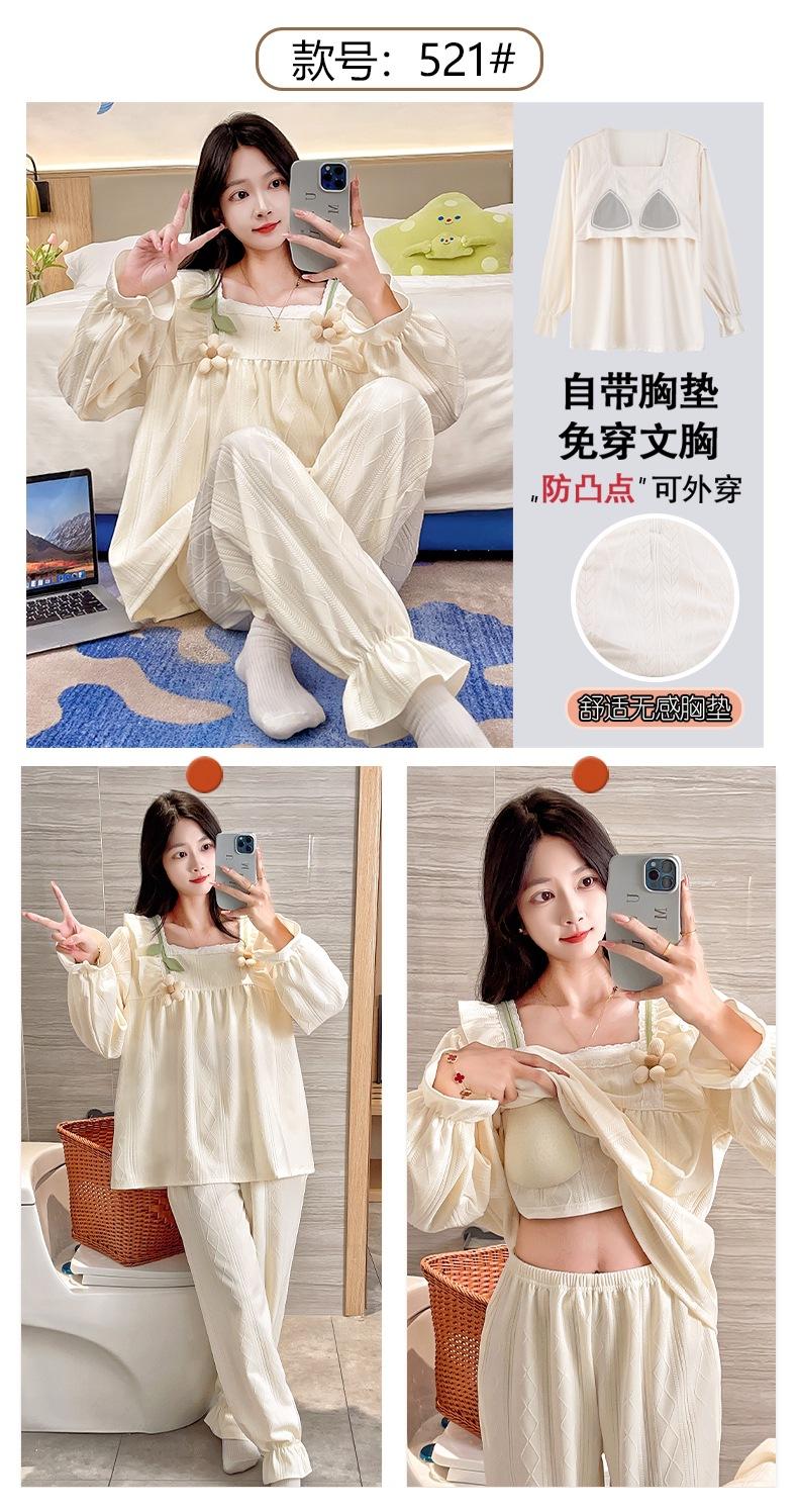 En stock Primavera y Otoño Nuevo Algodón de Imitación Jacquard Dulce con Almohadilla para el Pecho Pijama Estilo Princesa de Manga Larga para Mujer Ropa de Hogar