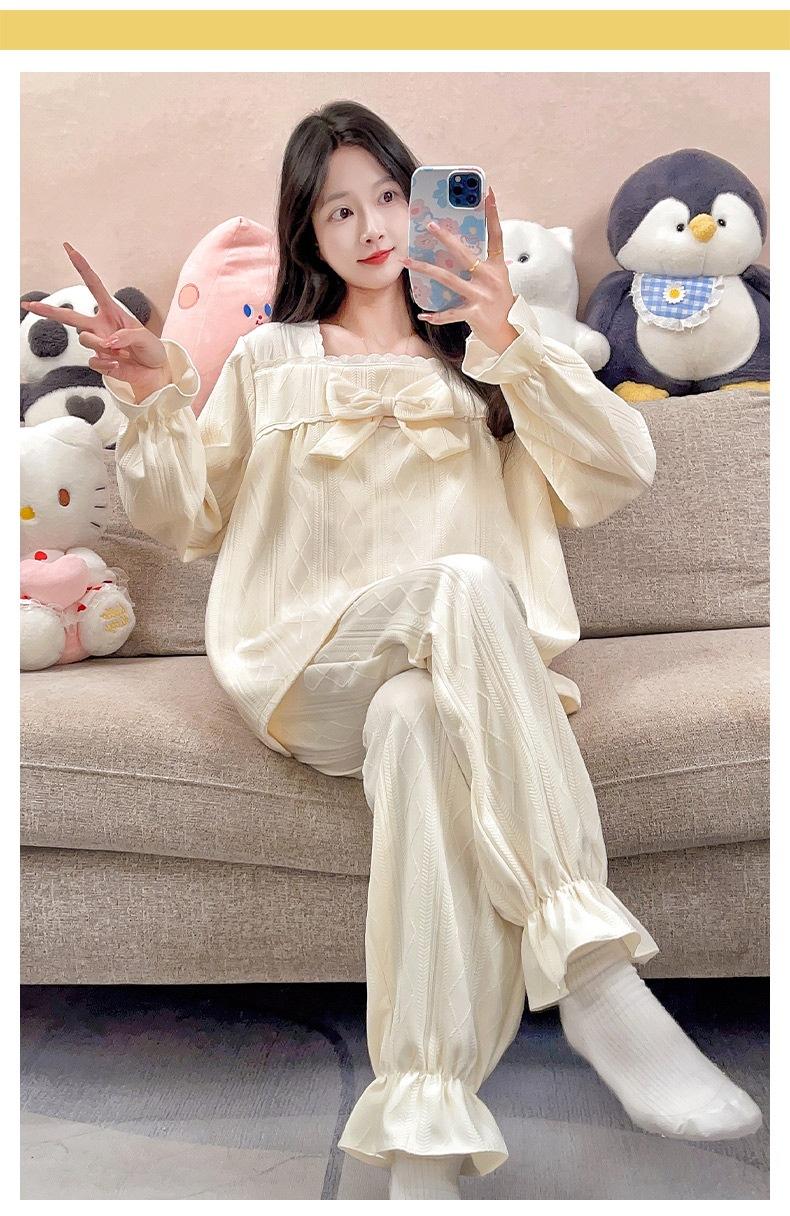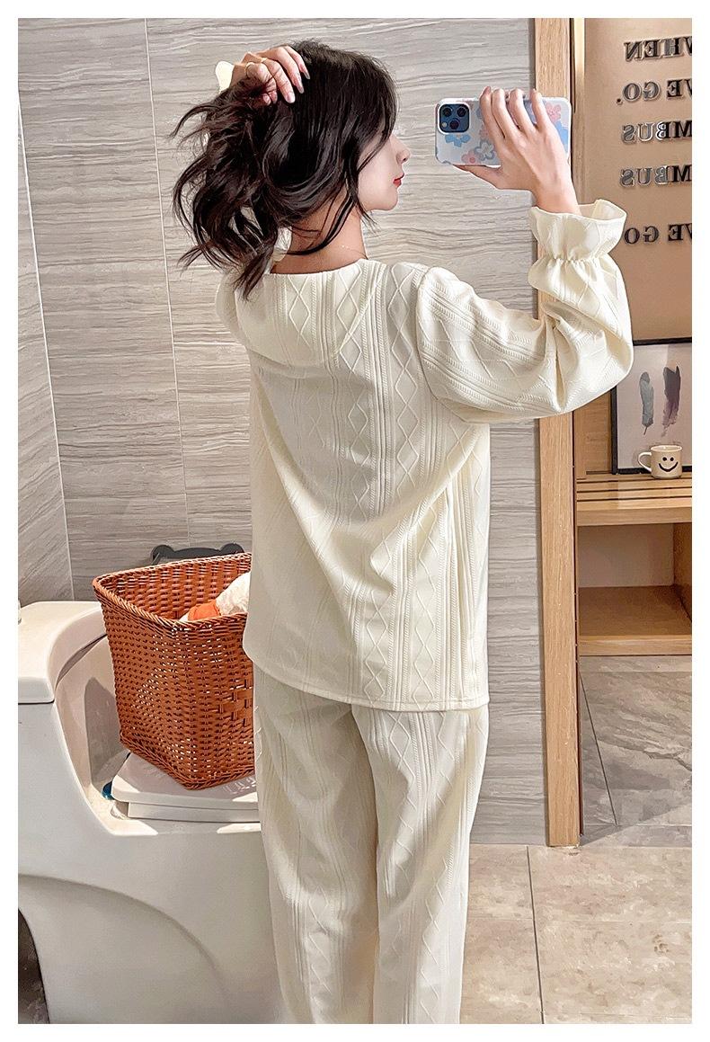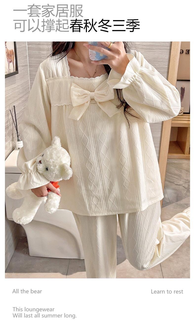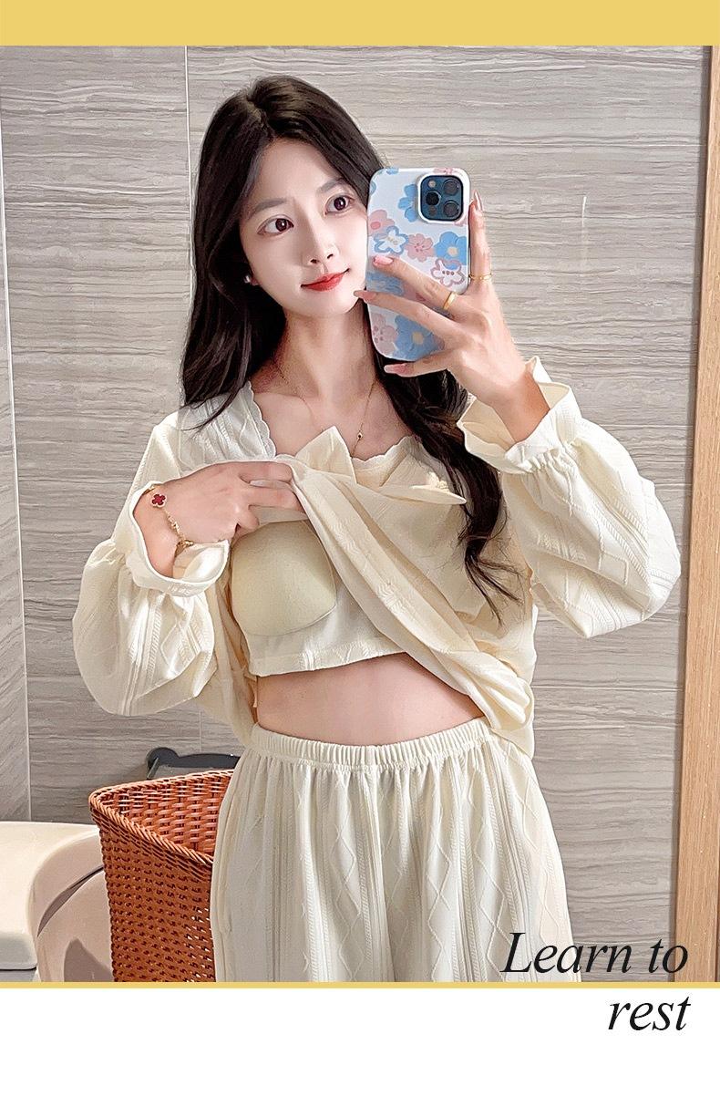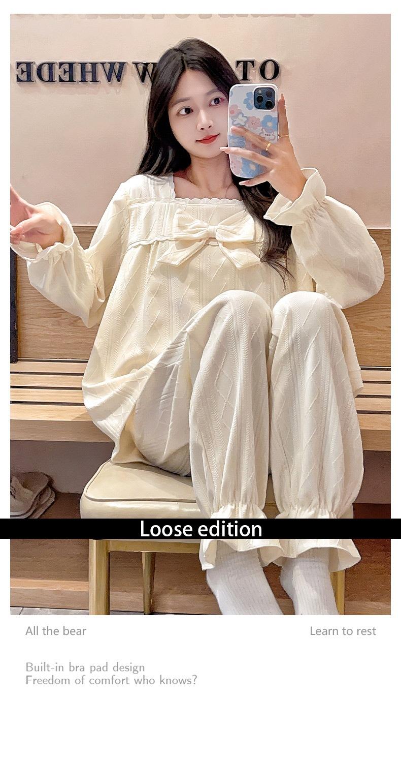 En stock Primavera y Otoño Nuevo Algodón de Imitación Jacquard Dulce con Almohadilla para el Pecho Pijama Estilo Princesa de Manga Larga para Mujer Ropa de Hogar
