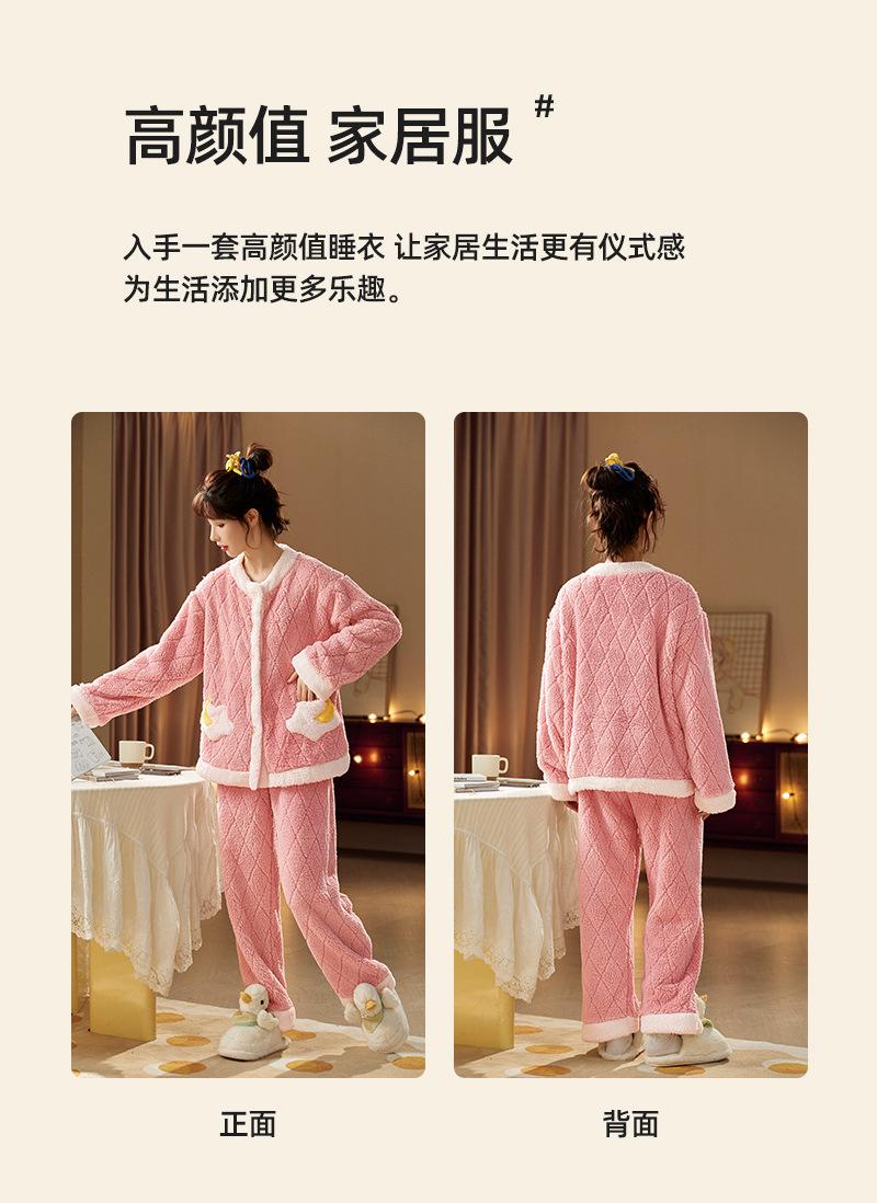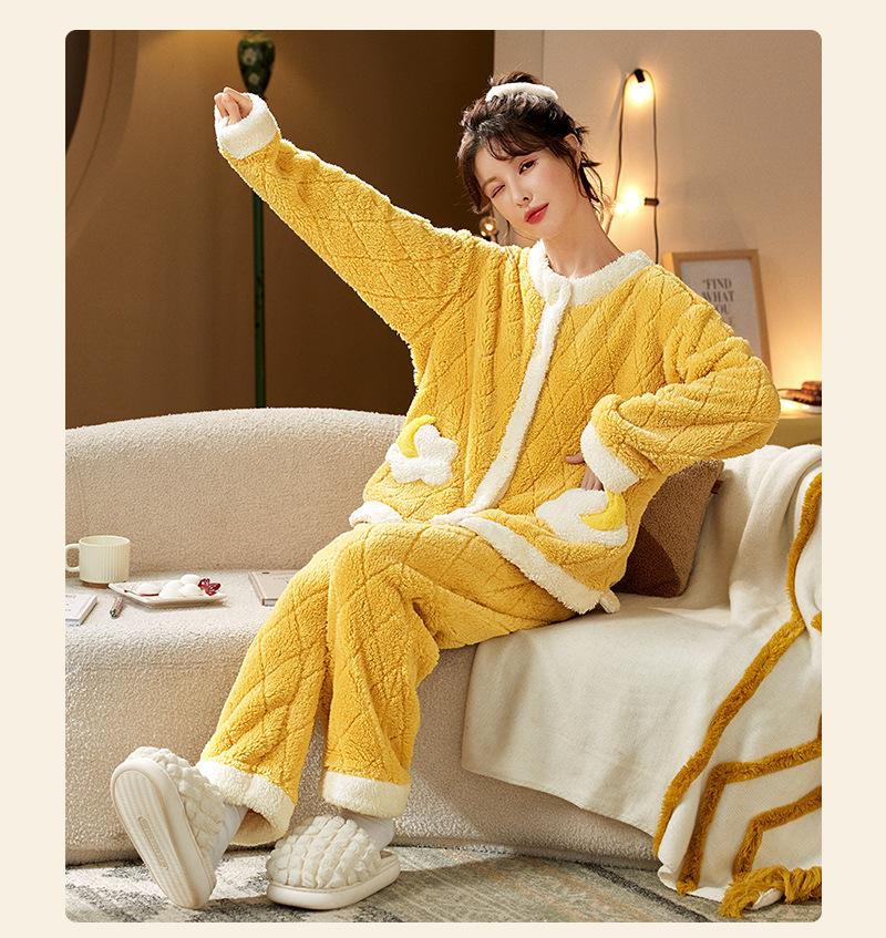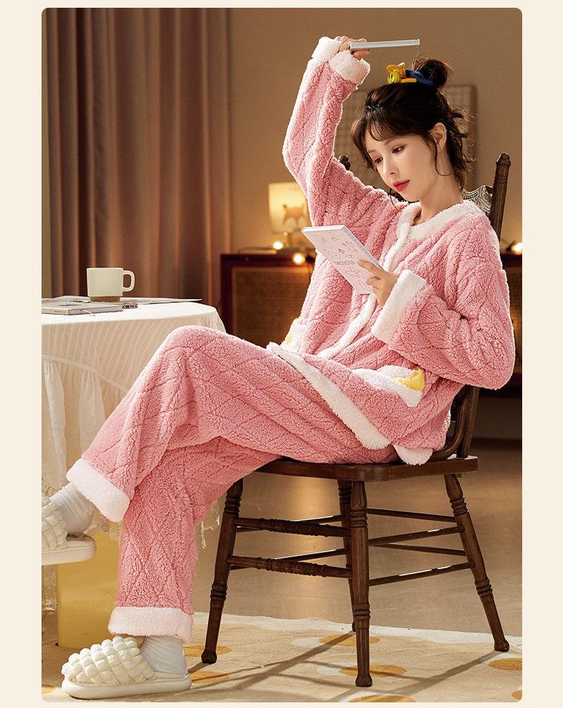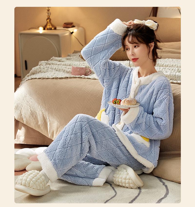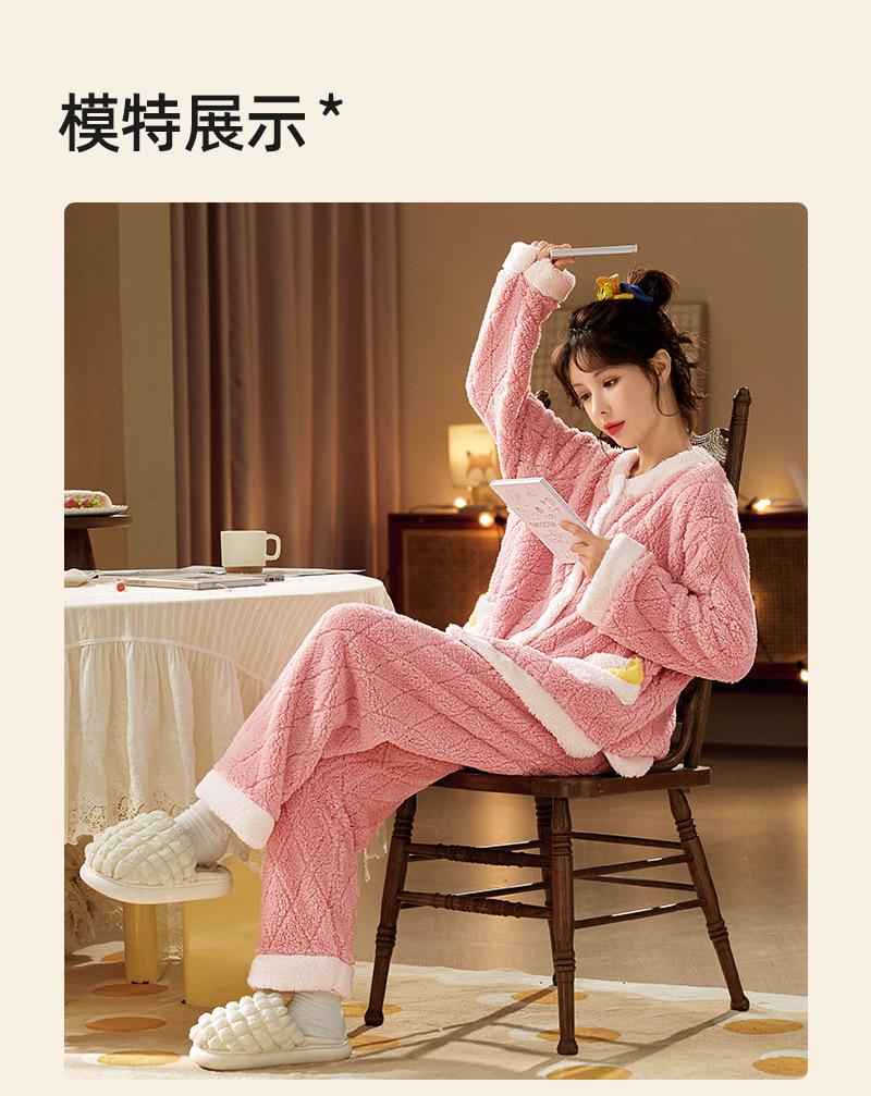 Pijamas de lana de coral nuevos de Yu Zhaolin para mujer, ropa de invierno con forro polar de franela gruesa, ropa para el hogar, ropa exterior
