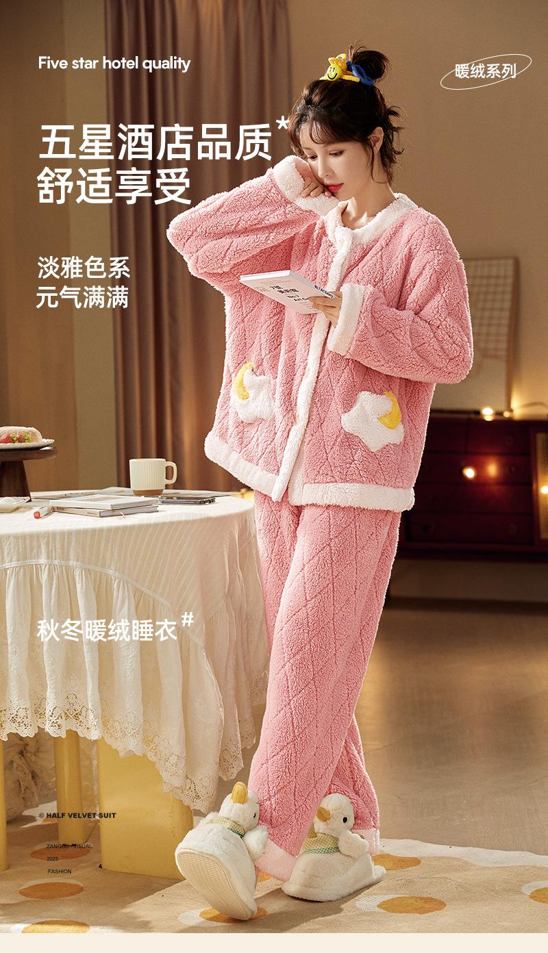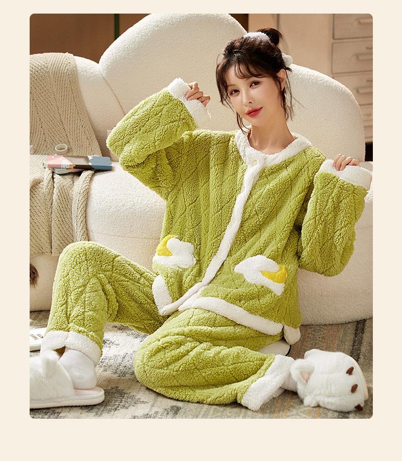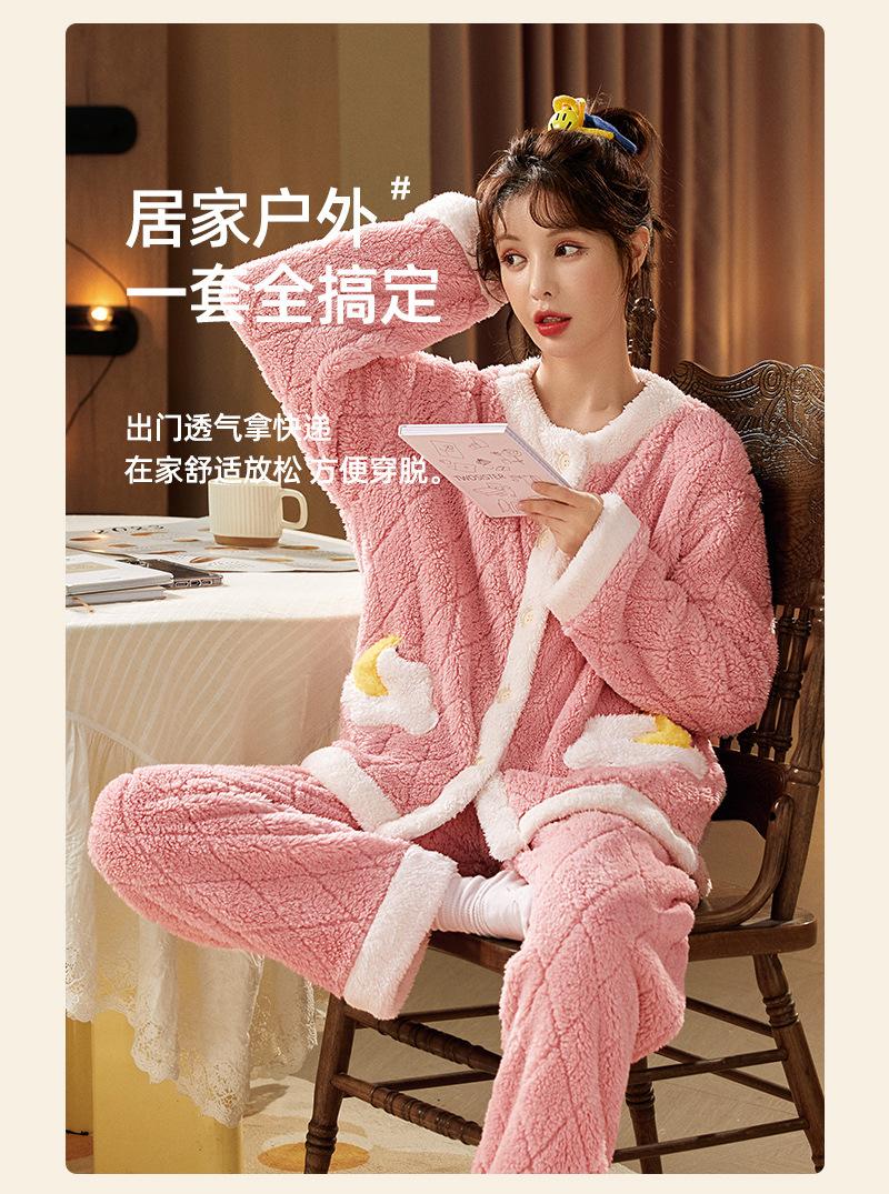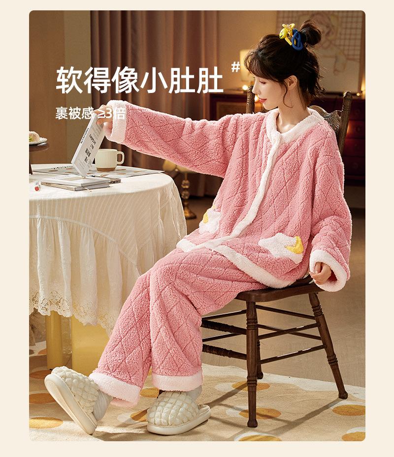 Pijamas de lana de coral nuevos de Yu Zhaolin para mujer, ropa de invierno con forro polar de franela gruesa, ropa para el hogar, ropa exterior