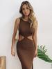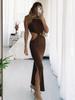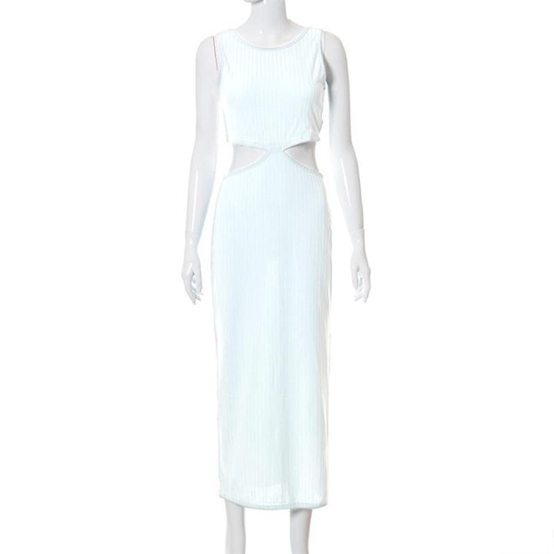 Vestido de verano de comercio exterior europeo y americano 2024 nuevo para mujer, de color sólido, sin mangas, elegante, de cintura alta, con abertura lateral
