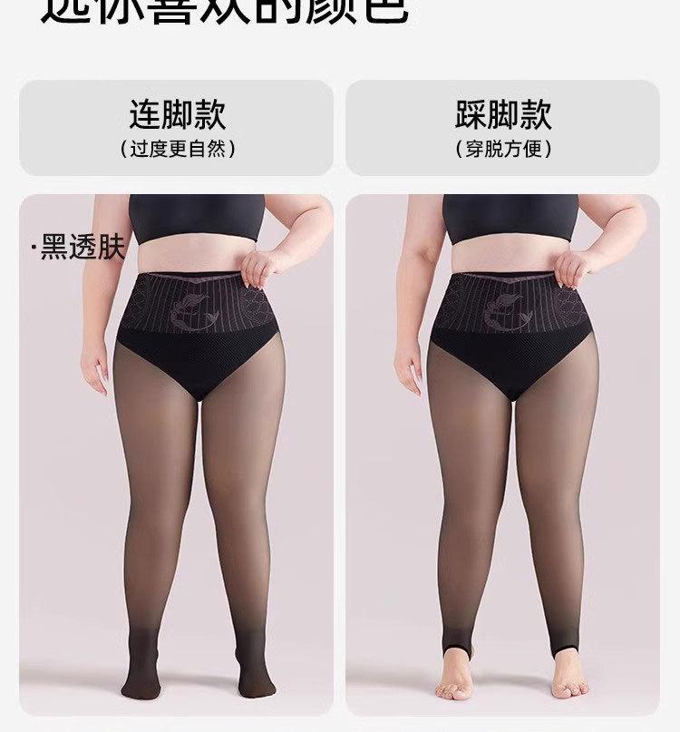 Talla grande medias negras forradas de vellón para mujer otoño e invierno medias de paso de carne falsa mm gorda 200 kg piel negra artefacto de pierna ligera