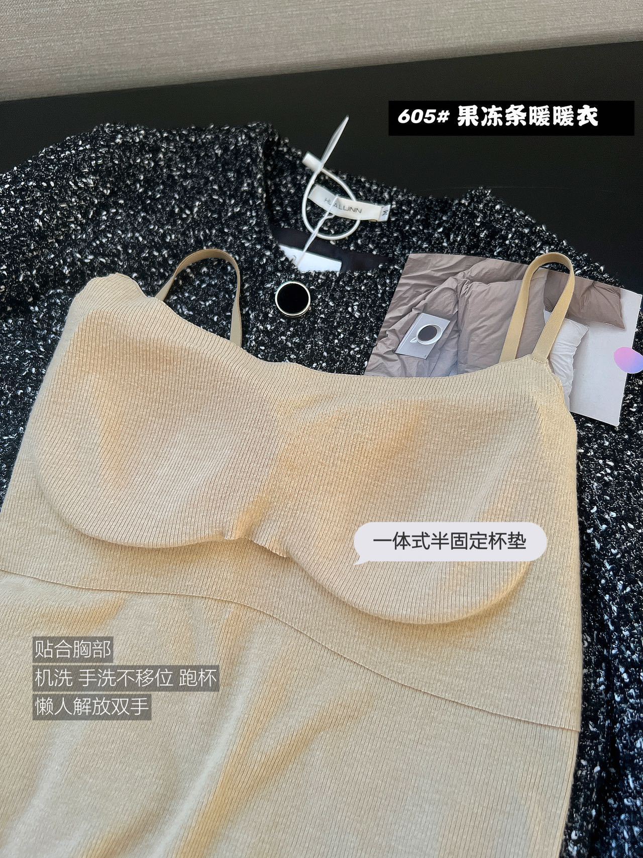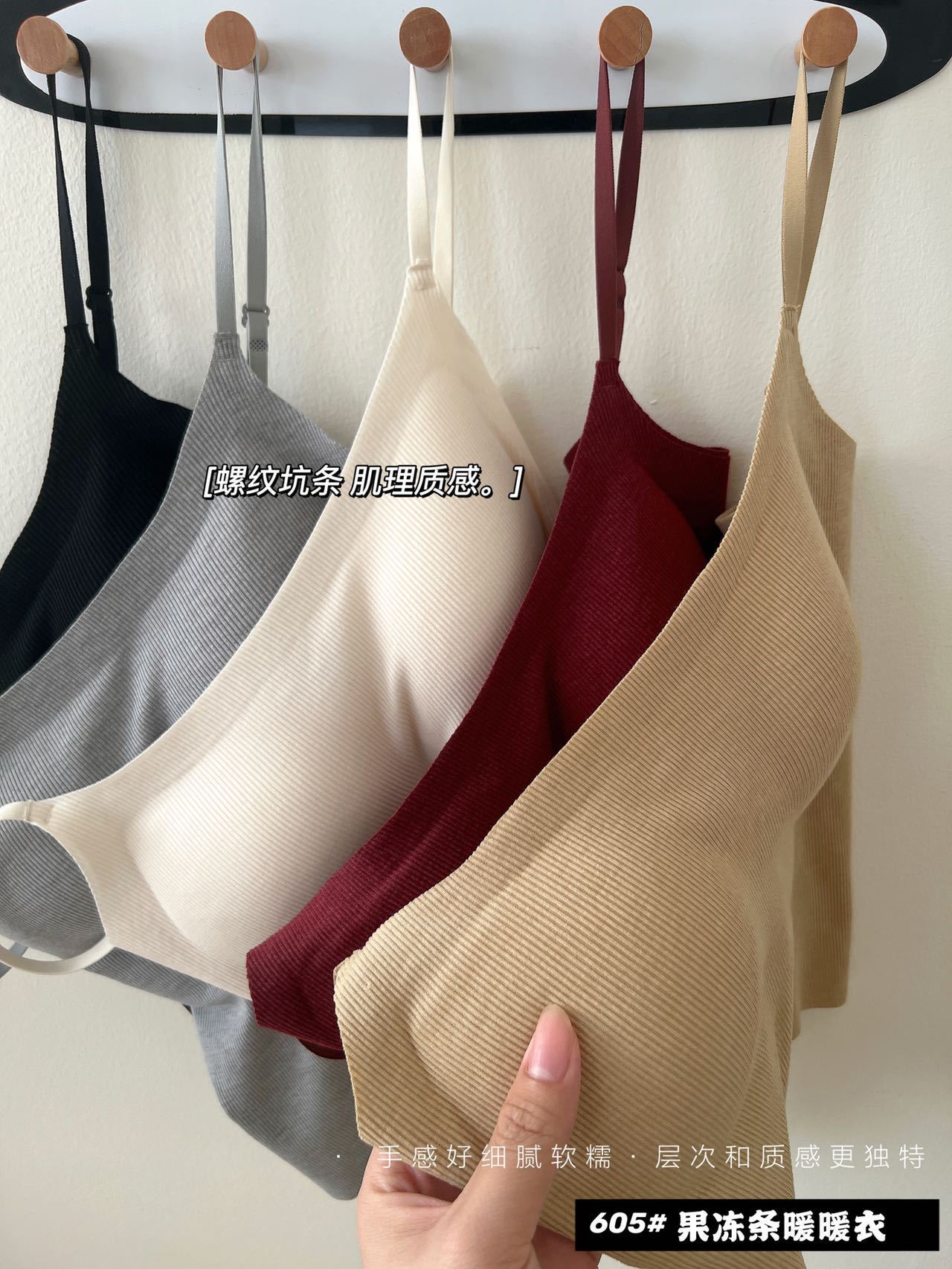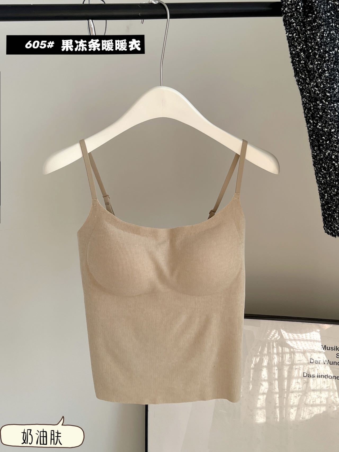 Chaleco de punto con tirantes interiores para otoño e invierno, ropa de abrigo, almohadilla para el pecho extraíble integrada, parte superior