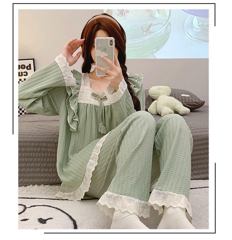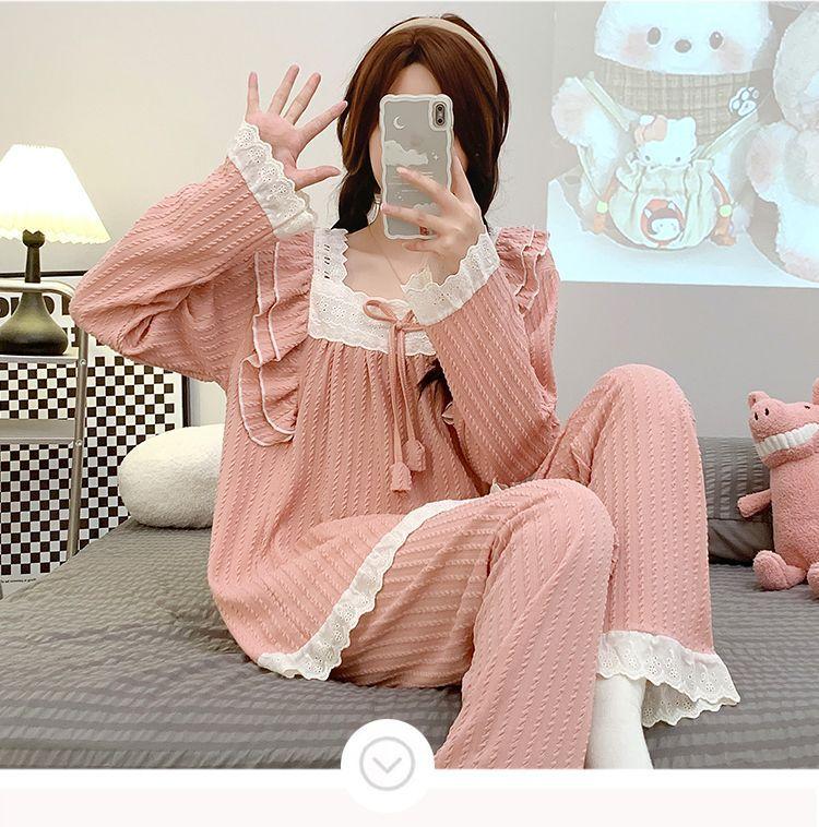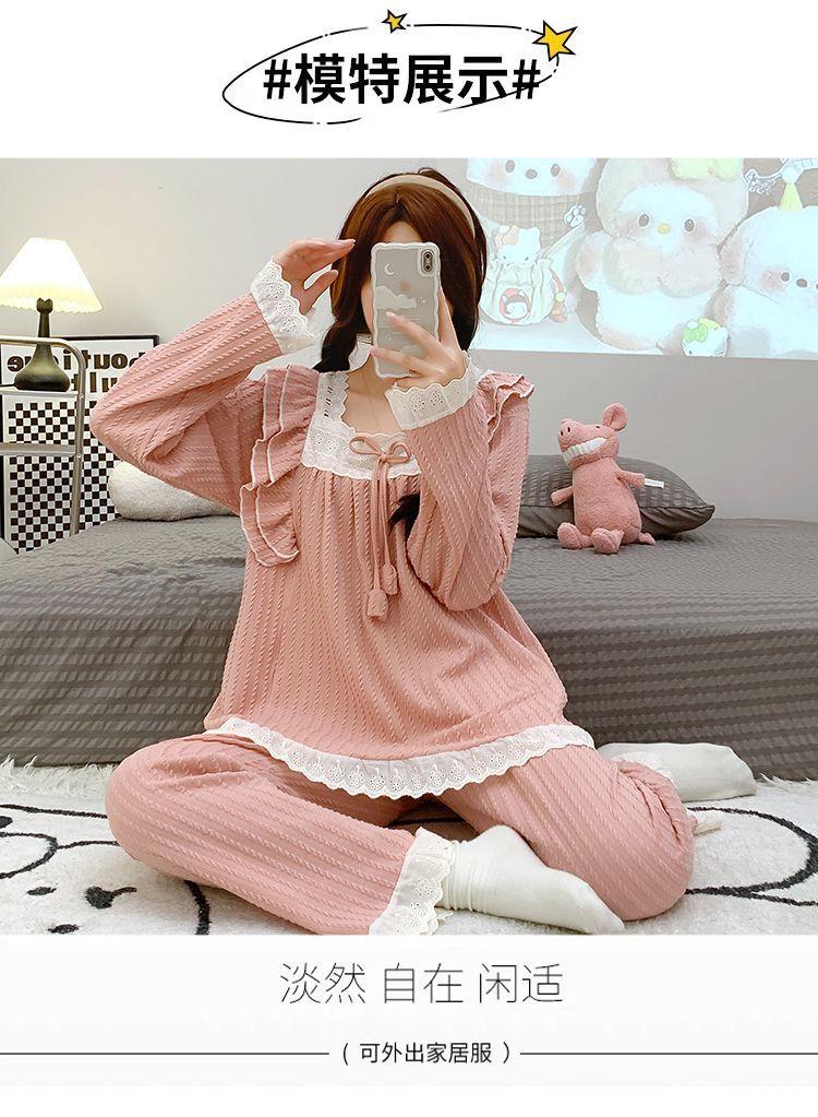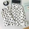 Pijamas de primavera y otoño para mujer, nuevo cárdigan de manga larga estilo Chanel, traje con bonitos dibujos animados, ropa de estudiante para el hogar, ropa exterior