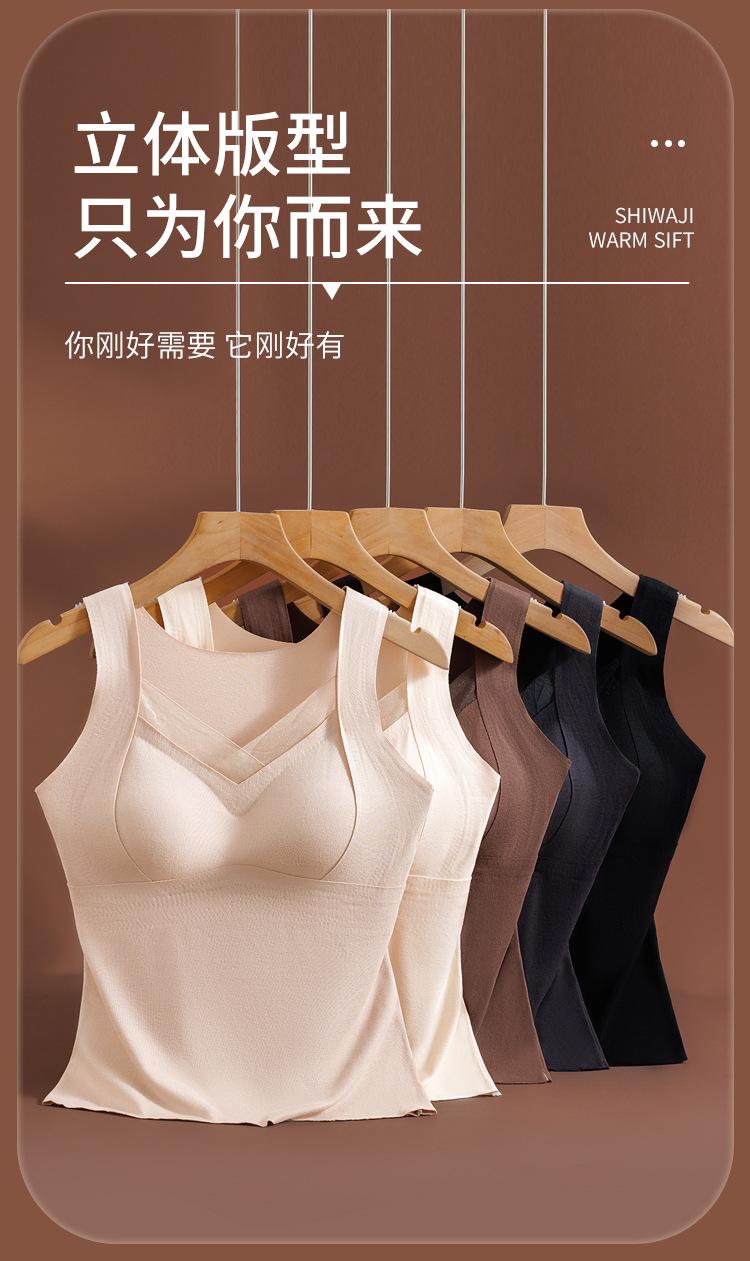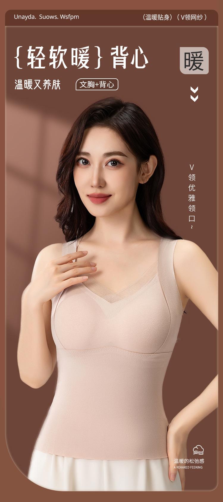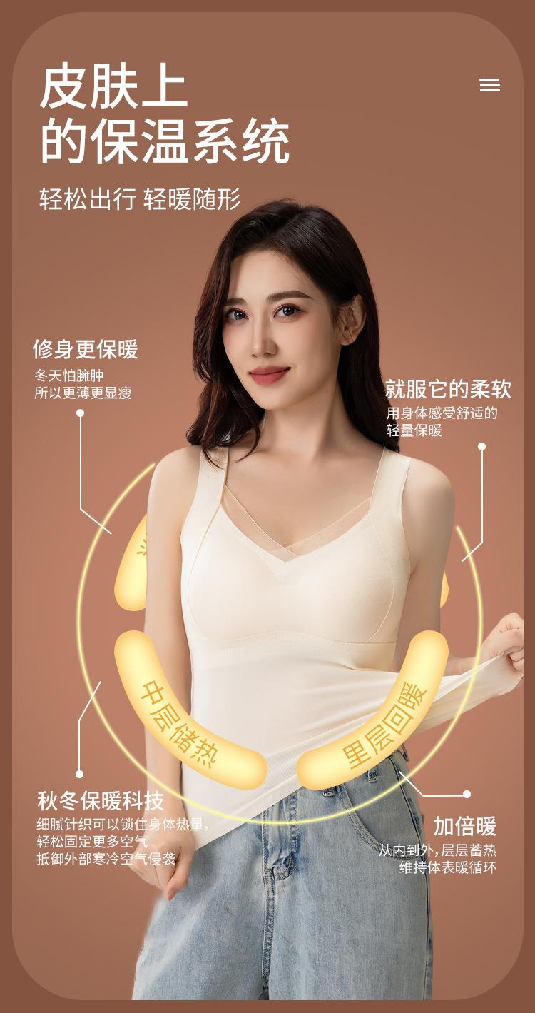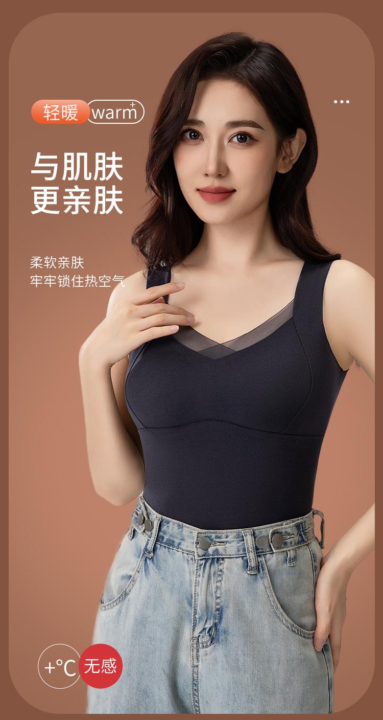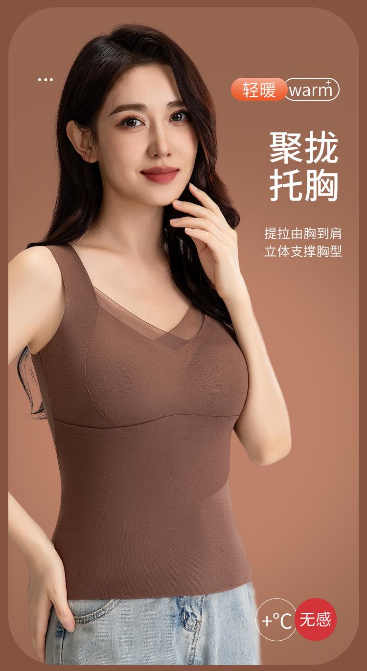 Otoño e invierno lijado de terciopelo des térmico chaleco ropa interior para mujer de una pieza con almohadilla para el pecho sin costuras ajustado ropa exterior base polar