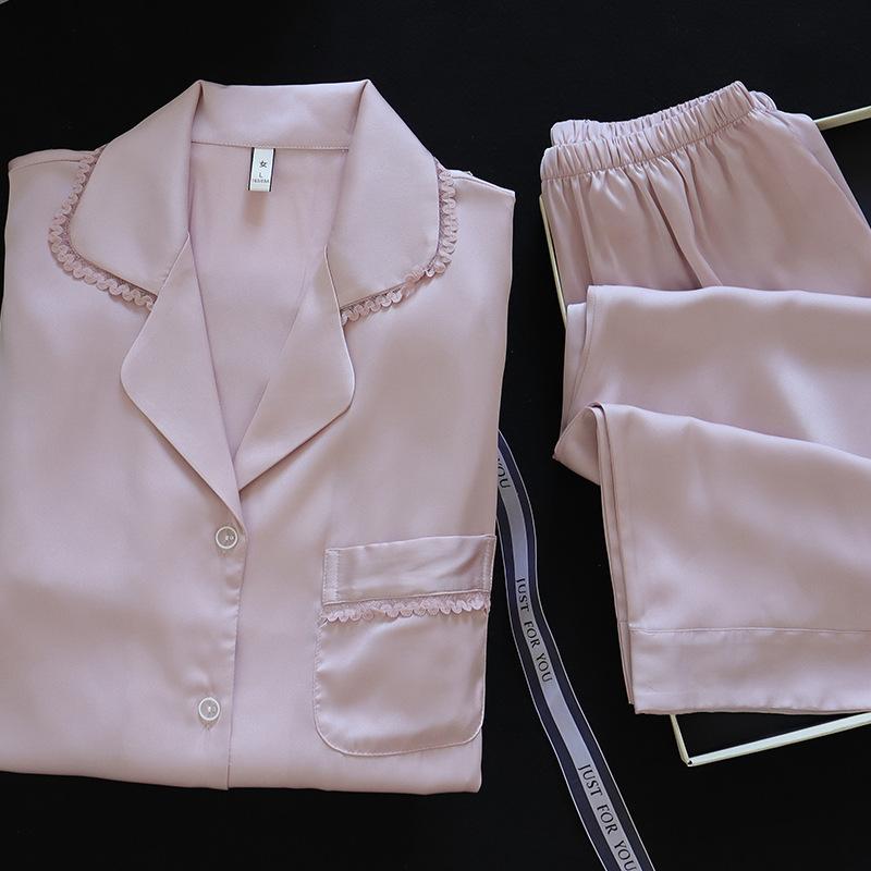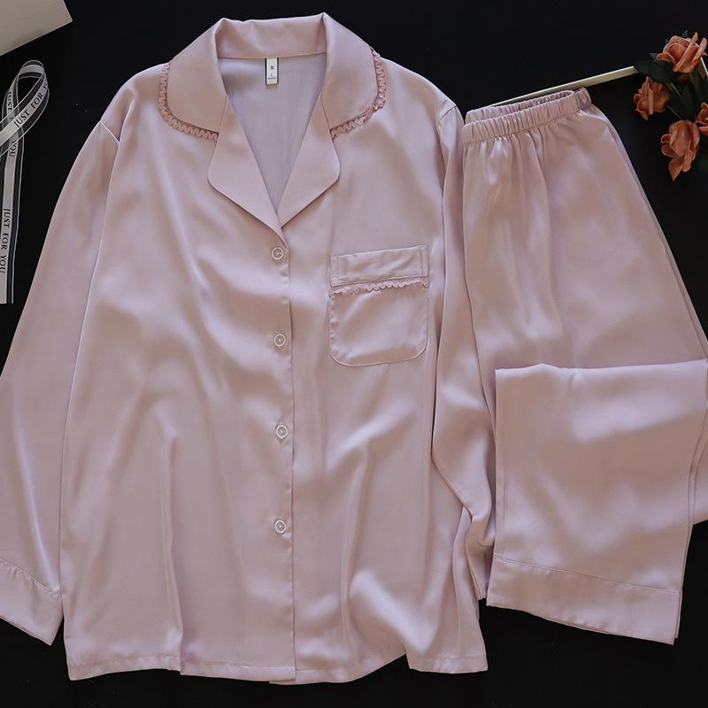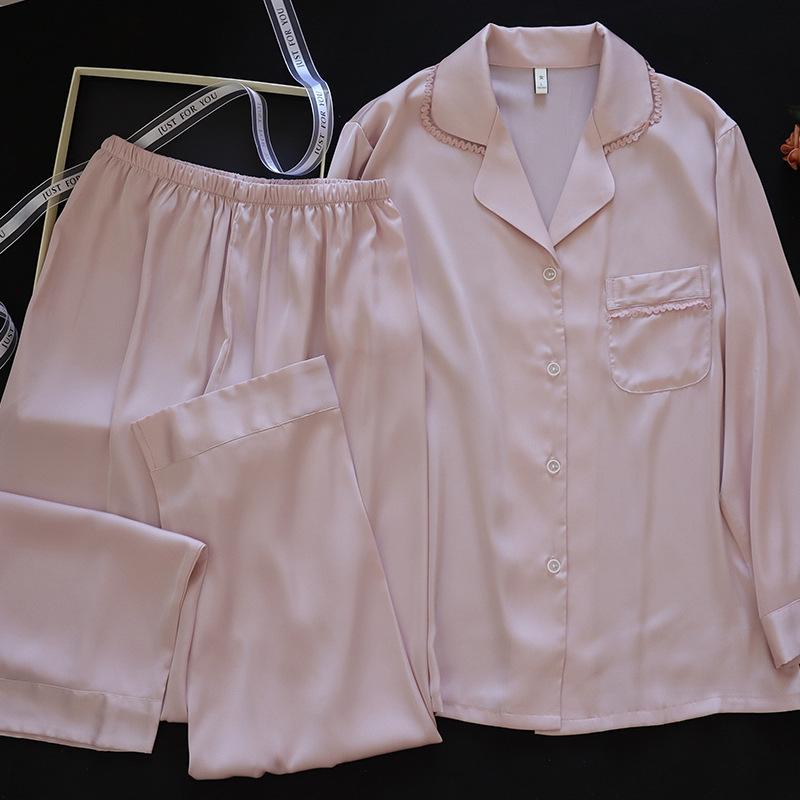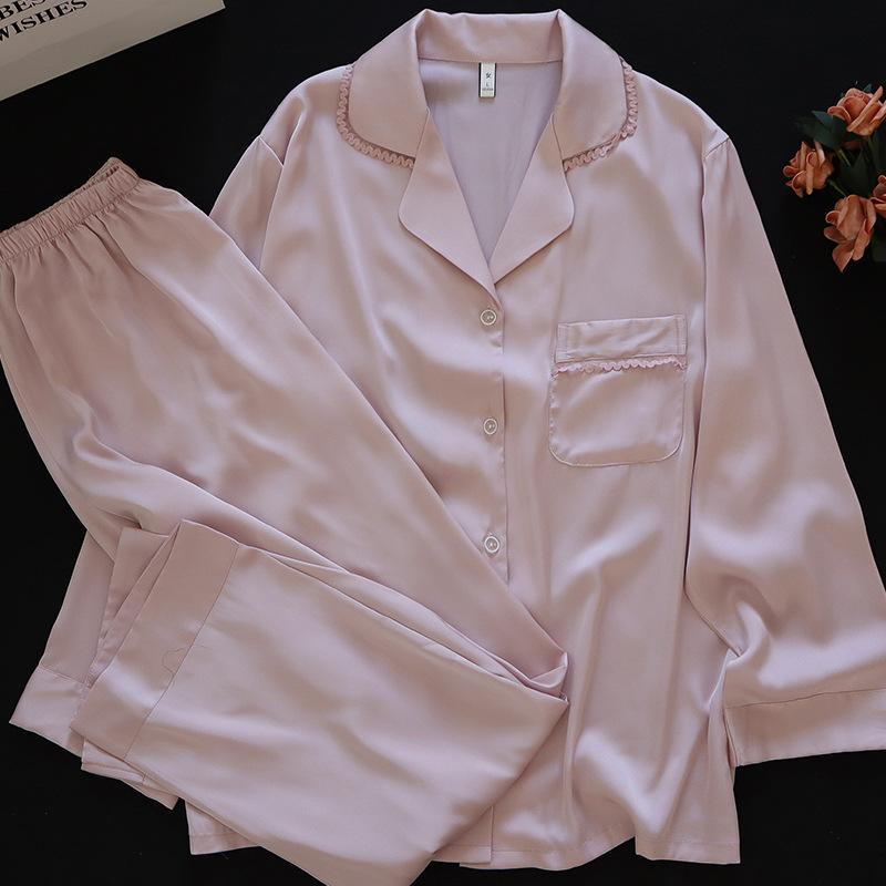 Pijamas de seda de hielo para mujer, primavera y otoño, manga larga, seda fina, talla grande, ropa de abrigo de moda, ropa fresca de verano para el hogar, traje