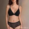 Conjunto de Sutiã de Renda Francesa Europeu e Americano Transfronteiriço com Design Vazado Franzido, Calcinha Triângulo Cavada de Cintura Baixa Feminina, Sexy Vazado