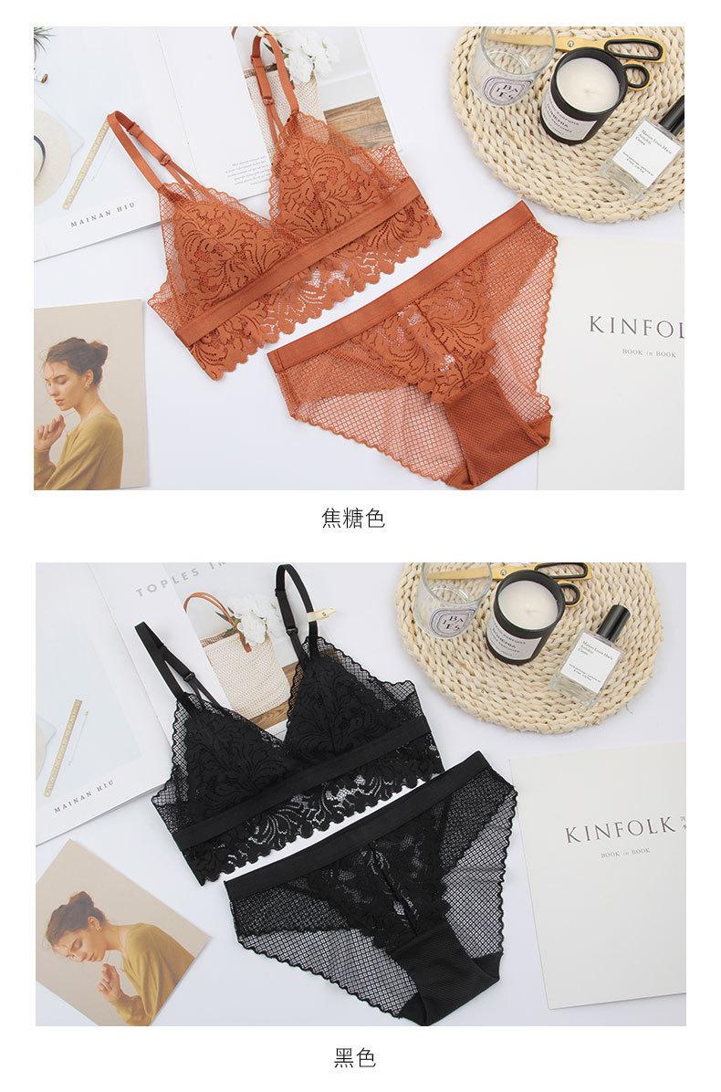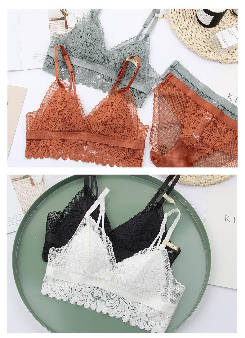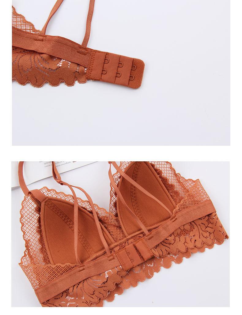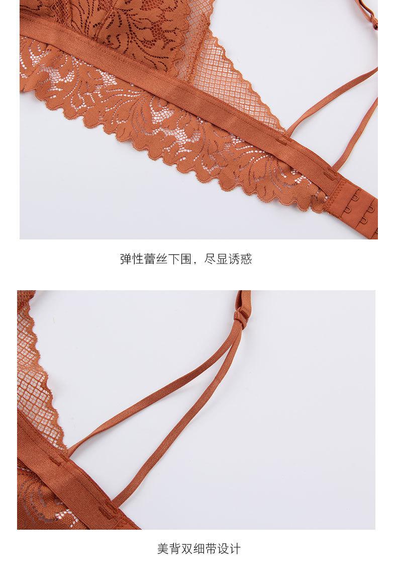 Sujetador francés ultrafino sin aro de acero, copa triangular, ropa interior de encaje transpirable y cómoda, sujetador de espalda de belleza sexual.