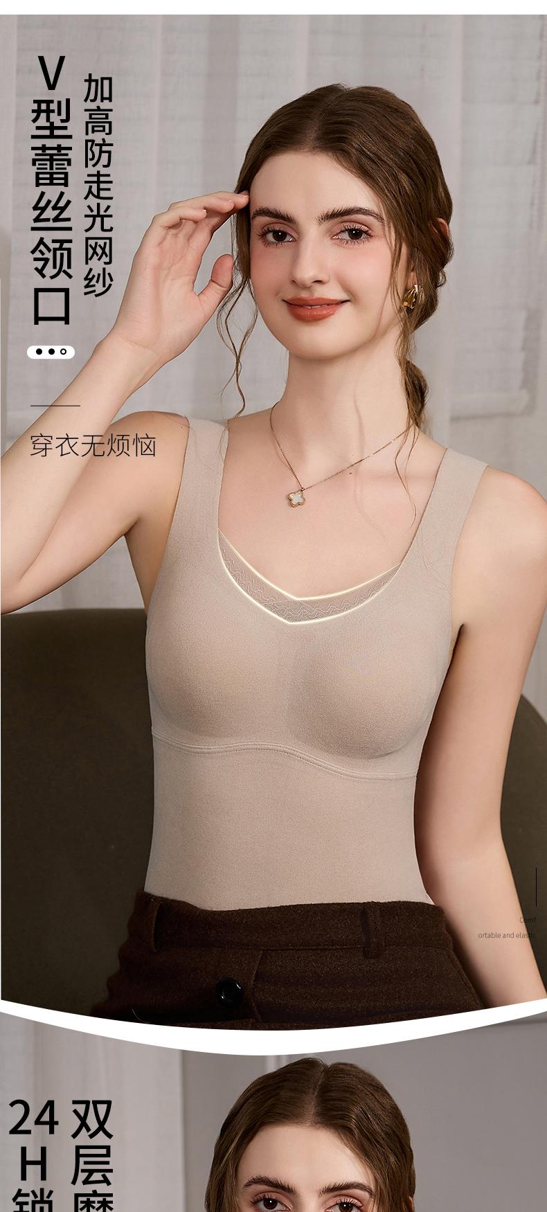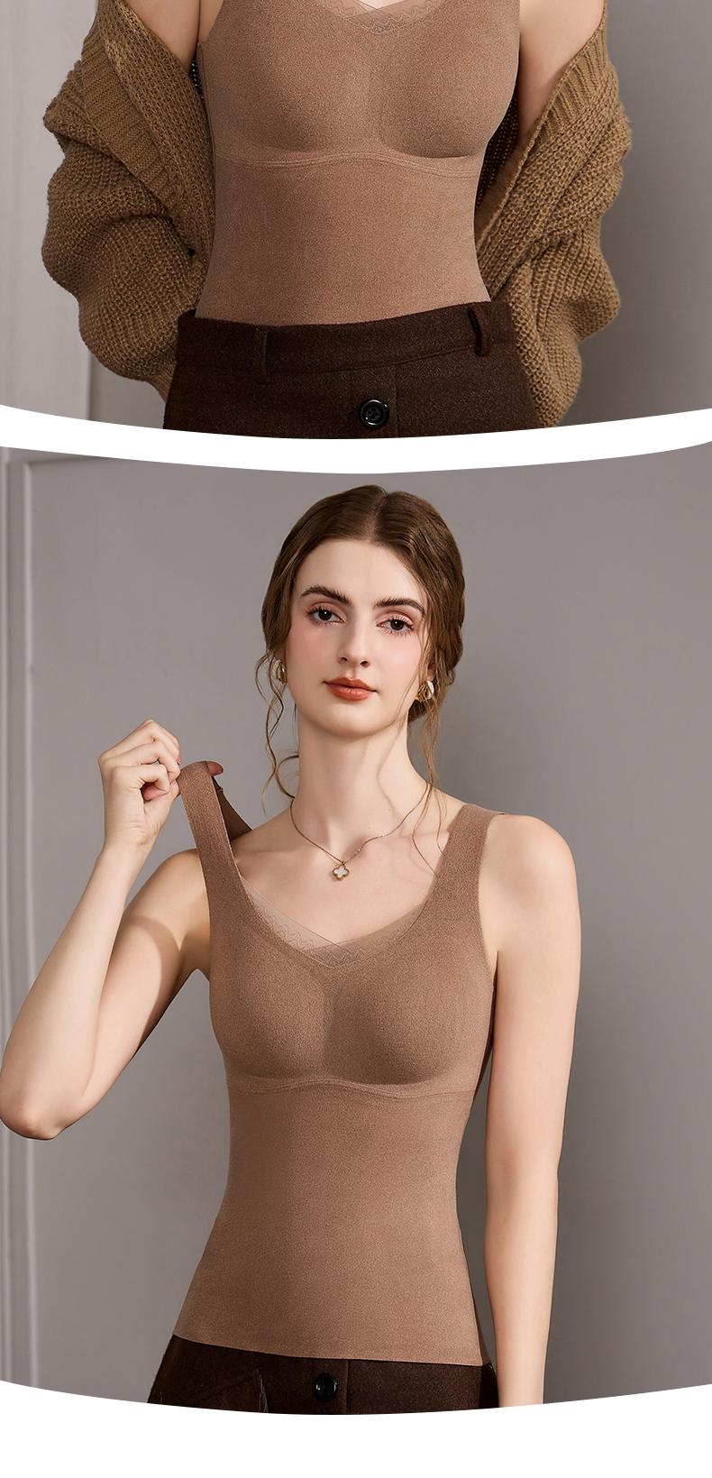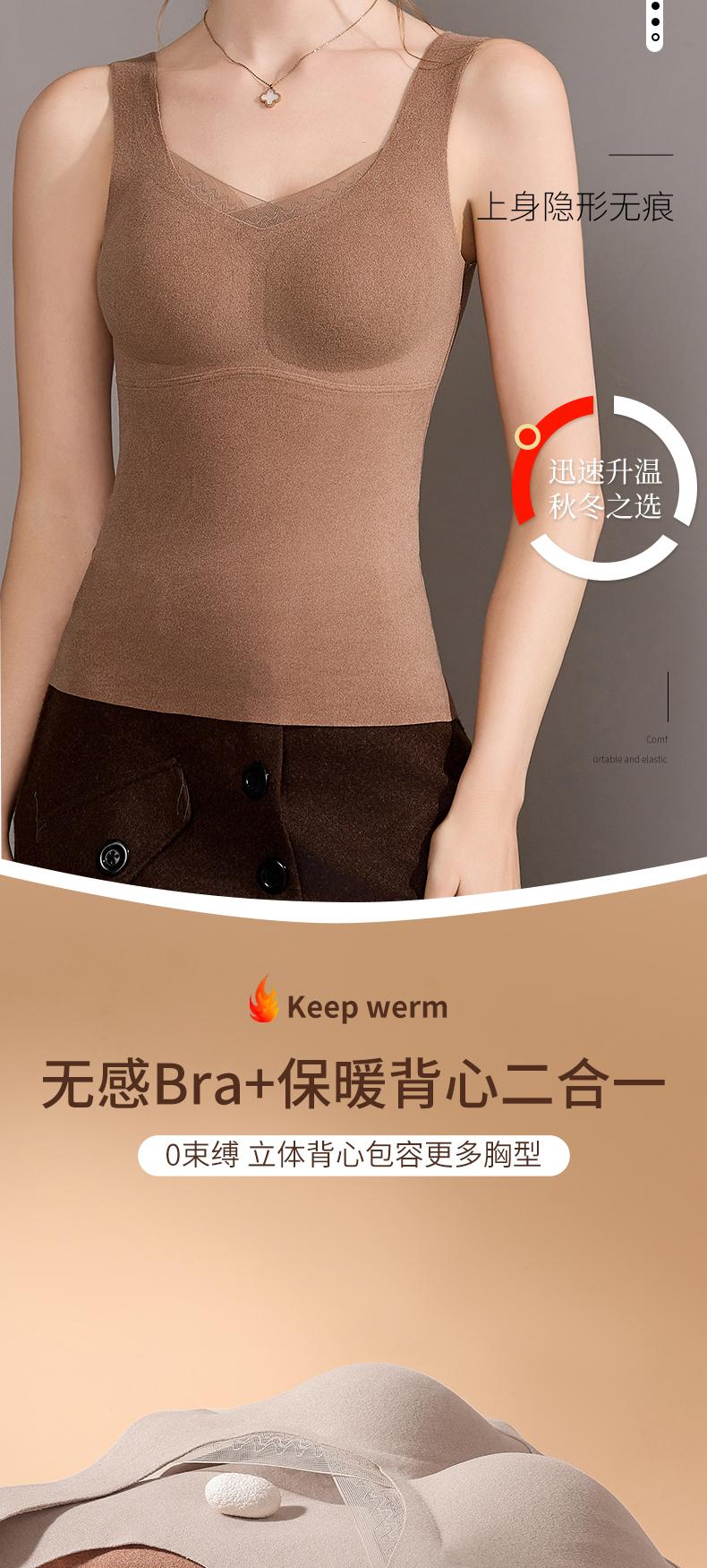 Chaleco cálido sin costuras de otoño e invierno para mujer, base de otoño e invierno, forro polar grueso, tirante interior, almohadilla para el pecho, ropa interior térmica de una pieza para mujer