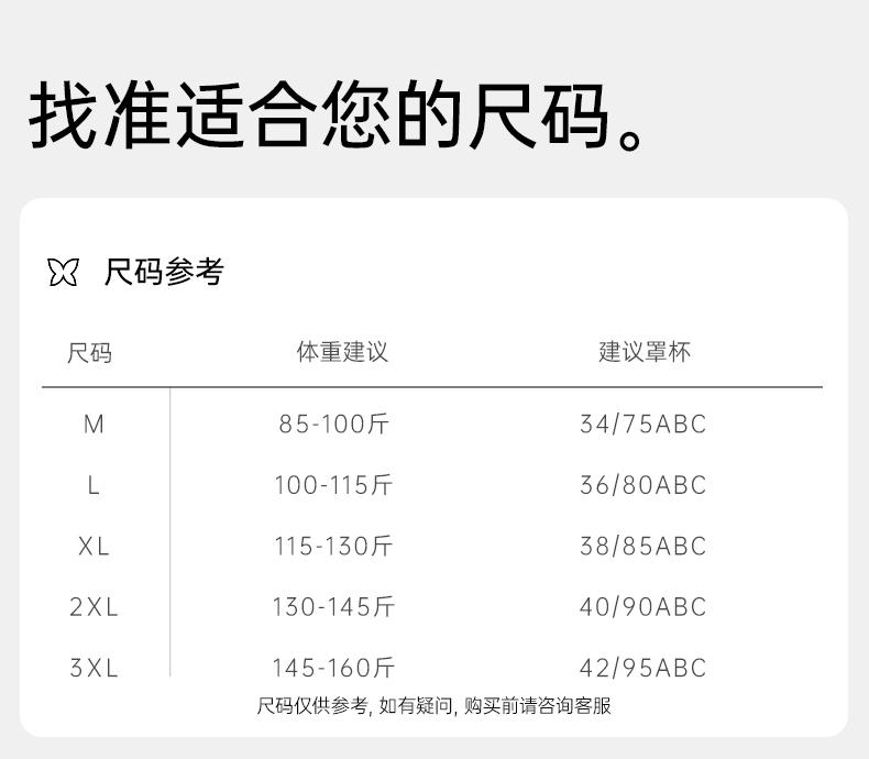 M (recommended 42.5-50kg ), L (recommended 50-57.5kg ), Xl (recommended 57.5-65kg ), 2xl (recommended 65-72.5k...
