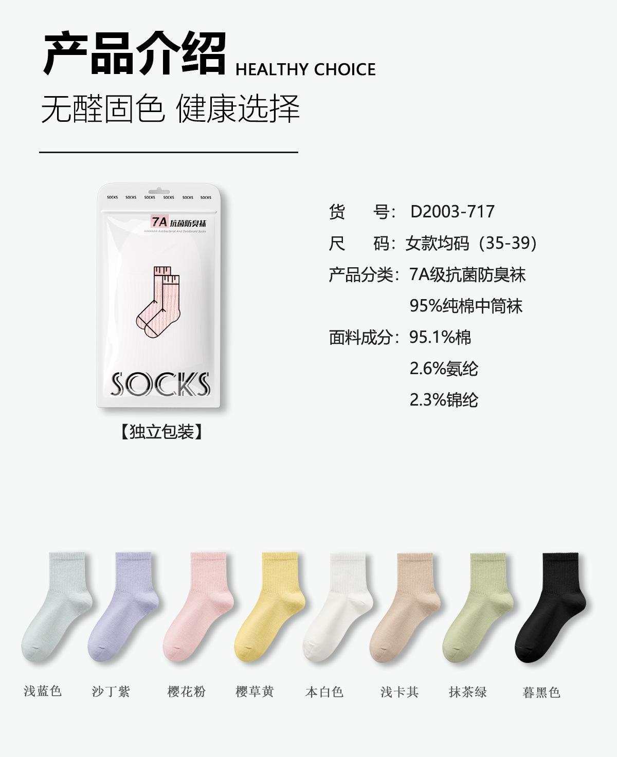 Calcetines de algodón para mujer, calcetines de otoño e invierno, calcetines de color liso, primavera y otoño 7A, desodorantes antibacterianos, calcetines absorbentes del sudor, al por mayor