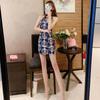 Blue printed cheongsam + t pants, Black printed cheongsam + t pants, Yellow printed cheongsam + t pants, White...