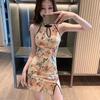 Talla Grande Estilo Chanel Pequeño Cheongsam Mejorado para Niña Sexy Pecho Abierto Falda Hueca de Cadera Club Nocturno Abertura Alta Línea Roja de Internet