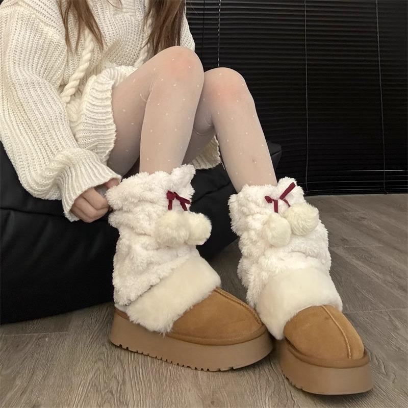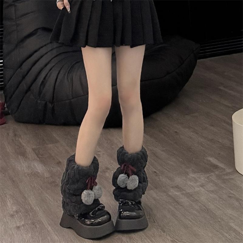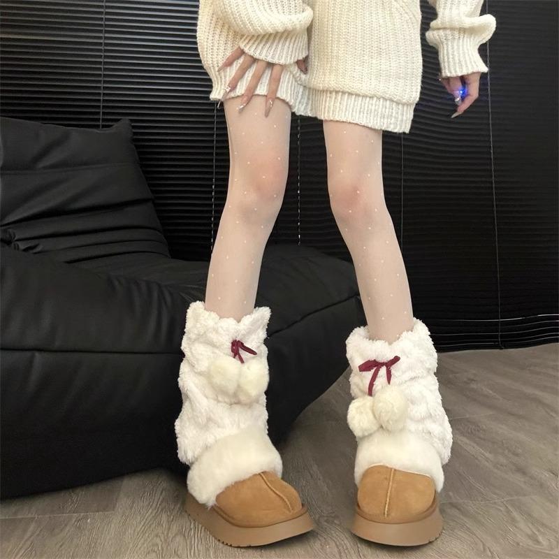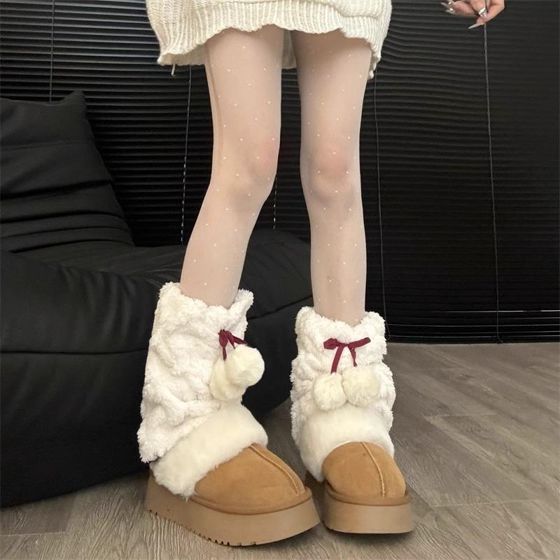 Calcetines Japoneses Lindos con Bola de Pelo para Otoño e Invierno Y2K Felpa Engrosada Cubrepiernas Cálidos Adelgazantes Calcetines Medios