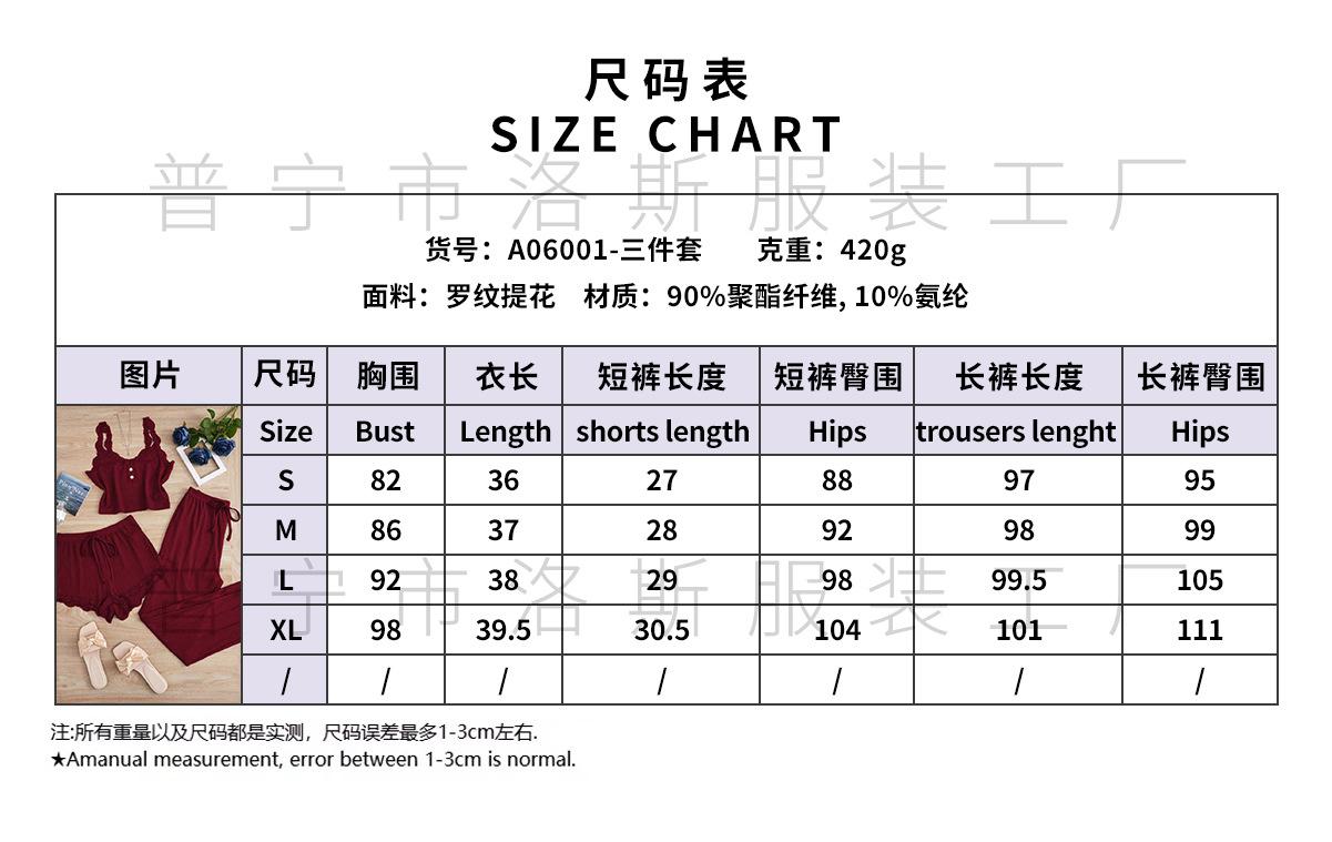 Europa y Estados Unidos comercio exterior transfronterizo nuevo encaje encaje camisola shorts largos pijama ropa de mujer traje delgado de tres piezas