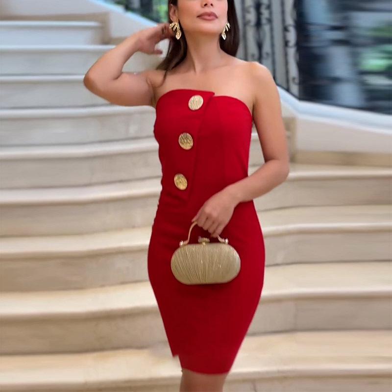 Primavera 2025 Comercio exterior Europa y Estados Unidos Amazon transfronterizo nuevo sexy espalda descubierta cadera vestido sin tirantes vestido ajustado