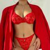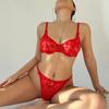 Encaje Francés Sexy Transpirable Delgado Estampado Flocado Íntimos de Mujer Mostrar Senos Grandes Sujetador Pequeño Tanga