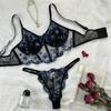 Lencería Sexy de Encaje Fresco Pequeño Europeo y Americano Set de Sujetador y Tanga Bordado Diversión para Parejas Coqueteo Lencería Sexy
