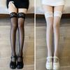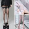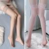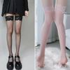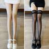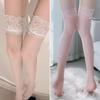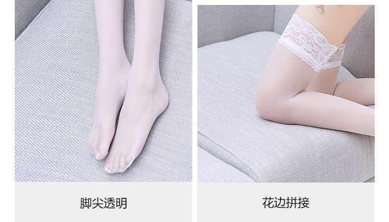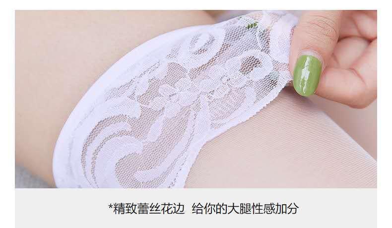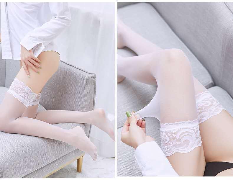 Medias de encaje de seda blanca para mujer, ultrafinas, transparentes, adelgazantes, antideslizantes, negras, sexys, por encima de la rodilla.
