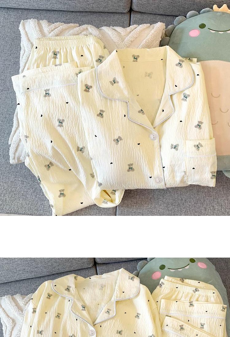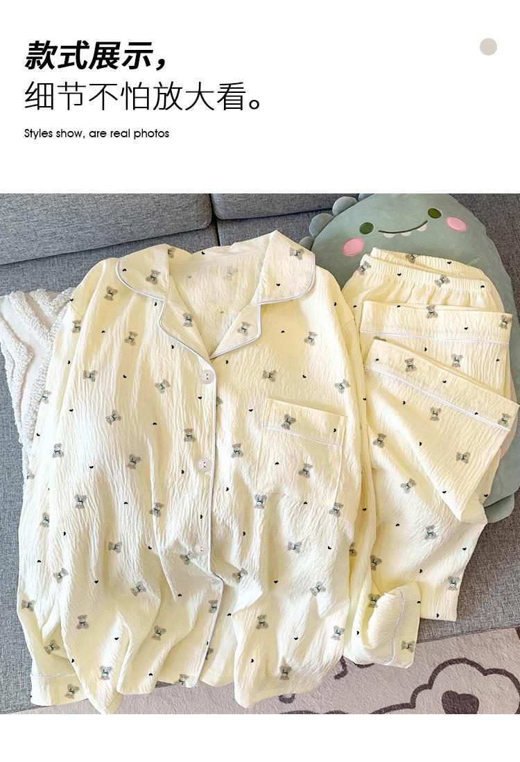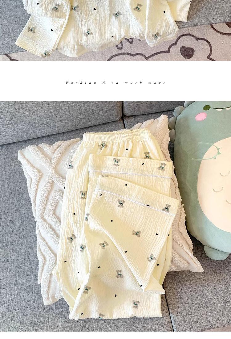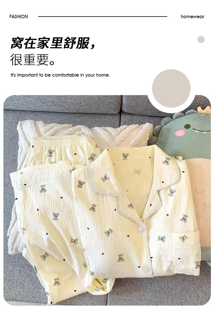 Pijama de manga larga con cárdigan de oso de amor dulce francés para mujer, ropa de hogar sencilla y nueva para primavera y otoño, venta al por mayor