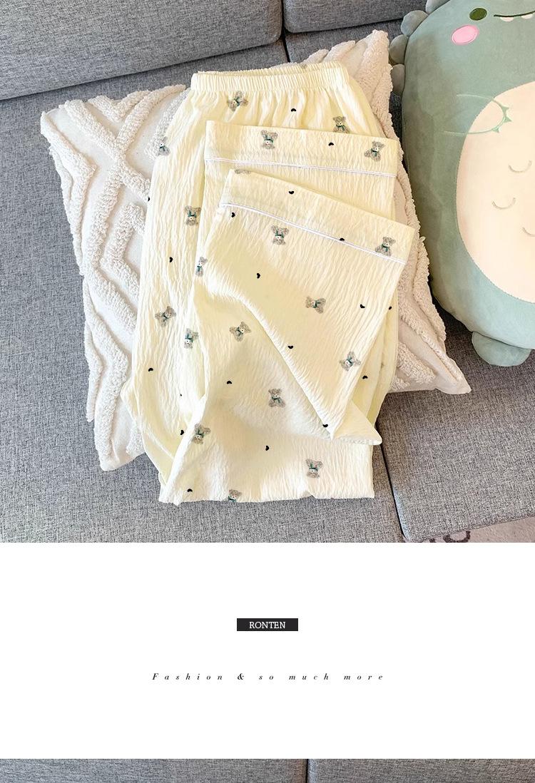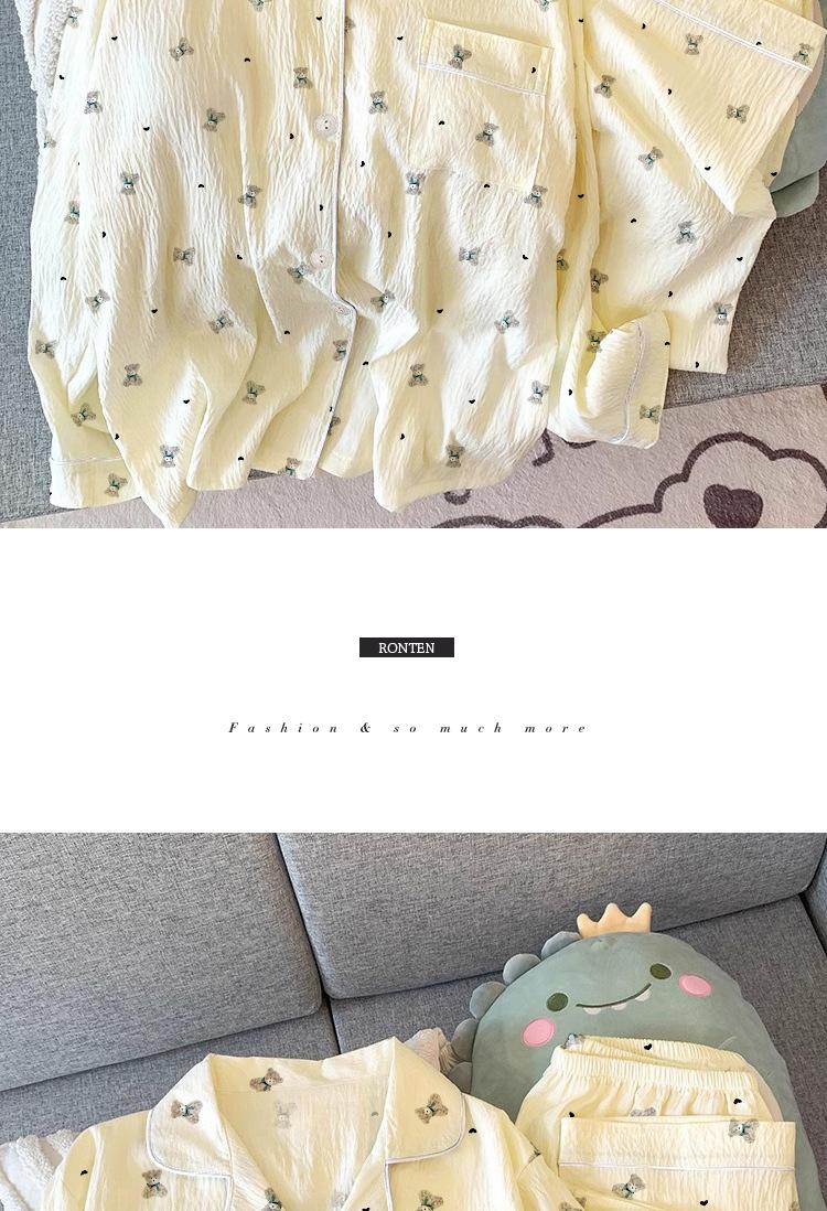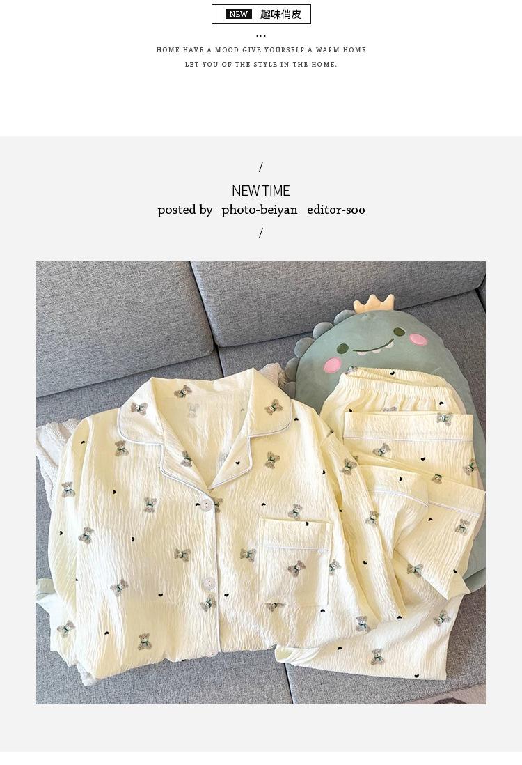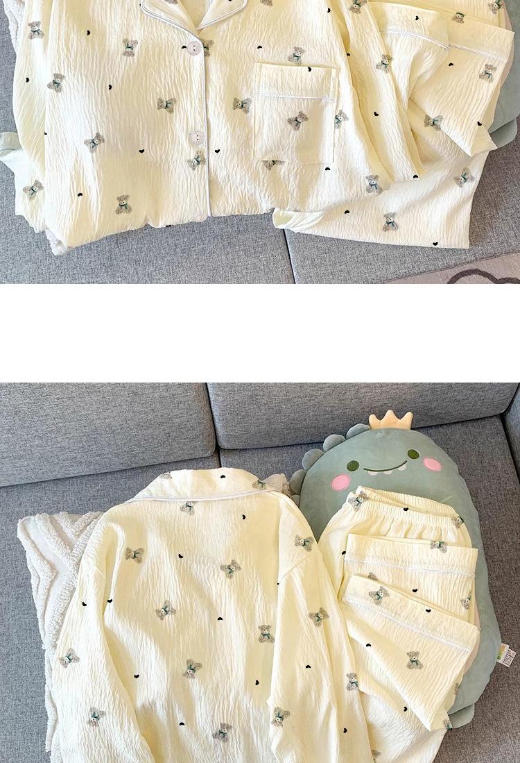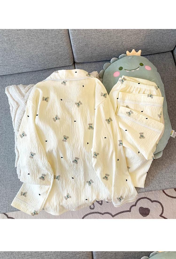 Pijama de manga larga con cárdigan de oso de amor dulce francés para mujer, ropa de hogar sencilla y nueva para primavera y otoño, venta al por mayor