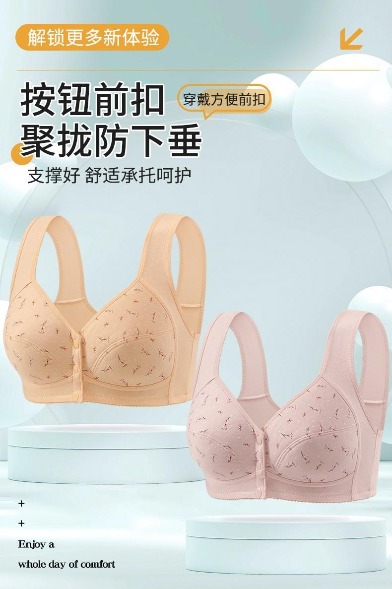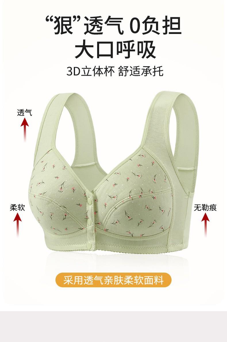 Transfronterizo Nuevo Algodón Suave Copa Delgada Hebilla Delantera Ropa Interior para Mediana Edad y Ancianas Chaleco Cómodo sin Aros Sujetador Talla Grande