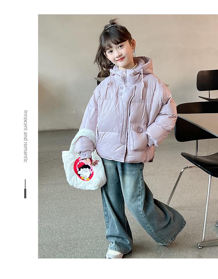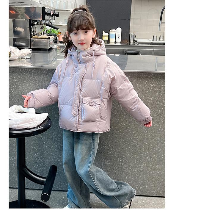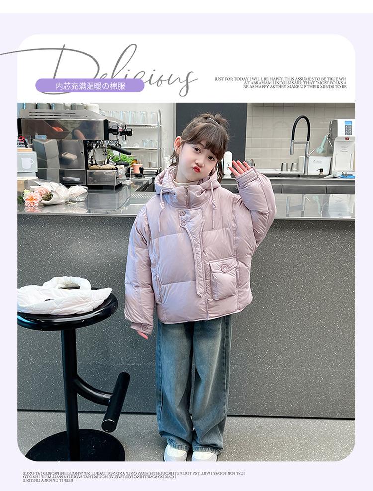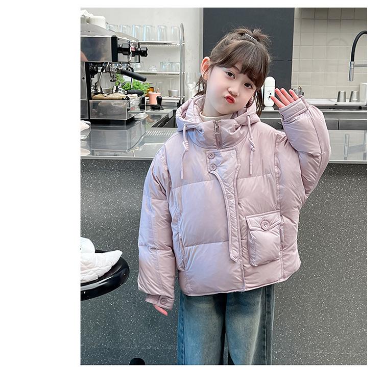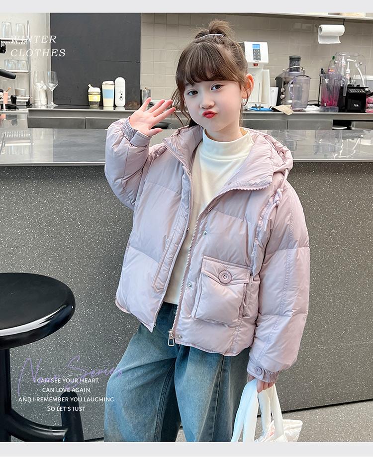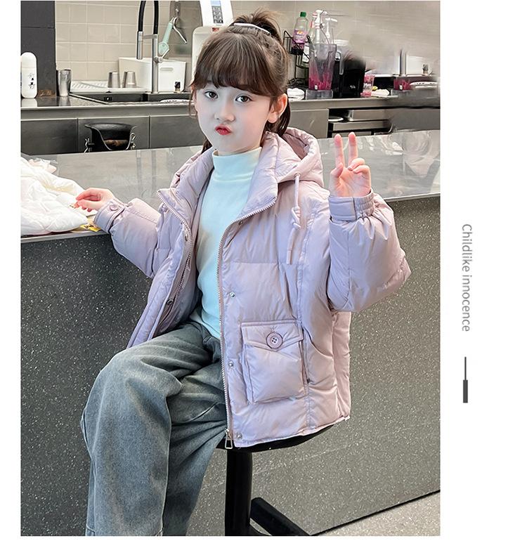 Ropa Corta para Niñas Acolchada de Algodón Invierno Algodón y Engrosamiento Cálido Estilo Extranjero con Capucha Chaqueta Acolchada de Algodón Plumón Moda Infantil de Invierno
