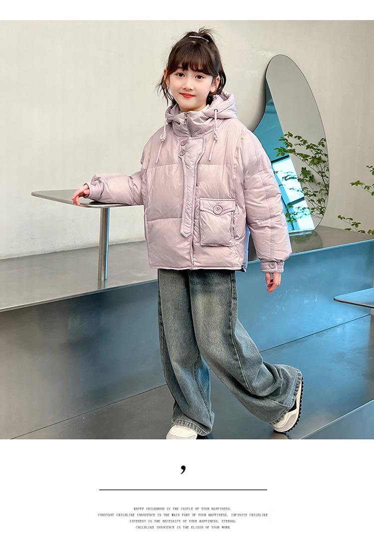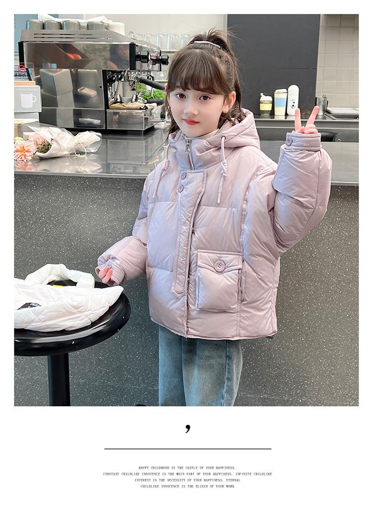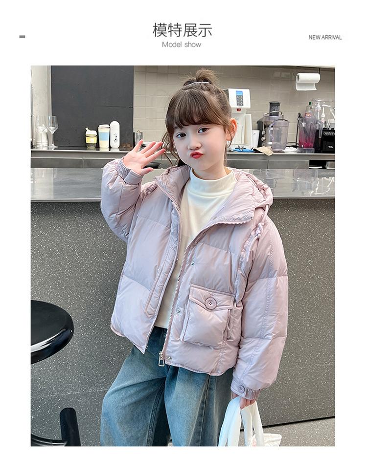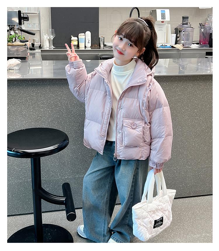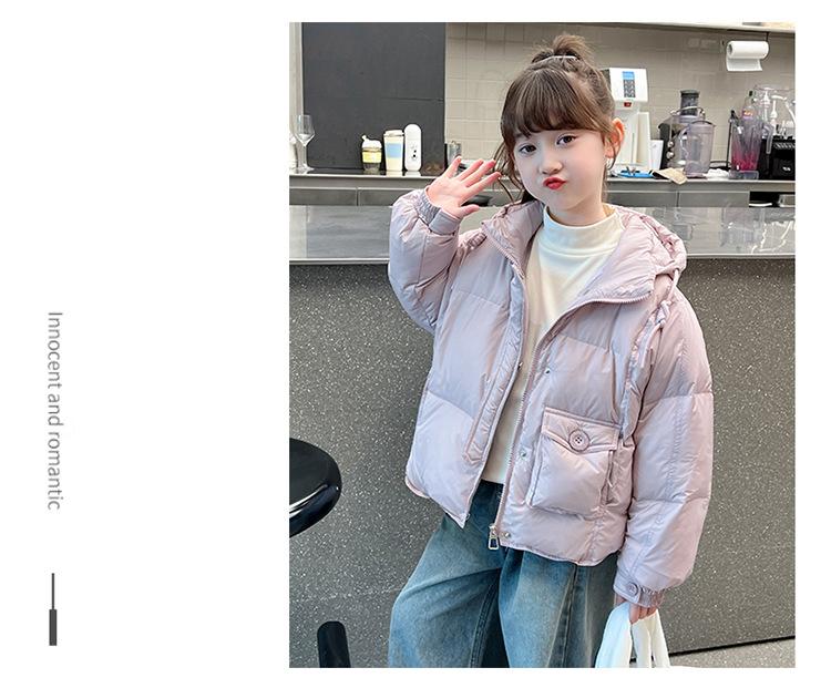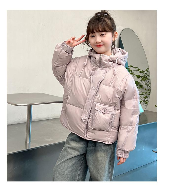 Ropa Corta para Niñas Acolchada de Algodón Invierno Algodón y Engrosamiento Cálido Estilo Extranjero con Capucha Chaqueta Acolchada de Algodón Plumón Moda Infantil de Invierno