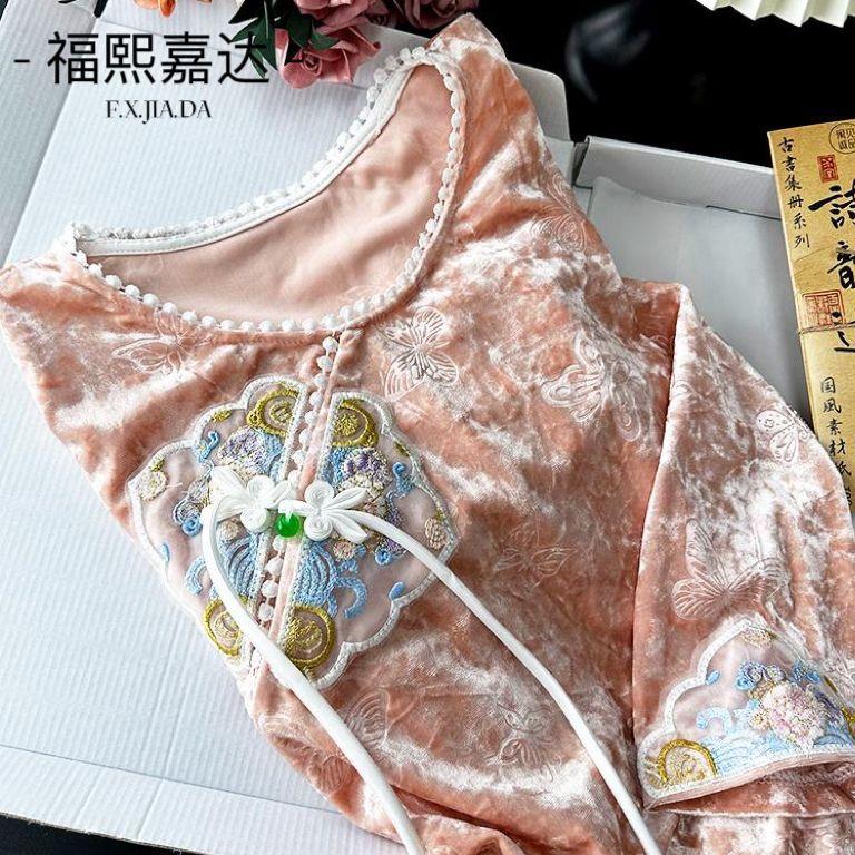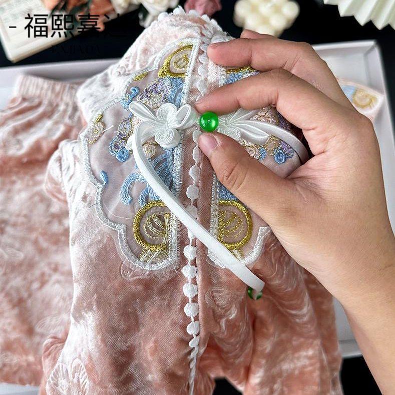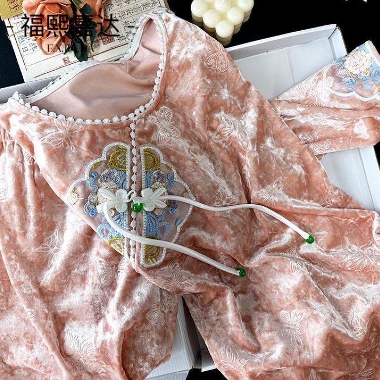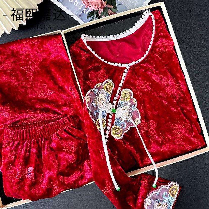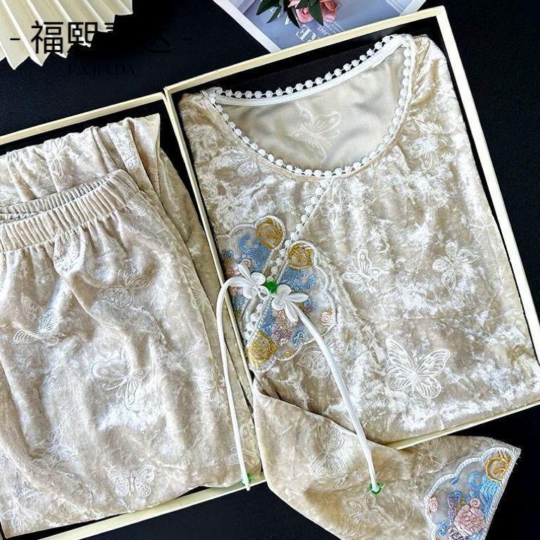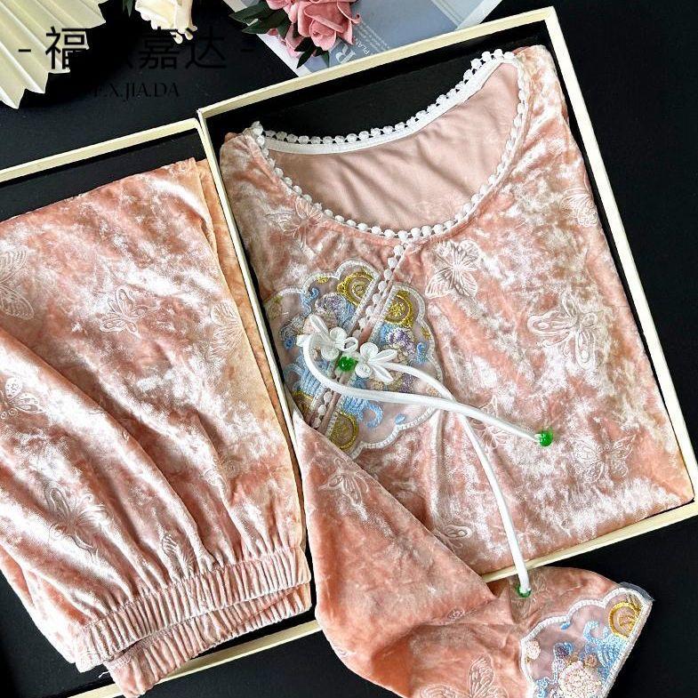 Otoño e Invierno Nuevo Pijama de Terciopelo Dorado para Mujer Nuevo Estilo Chino Estilo Nacional Hebilla Suelta Talla Grande Traje de Ropa para el Hogar para Mujer Puede Salir