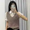 Camisa de Empalme a Rayas Falso Dos Piezas para Mujer Diseño Nuevo de Verano Transfronterizo Nicho Chic Cuello Polo Top de Manga Corta