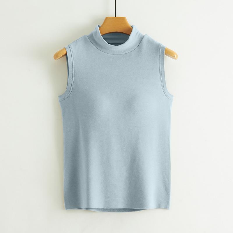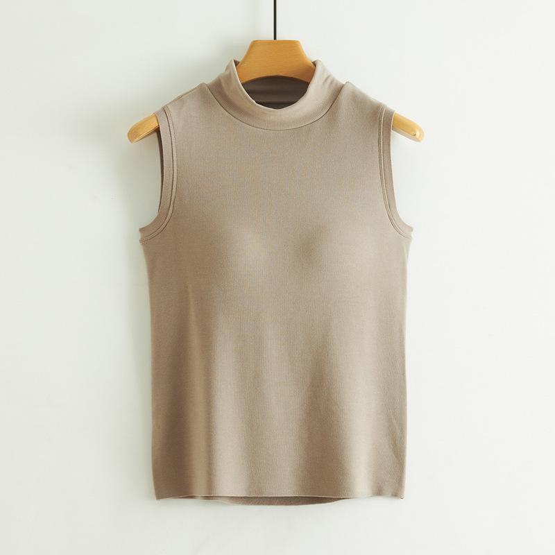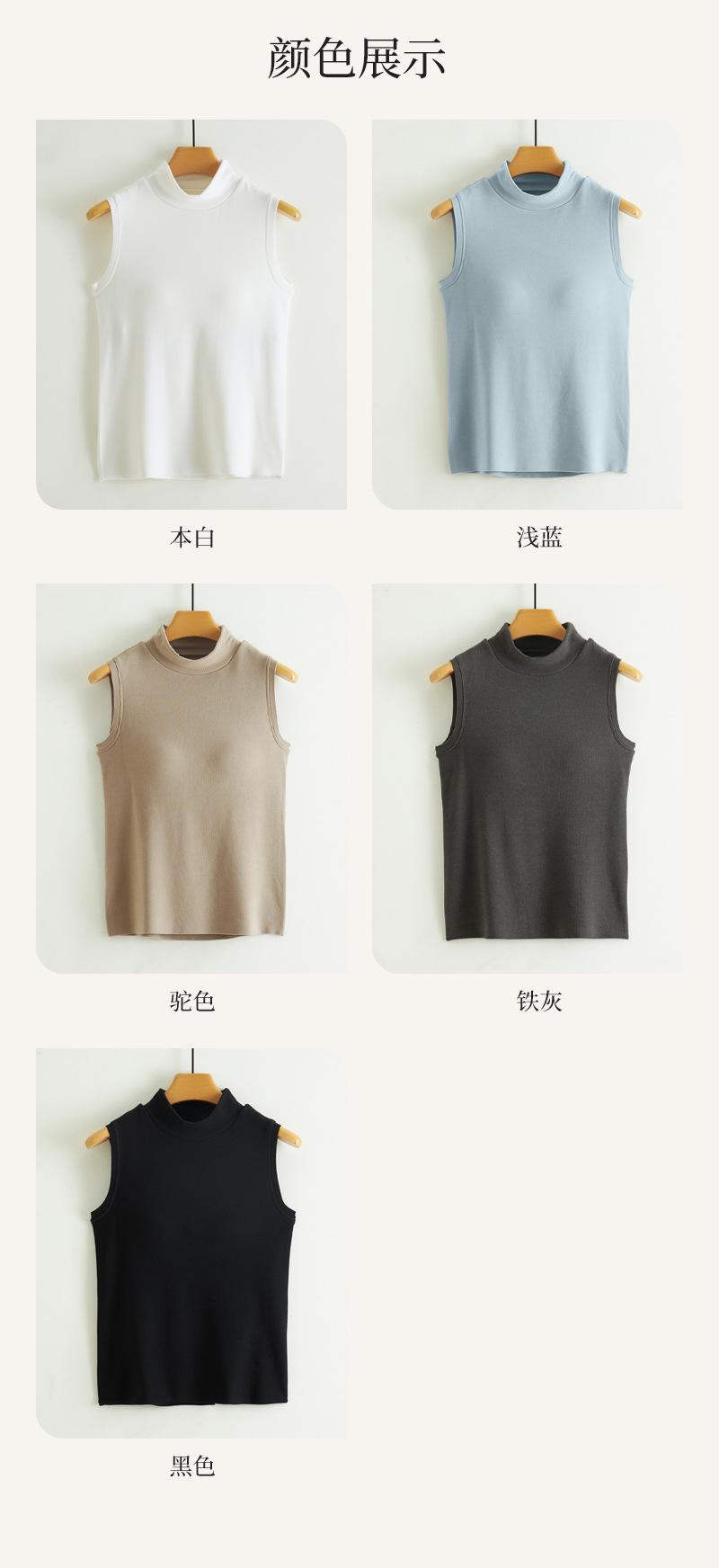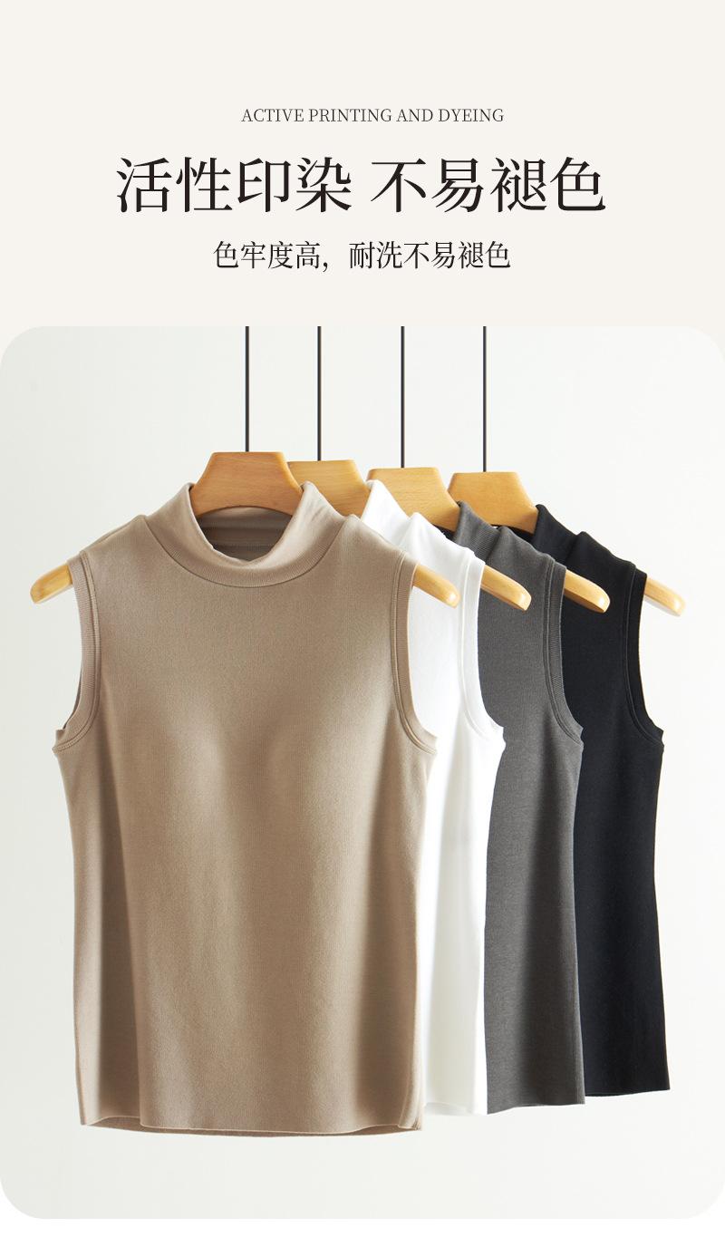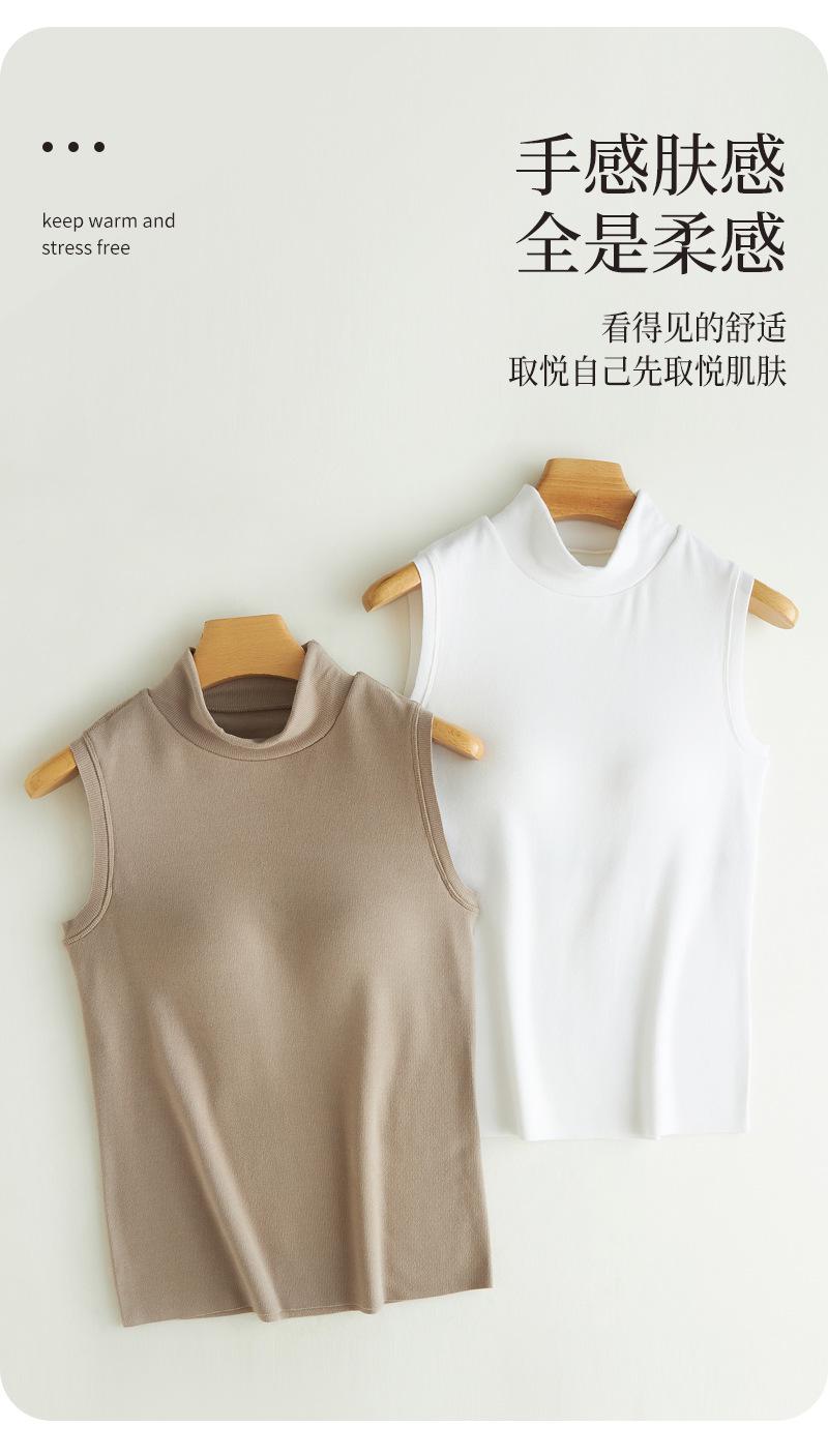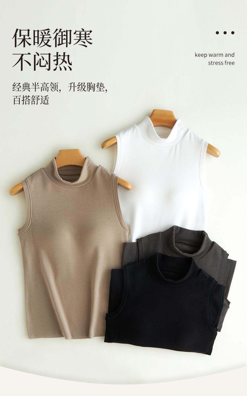 Chaleco de cuello semialto para mujer, nuevo estilo de otoño e invierno, forro polar, transpirable, absorbente de humedad y con almohadilla para el pecho, ajustado y cálido.