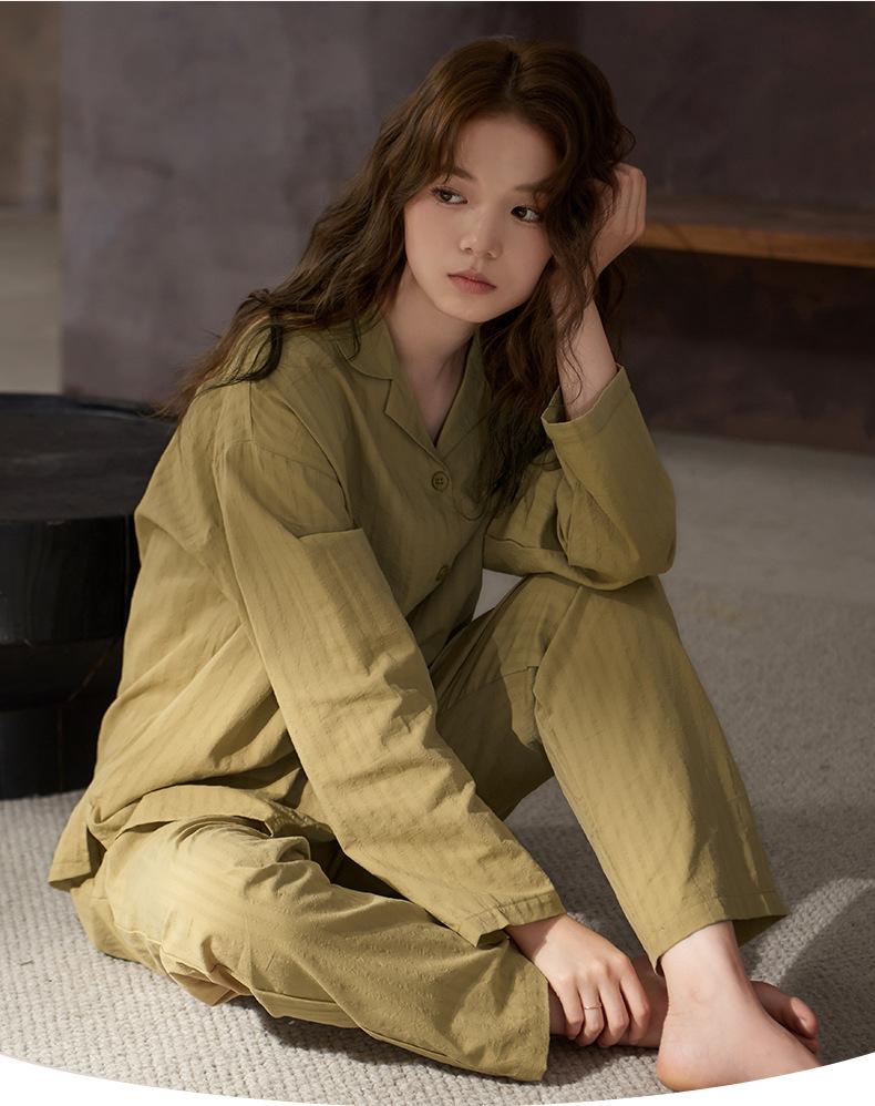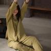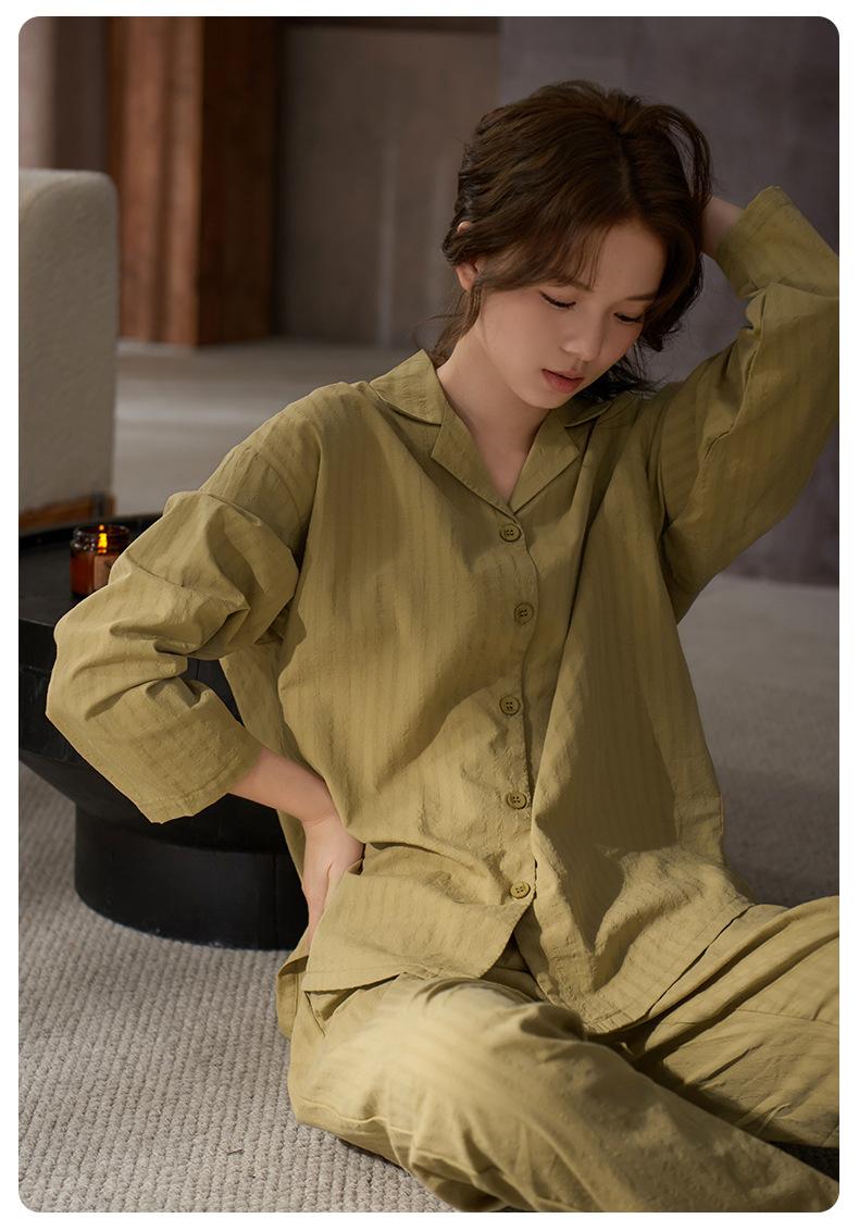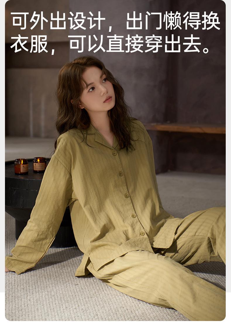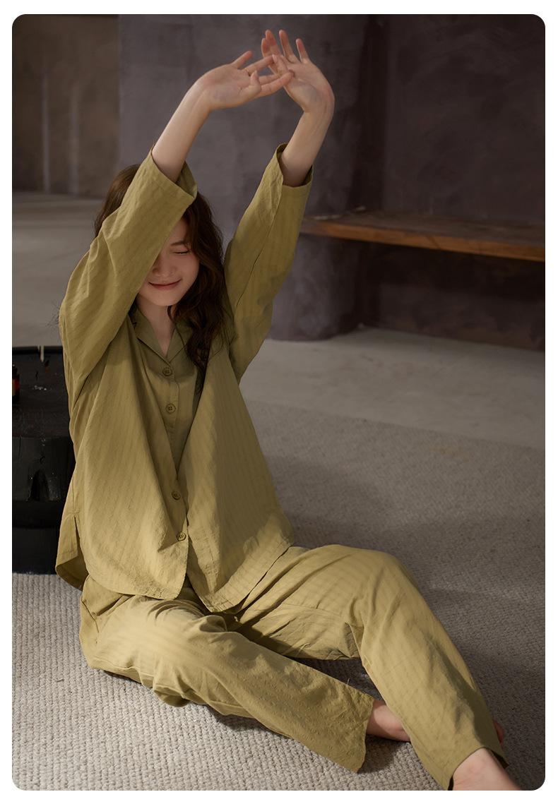 Pijamas de mujer de primavera y otoño de tela de algodón puro tejido suave con manga larga de algodón suave para el hogar.