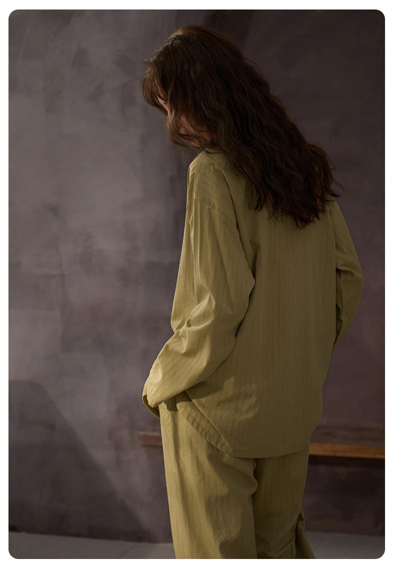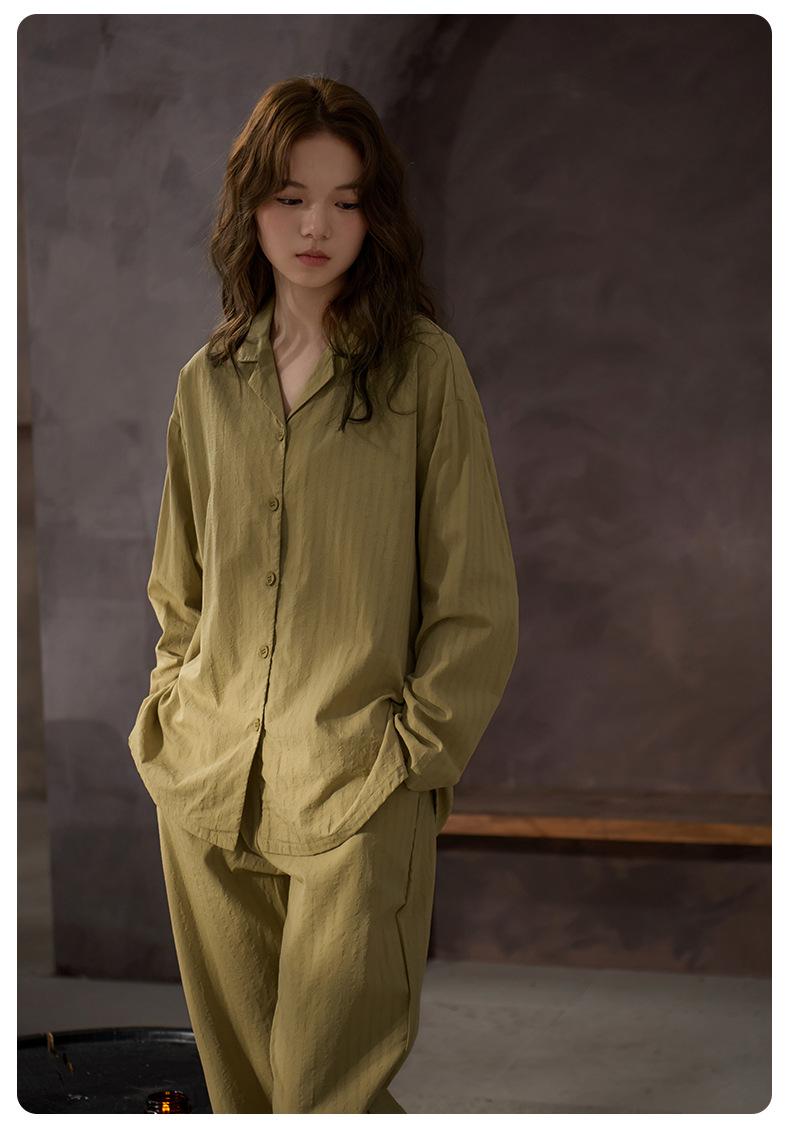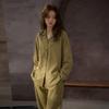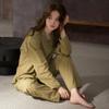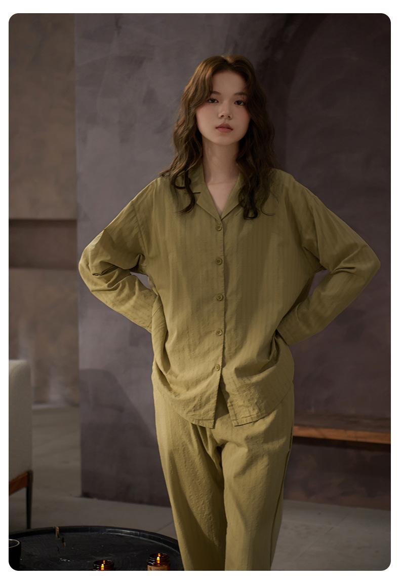 Pijamas de mujer de primavera y otoño de tela de algodón puro tejido suave con manga larga de algodón suave para el hogar.