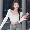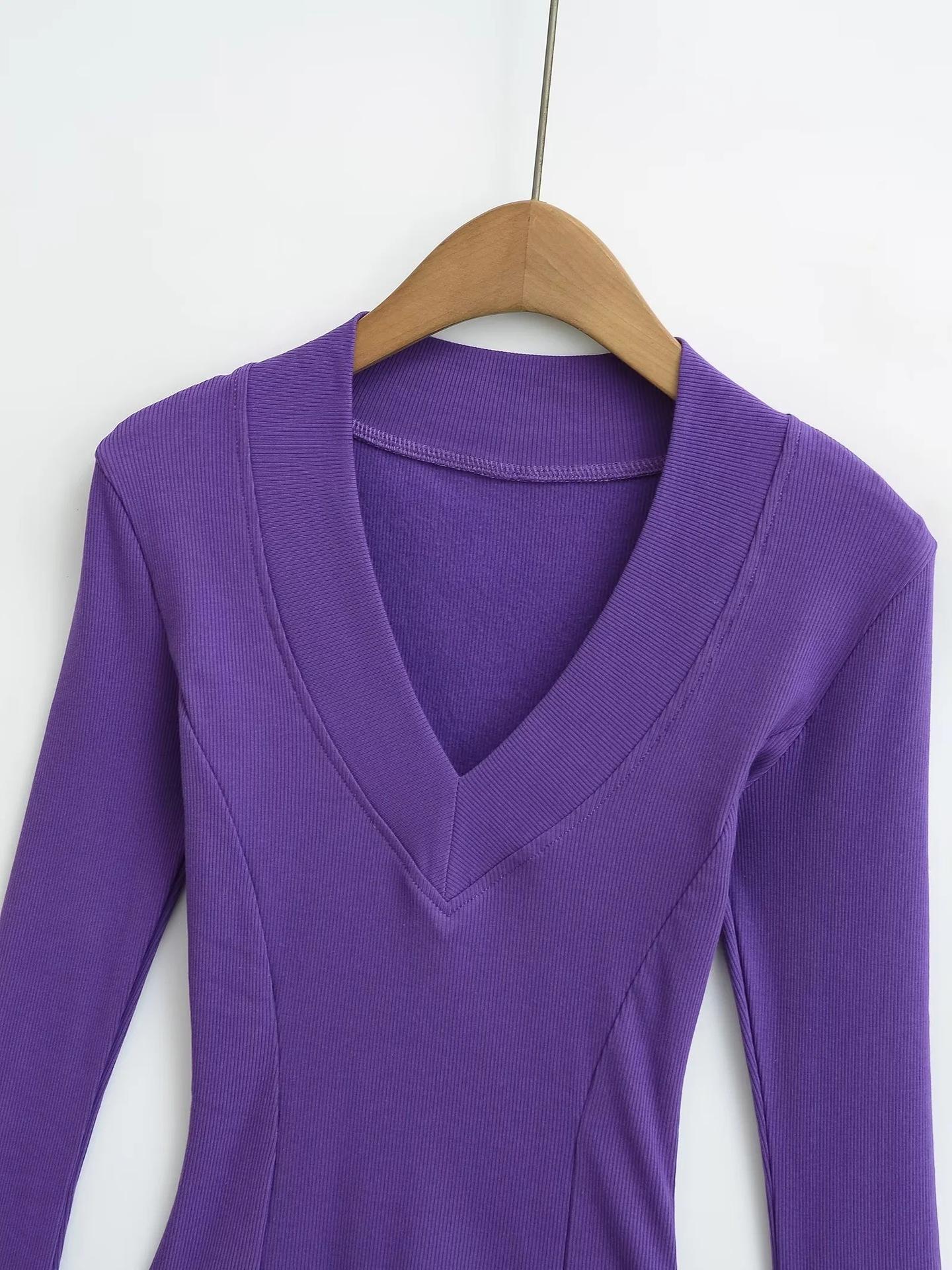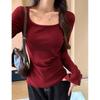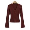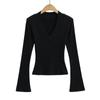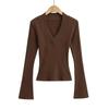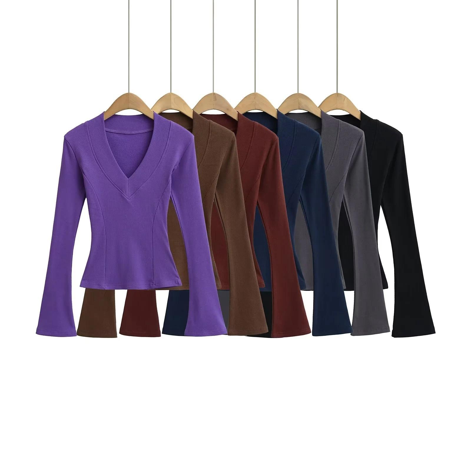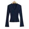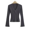 Camiseta de manga larga con cuello en V puro y sexy para chicas calientes, camisa base para mujer, top de polar fino y ajustado con mangas de cuerno de invierno