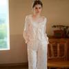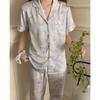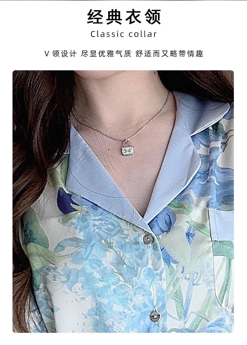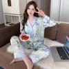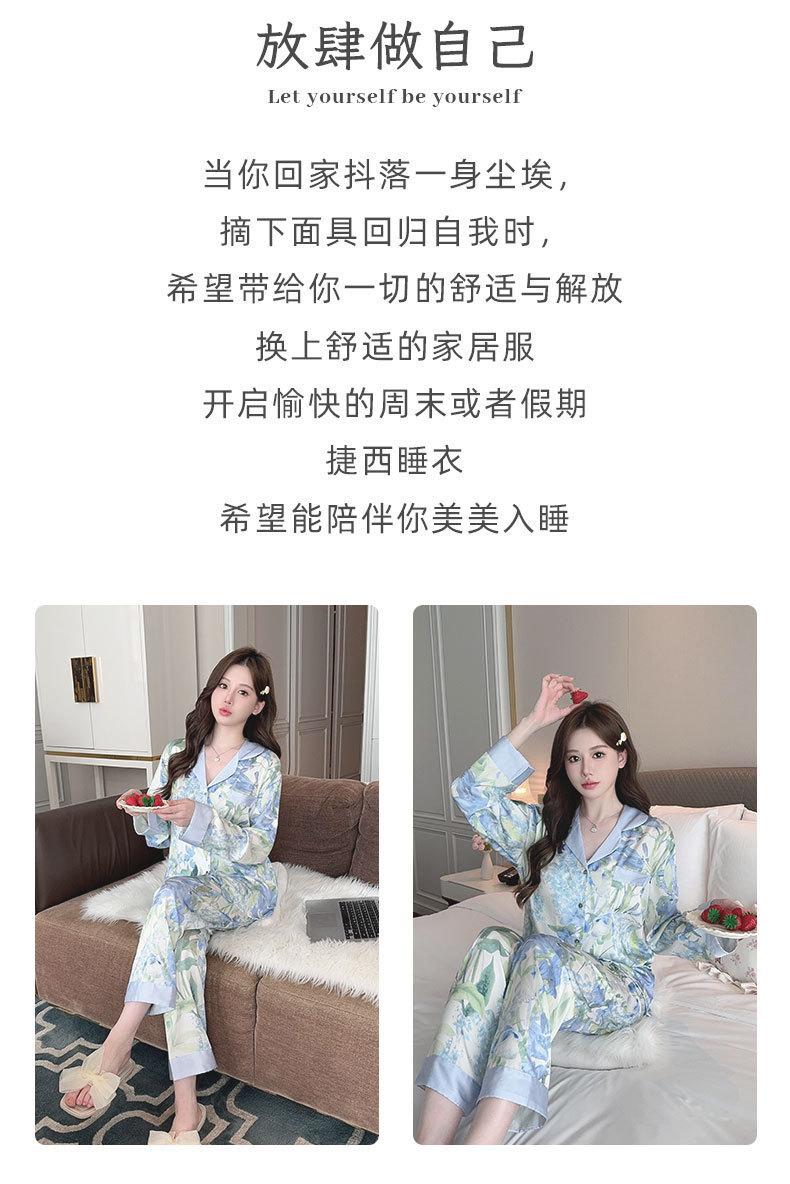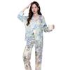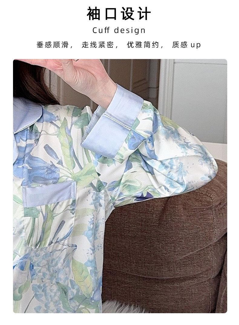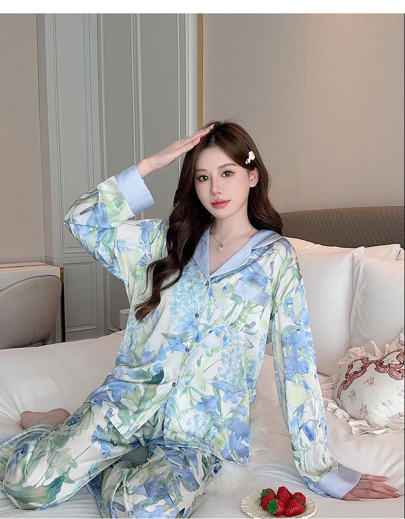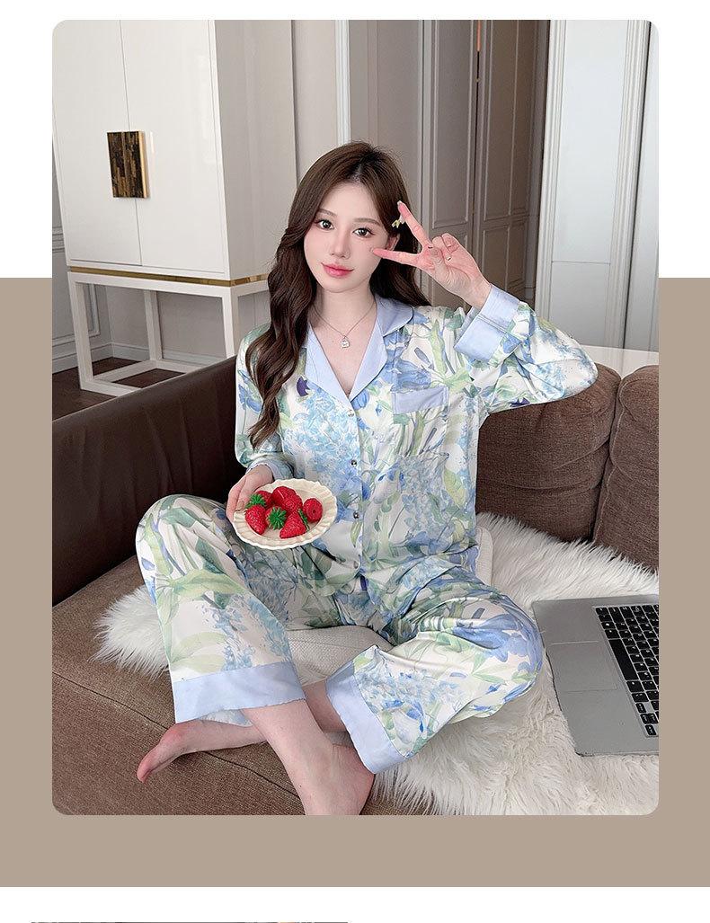 2024 principios de primavera nuevos pijamas de seda de hielo de manga larga para mujer talla grande trajes estampados estilo celebridad de internet ropa de verano para exteriores ropa de casa
