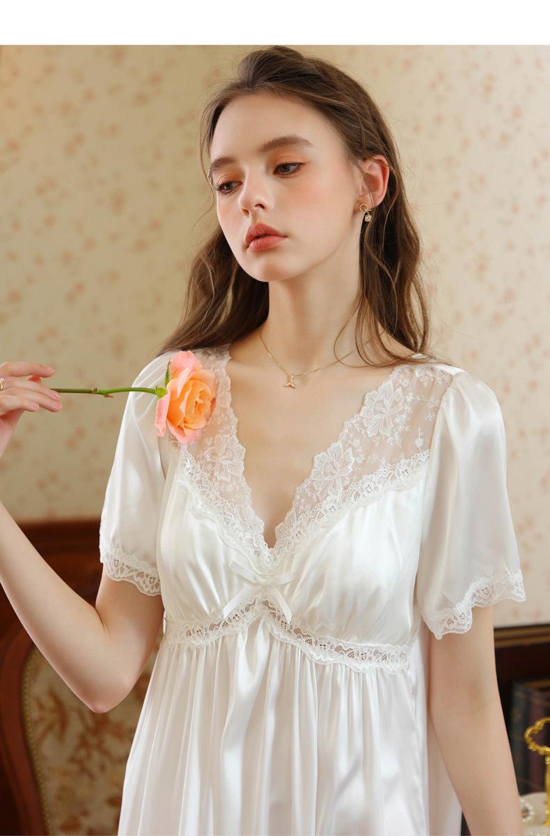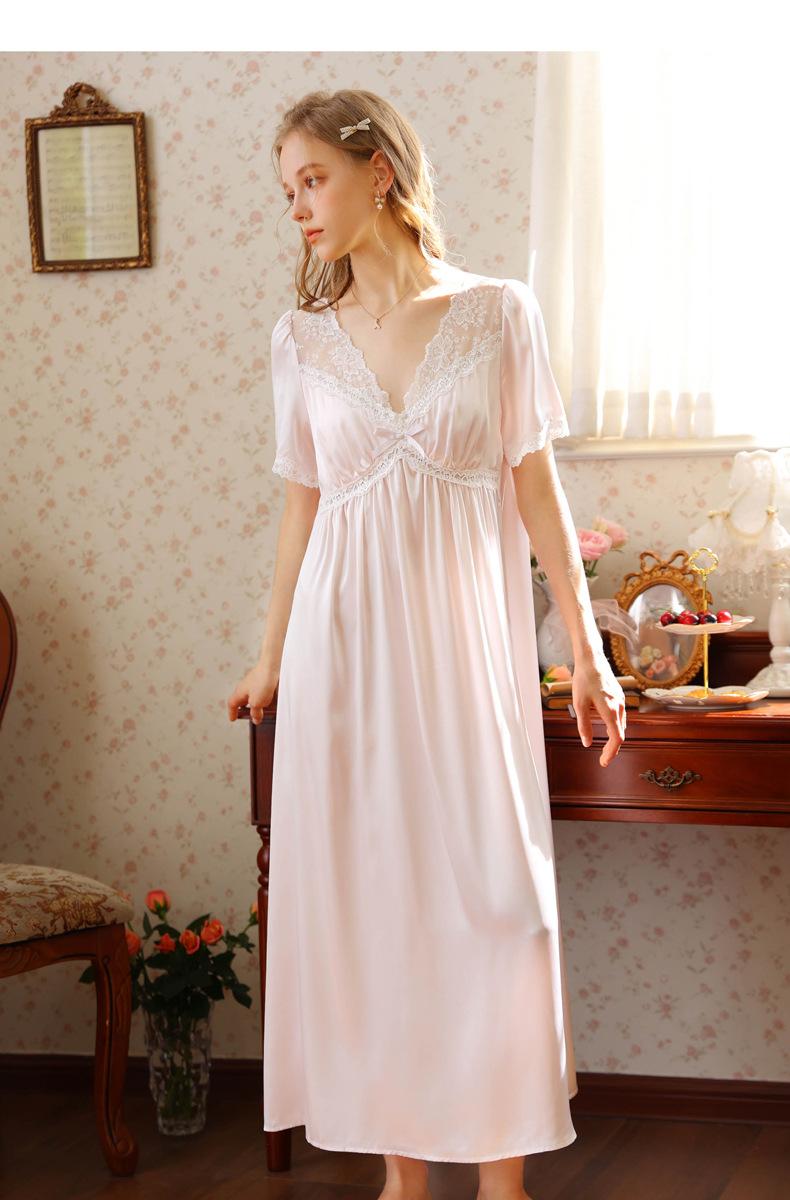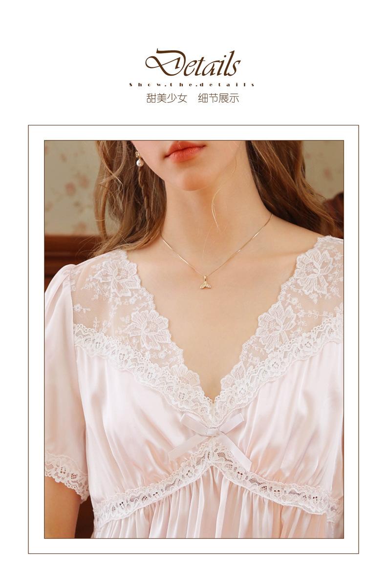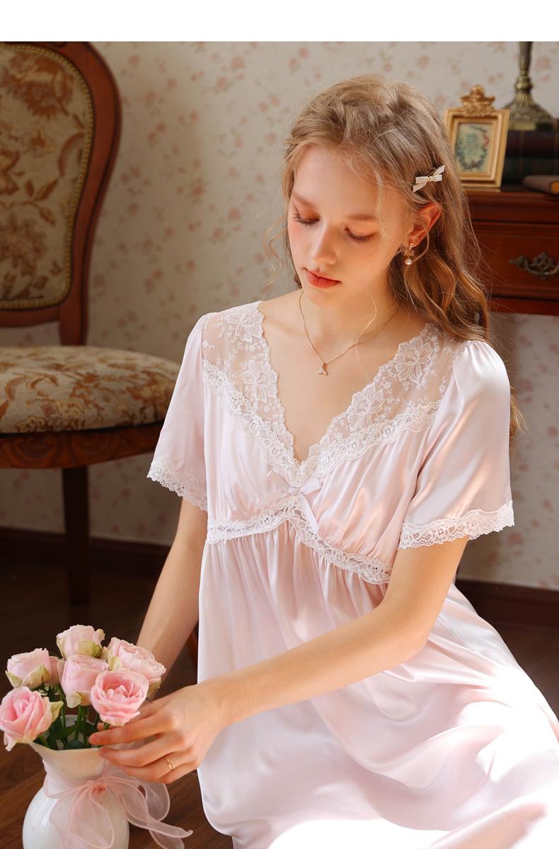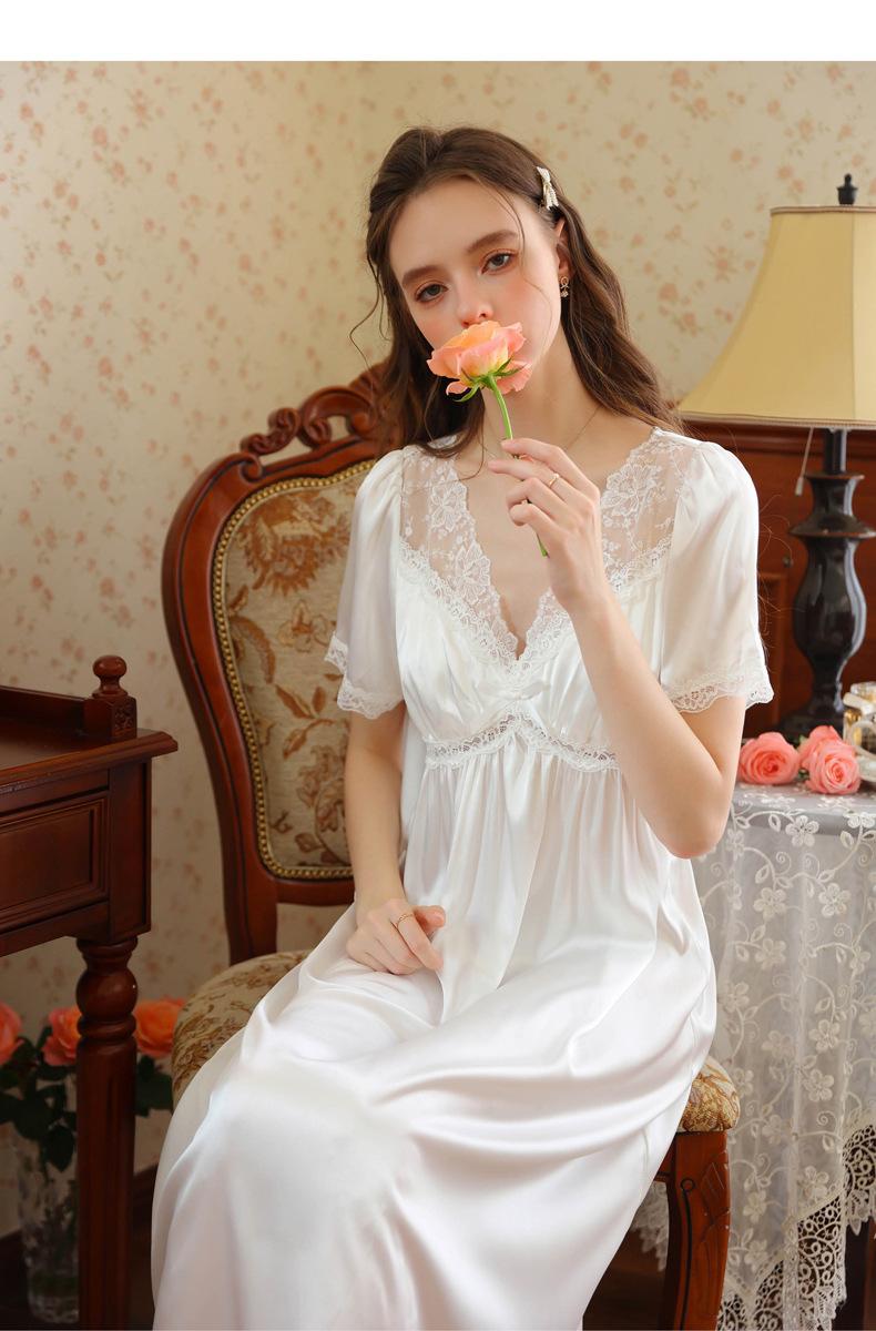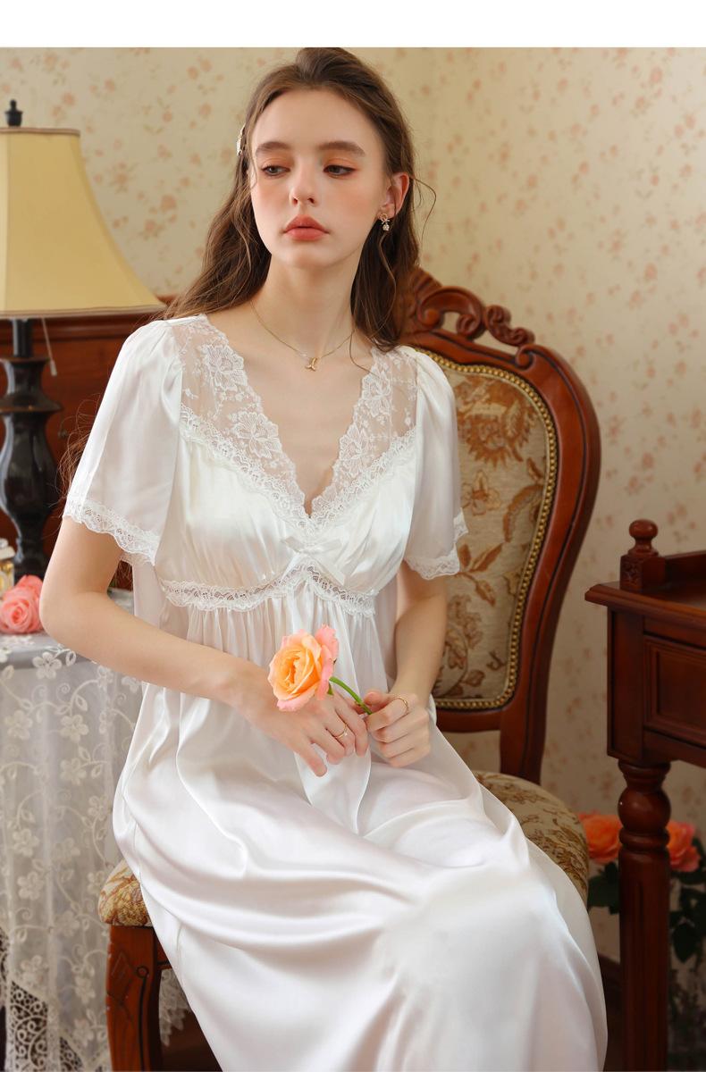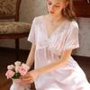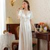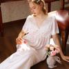 Camisón de encaje sexy largo y fino de verano nuevo palacio princesa dulce francés de alta gama de manga corta pijamas de mujer