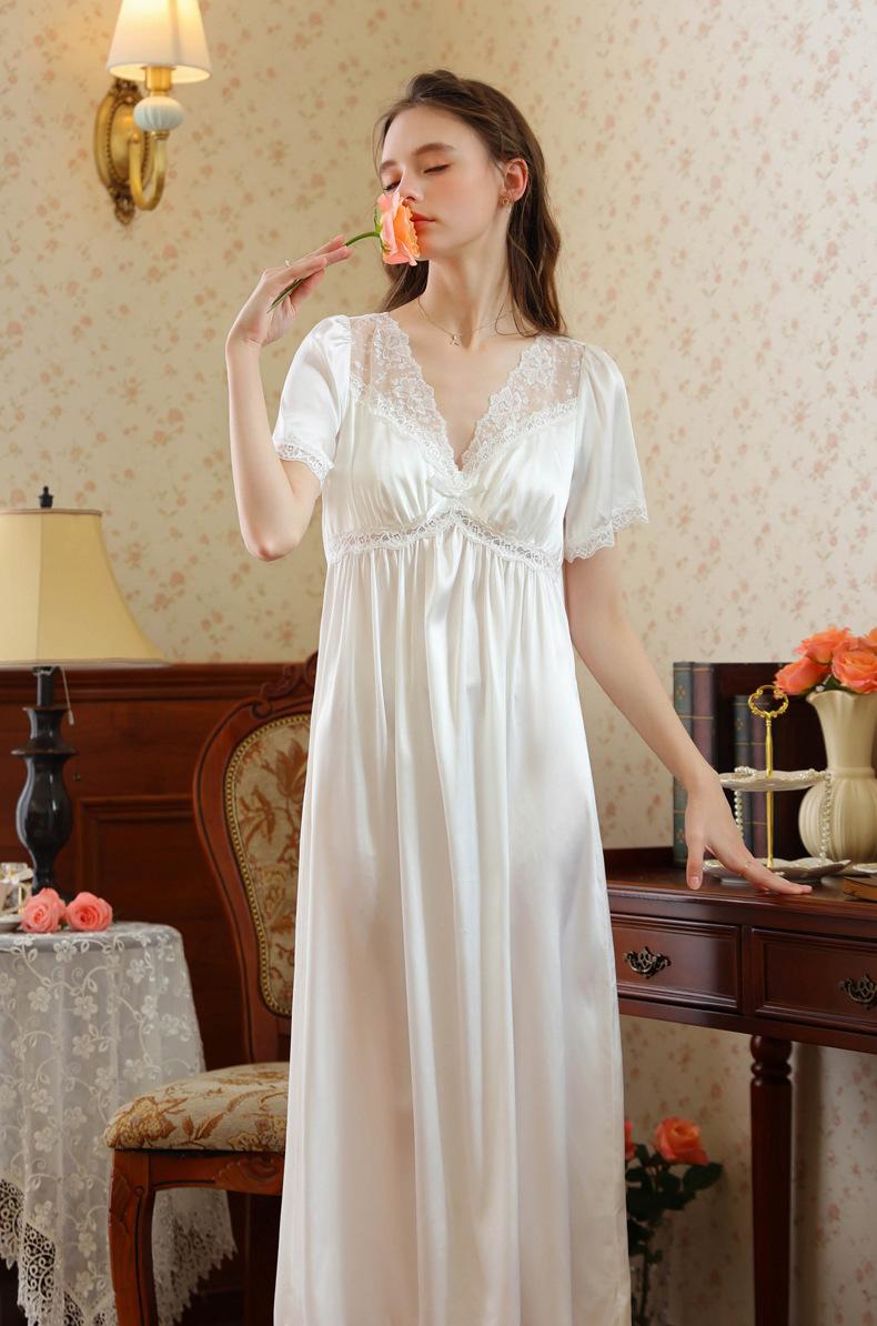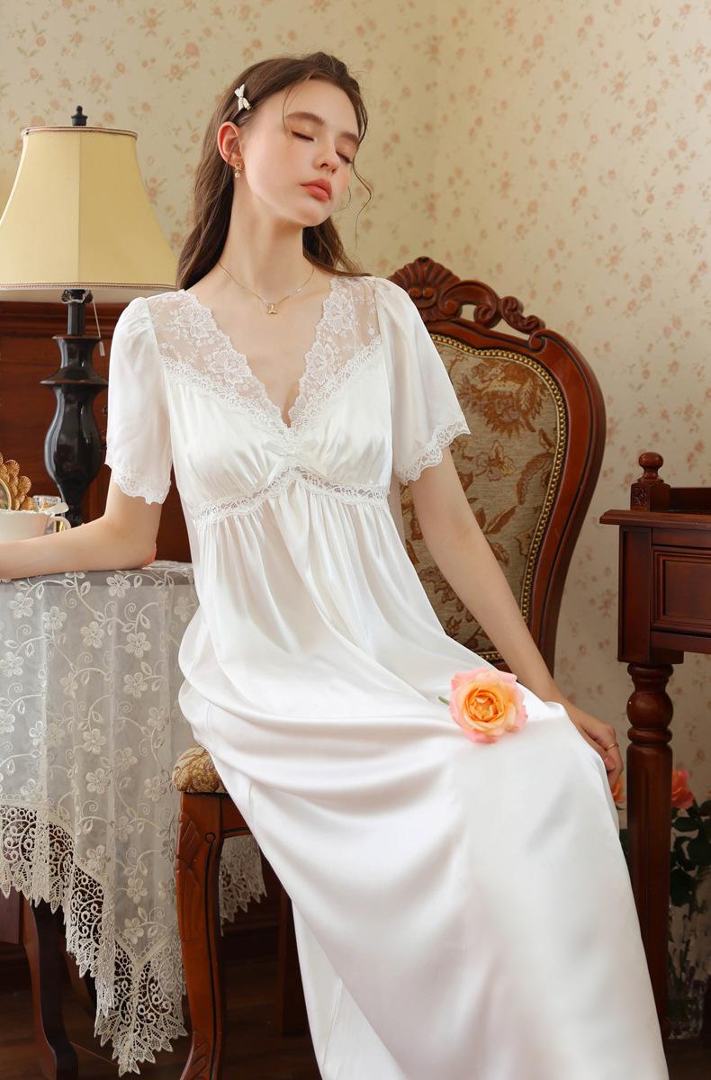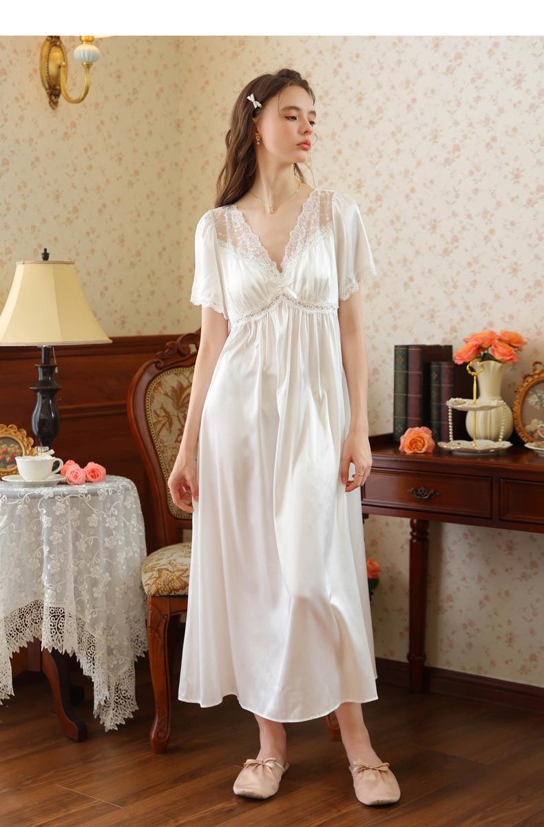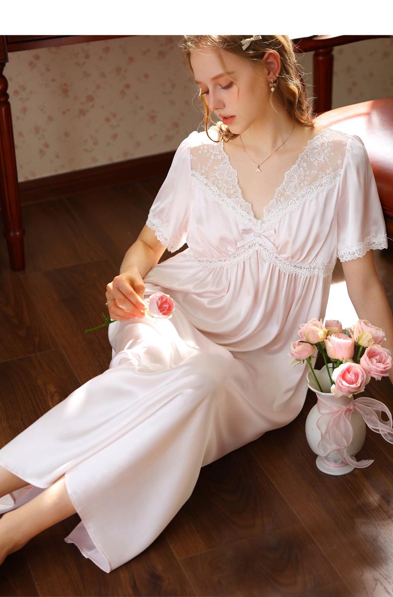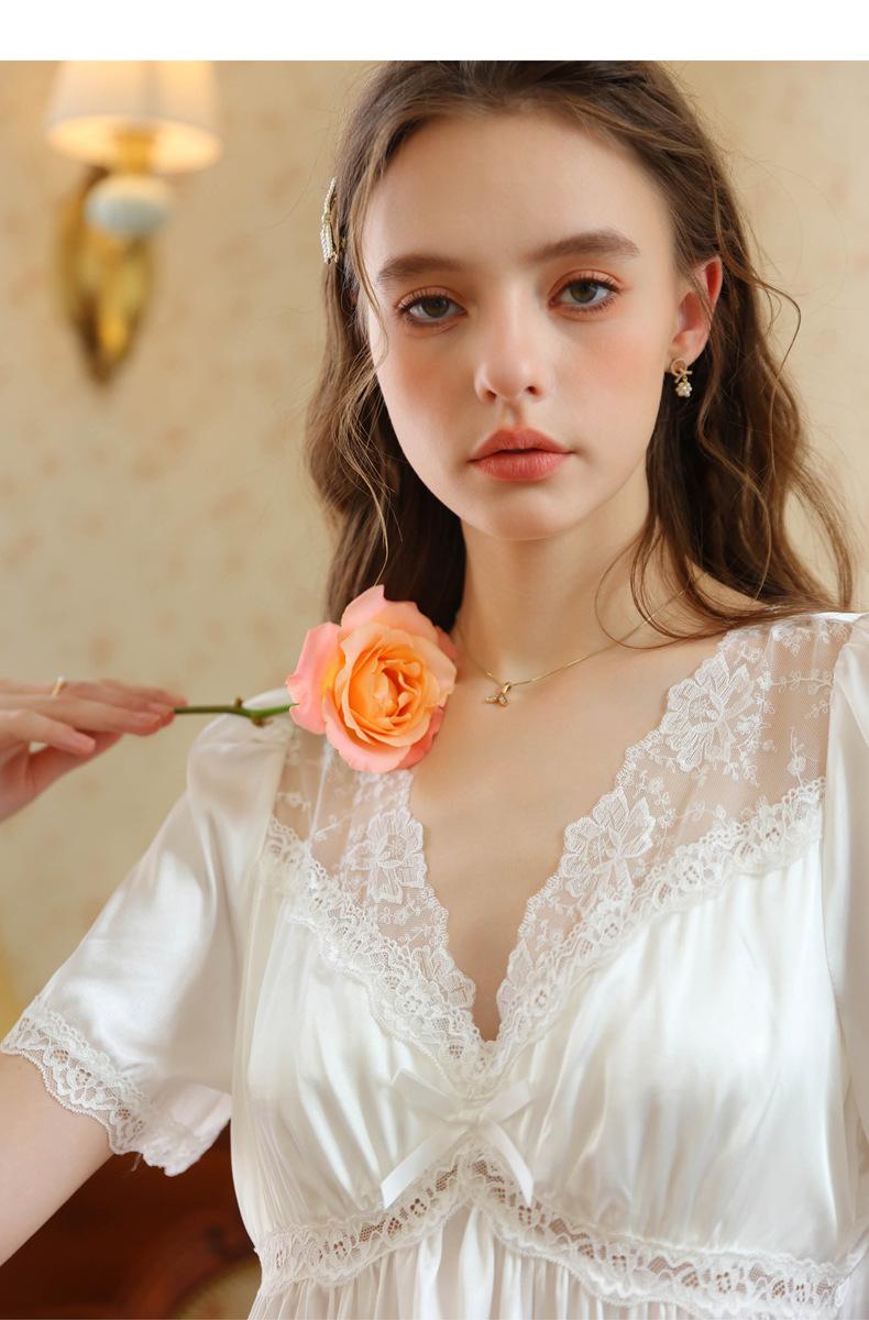Camisón de encaje sexy largo y fino de verano nuevo palacio princesa dulce francés de alta gama de manga corta pijamas de mujer