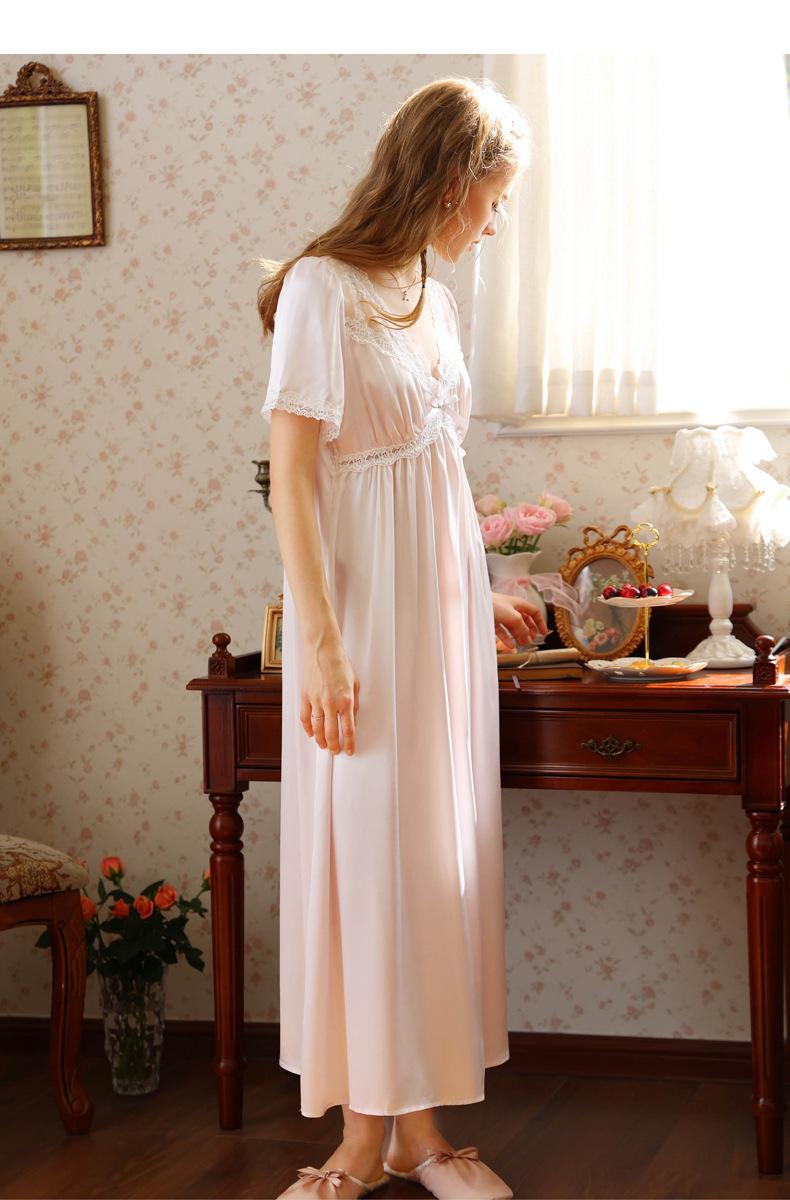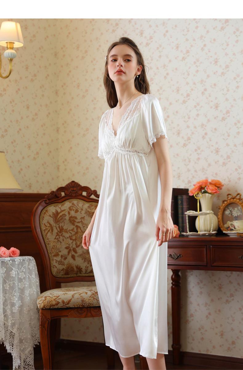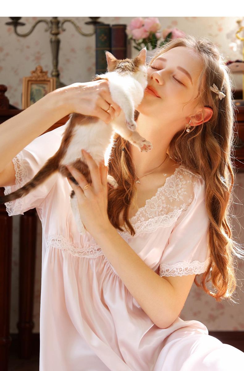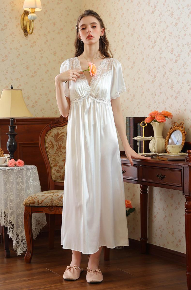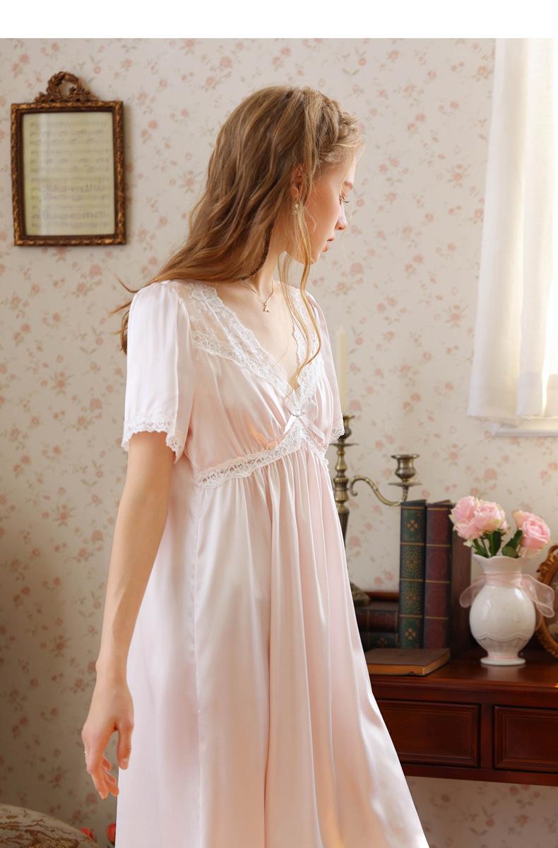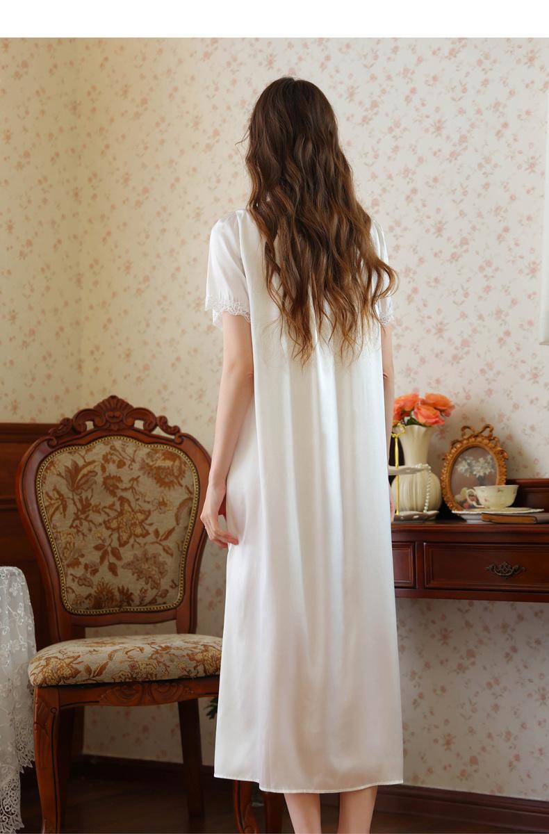 Camisón de encaje sexy largo y fino de verano nuevo palacio princesa dulce francés de alta gama de manga corta pijamas de mujer