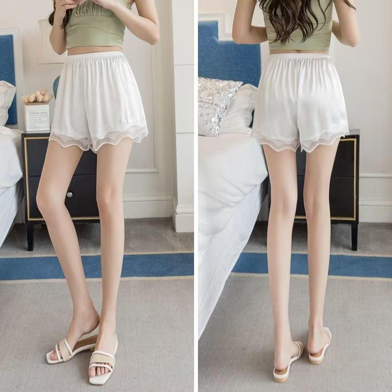 Pantalones de seguridad para mujer, venta al por mayor, pantalones sueltos de verano de seda de hielo de tres puntos, se pueden usar al aire libre, leggings de encaje, pantalones cortos anti-luz para mujer