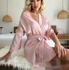2025 Nuevo Camisón Rosa Estampado con Cordones, Manga Media, Cuello en V, Camisón de Seda Imitación, Sexy, Cómodo y Casual para Estar en Casa