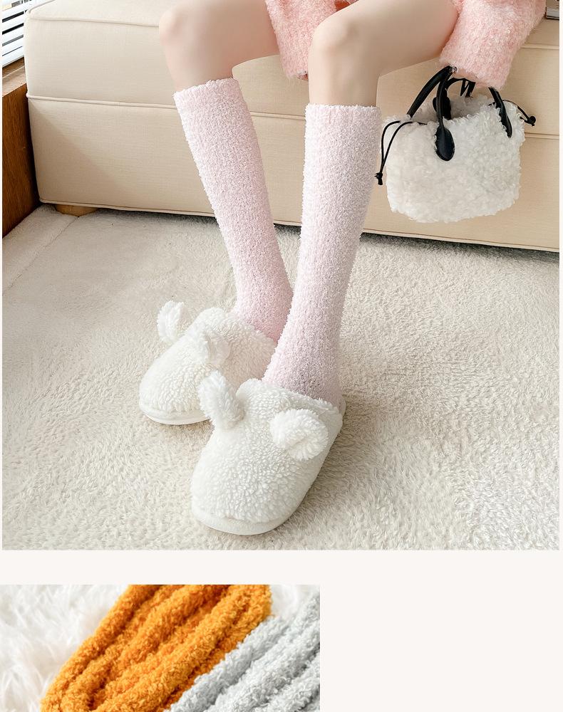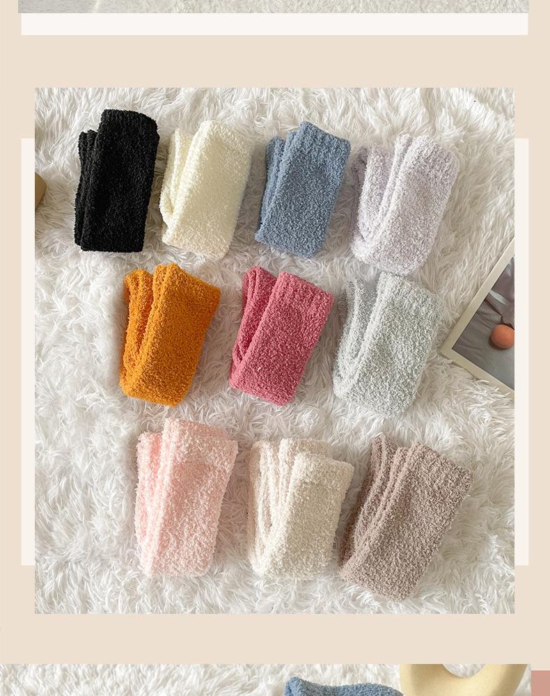Calcetines de toalla de invierno más calcetines de felpa gruesos y cálidos de terciopelo, calcetines de tubo medio de color sólido, calcetines de suelo, calcetines de lana de conejo de imitación, al por mayor |