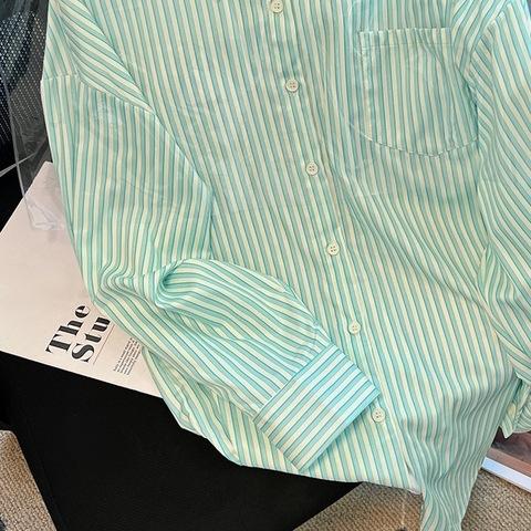 Chaqueta Camisera Rayada con Protección Solar para Mujer Otoño 2025 Exterior Top de Manga Larga Camisa Nuevo Estilo Lazy