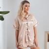Champán Europeo y Americano Transfronterizo Ropa de Casa Fresca y Cómoda Tejido de Satén Pijama de Mujer Joven Conjunto Doble Corto