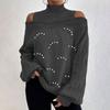 Suéteres Europeos y Americanos para Mujer 2025 Otoño e Invierno Nuevo Suelto Cuello Redondo Color Puro Manga Larga Estilo Perezoso Chaqueta de Punto para Mujer