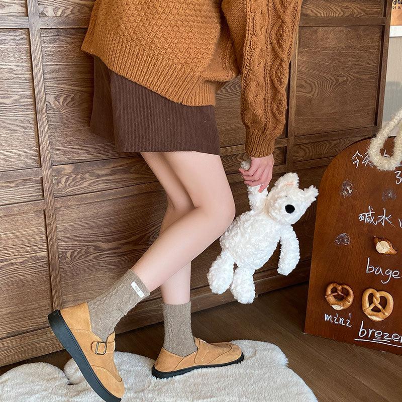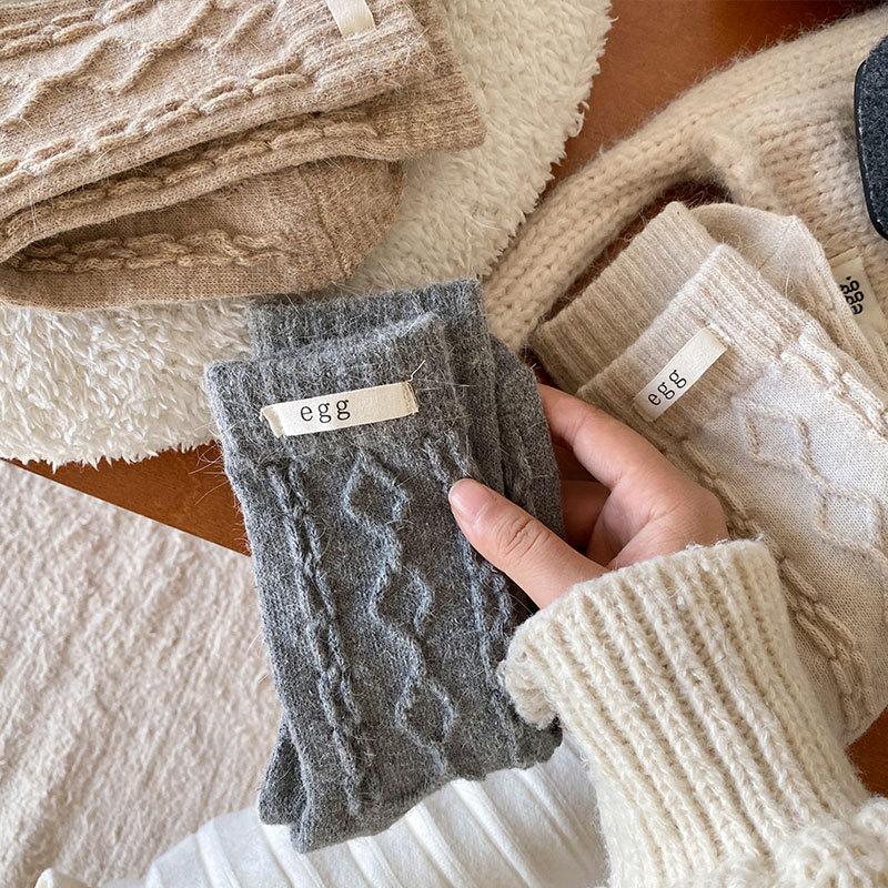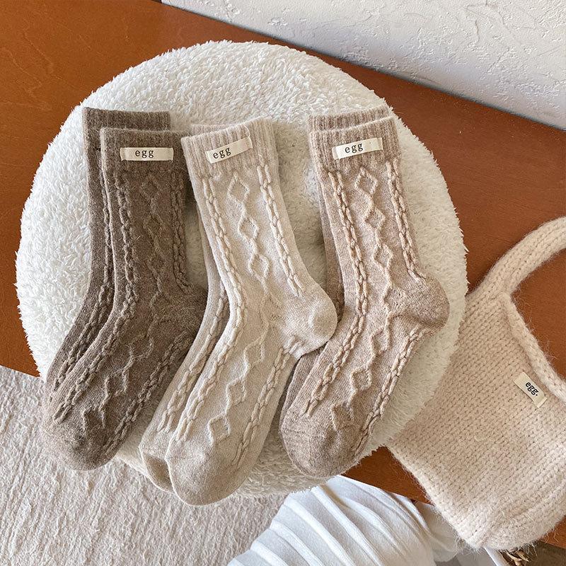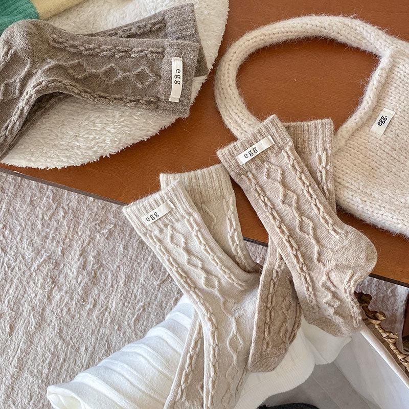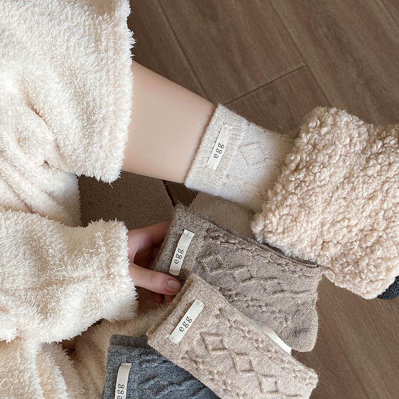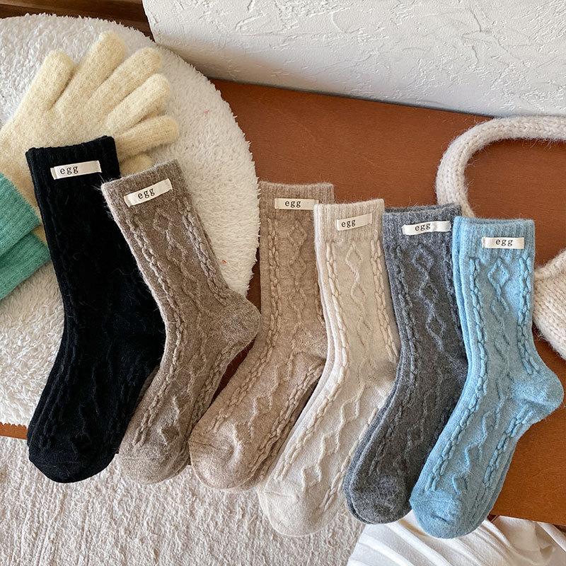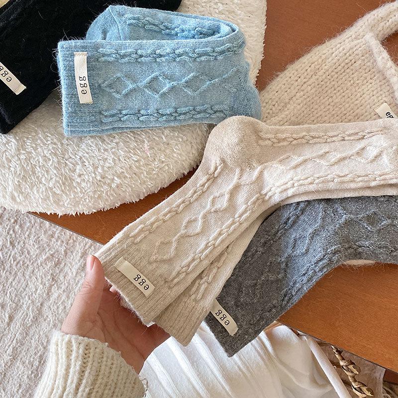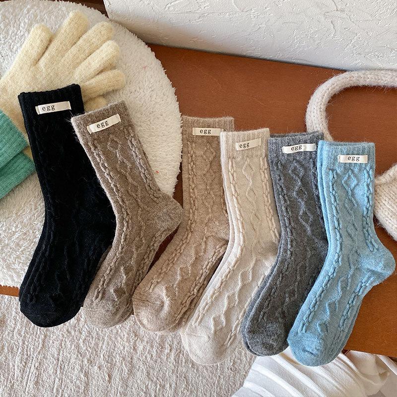 Calcetines de lana de almacenamiento de calor de otoño e invierno, calcetines de lana de conejo, calcetines de tubo para mujer, calcetines cálidos, medias gruesas de punto para invierno para damas